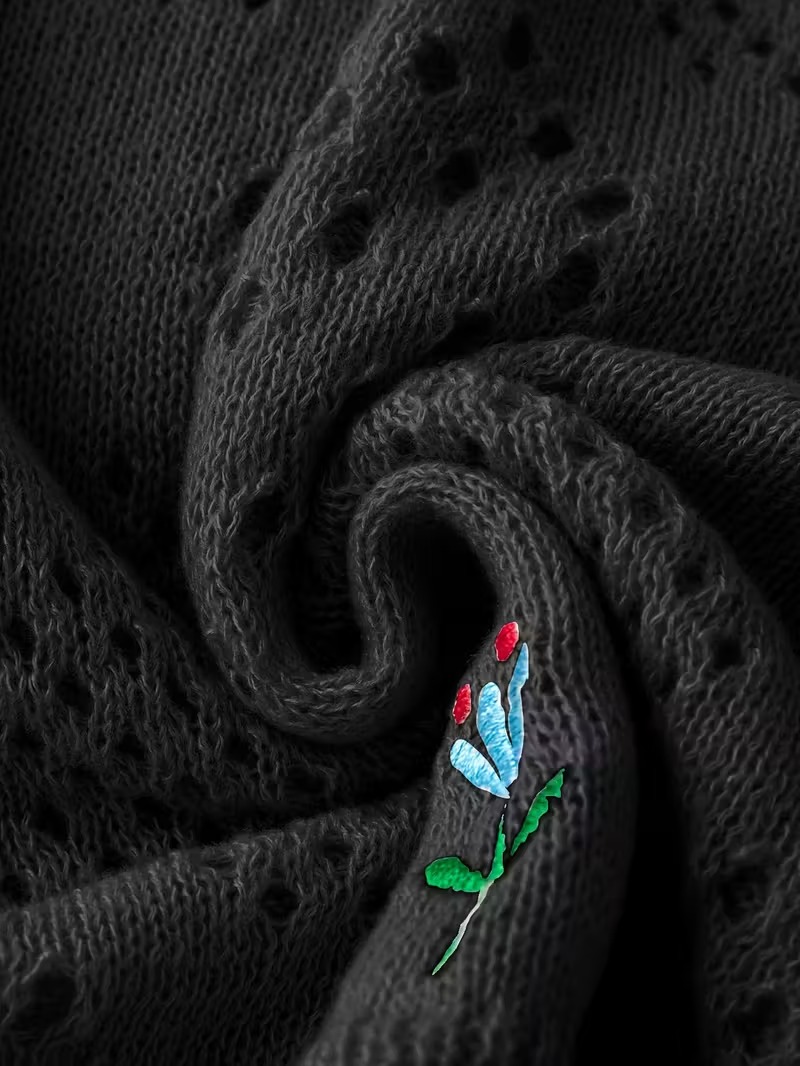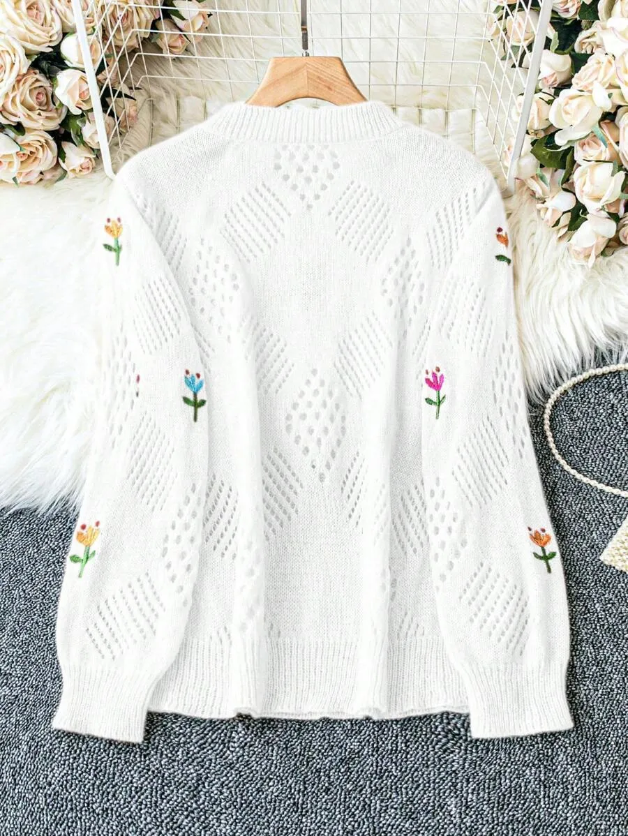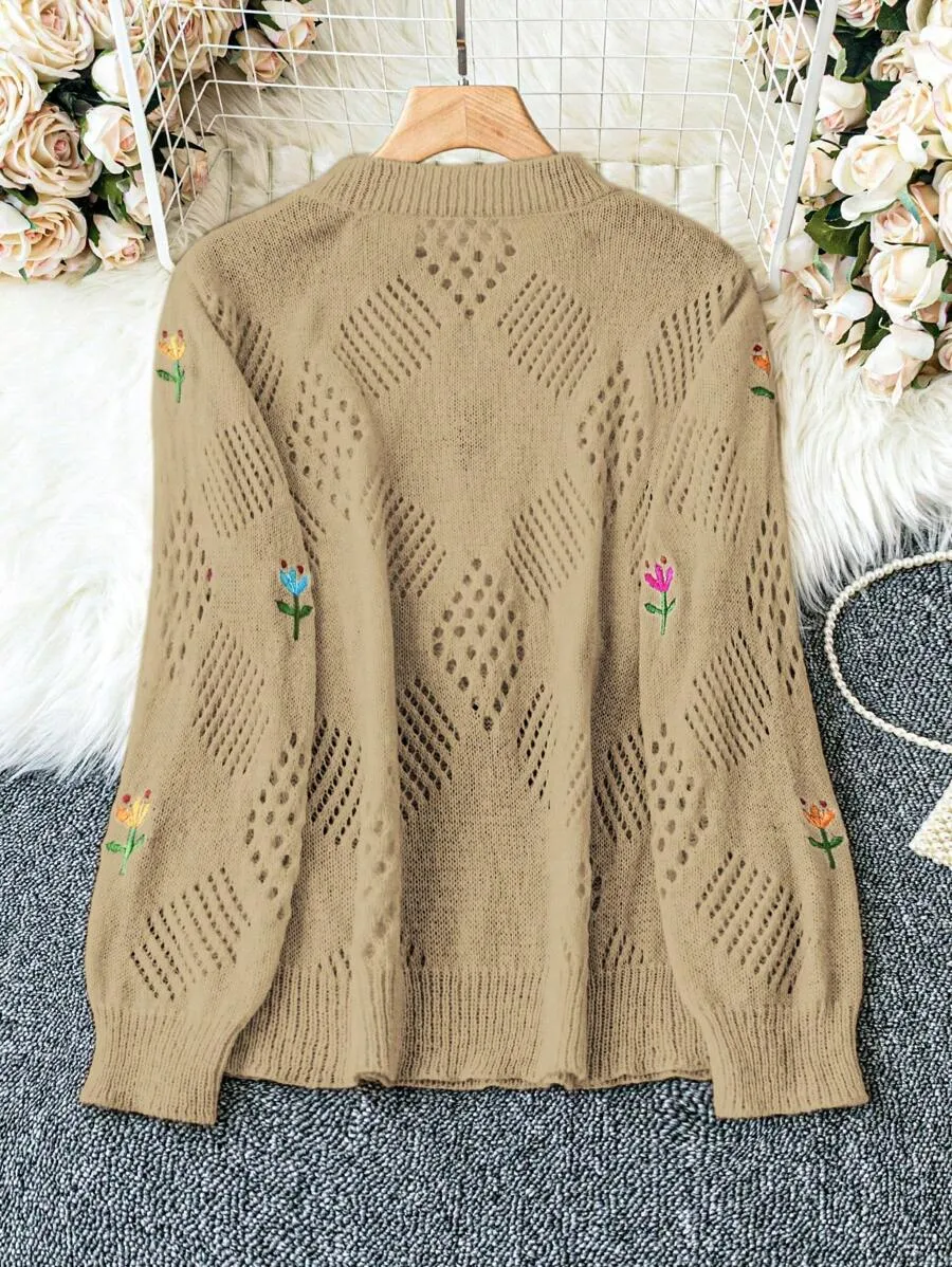 plus size floral embroidery sweater casual cut out long sleeve crew neck sweater for spring womens plus size clothing Product details 8