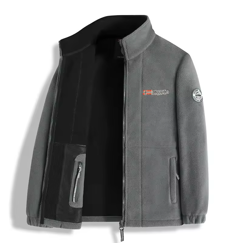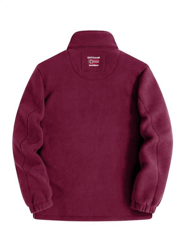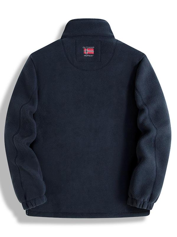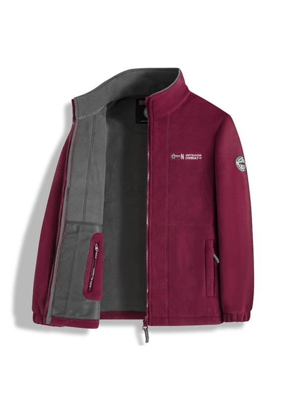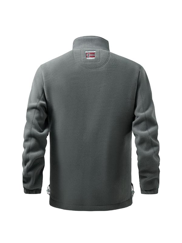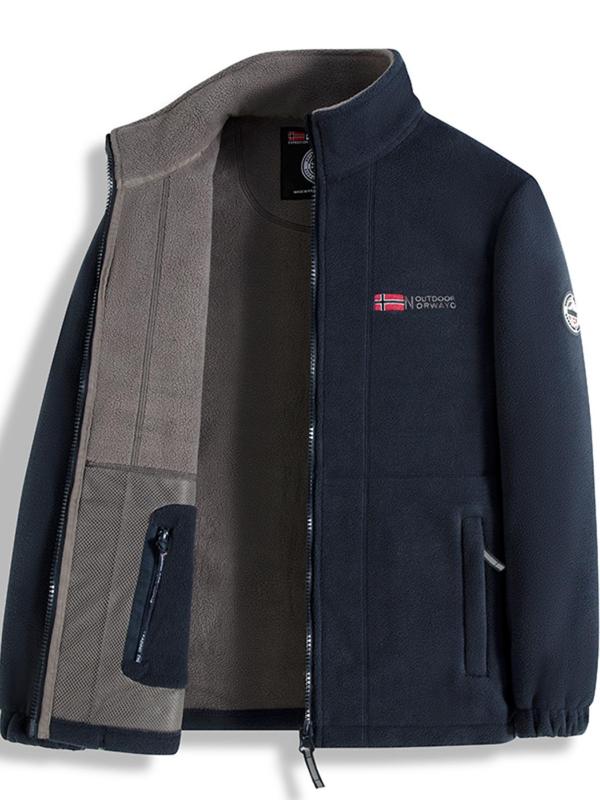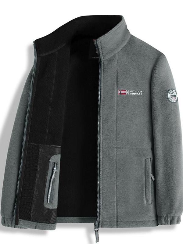 Letter Embroidery Fleece Jacket, Regular Fit Casual Long Sleeve Zip Up Jacket for Fall & Winter, Men's Outerwear for Outdoor Activities