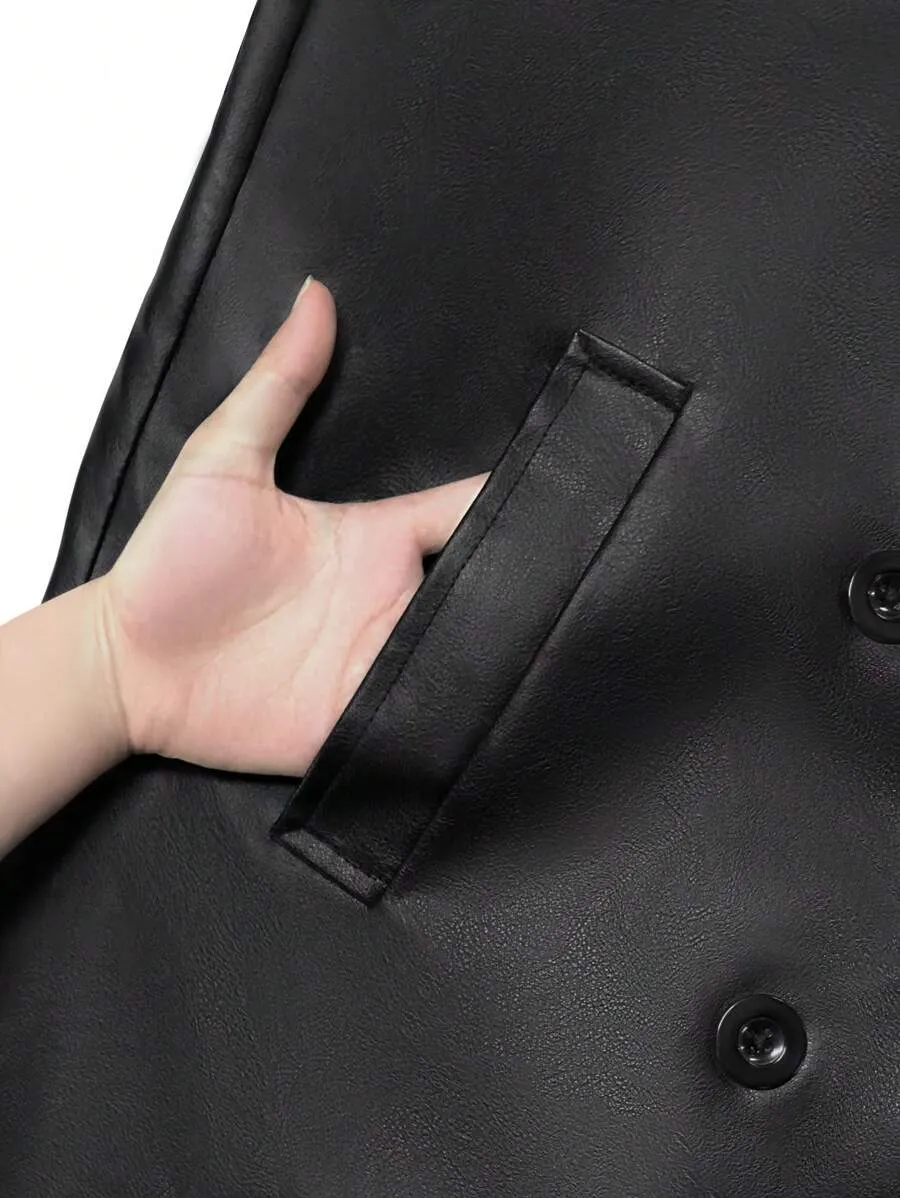 Women's PU Leather Mid-Length Casual Jacket, Fitted Style, All-Season Wear, Elegant Daily Commuting Outerwear, Includes Waist Belt
