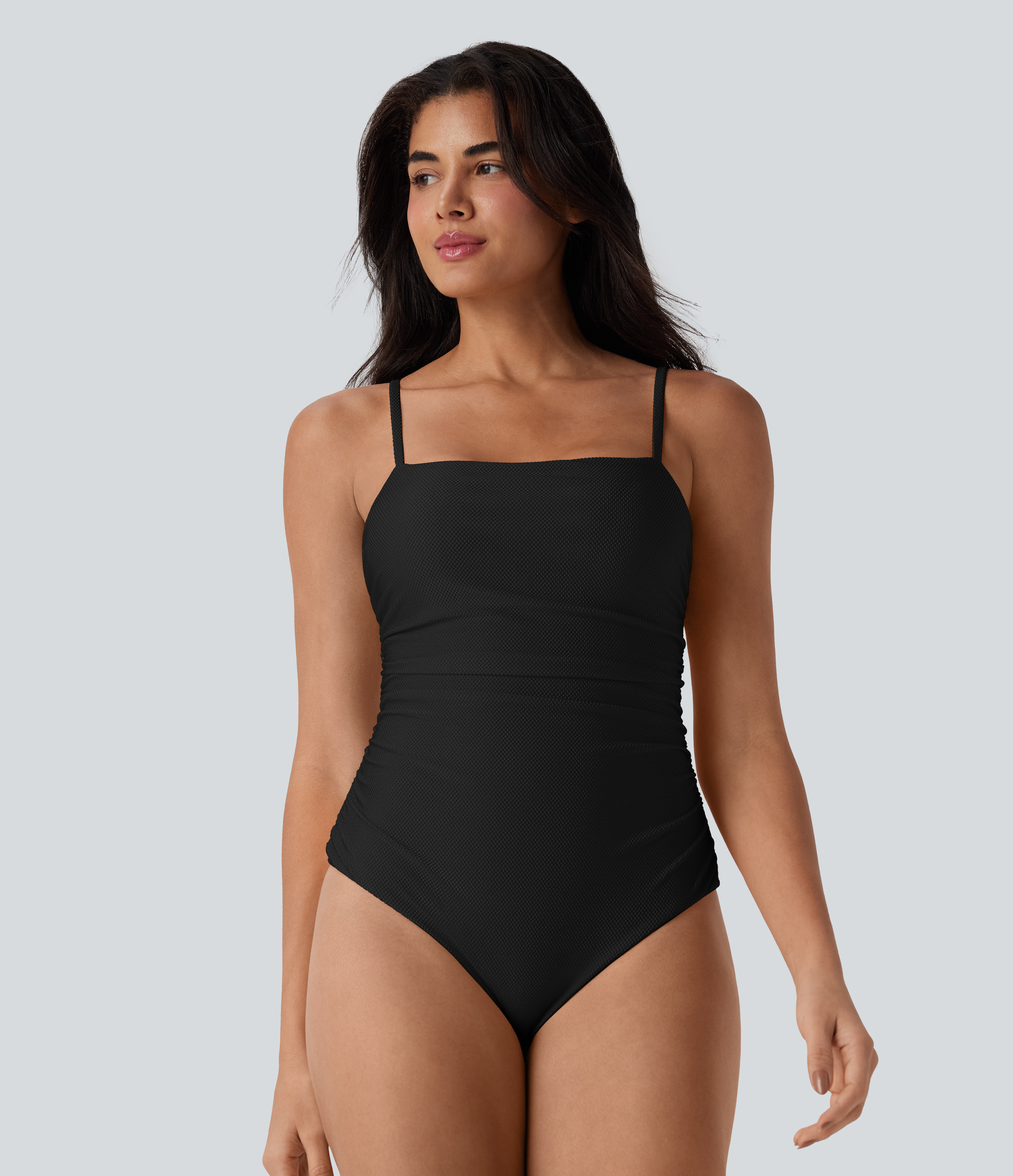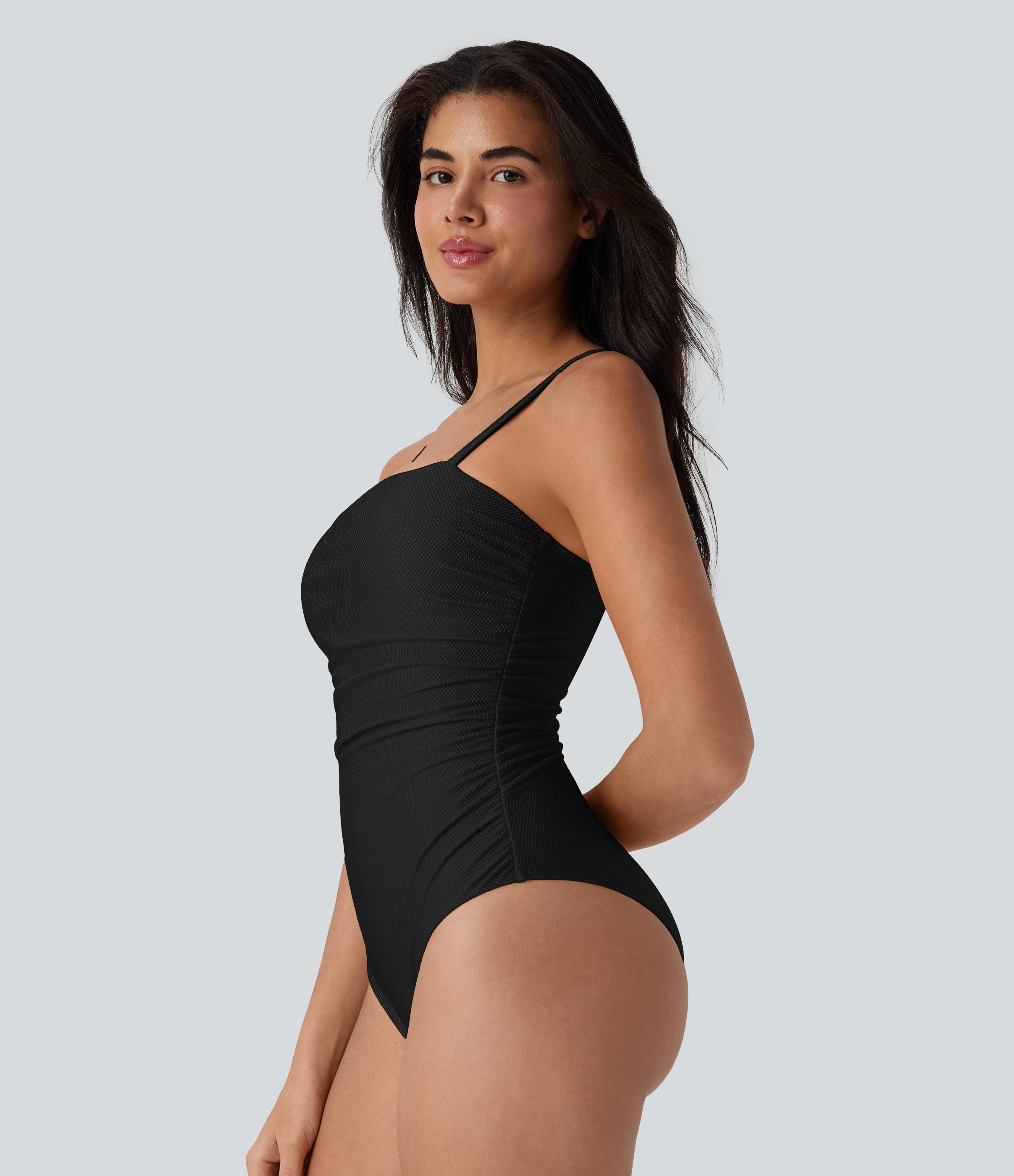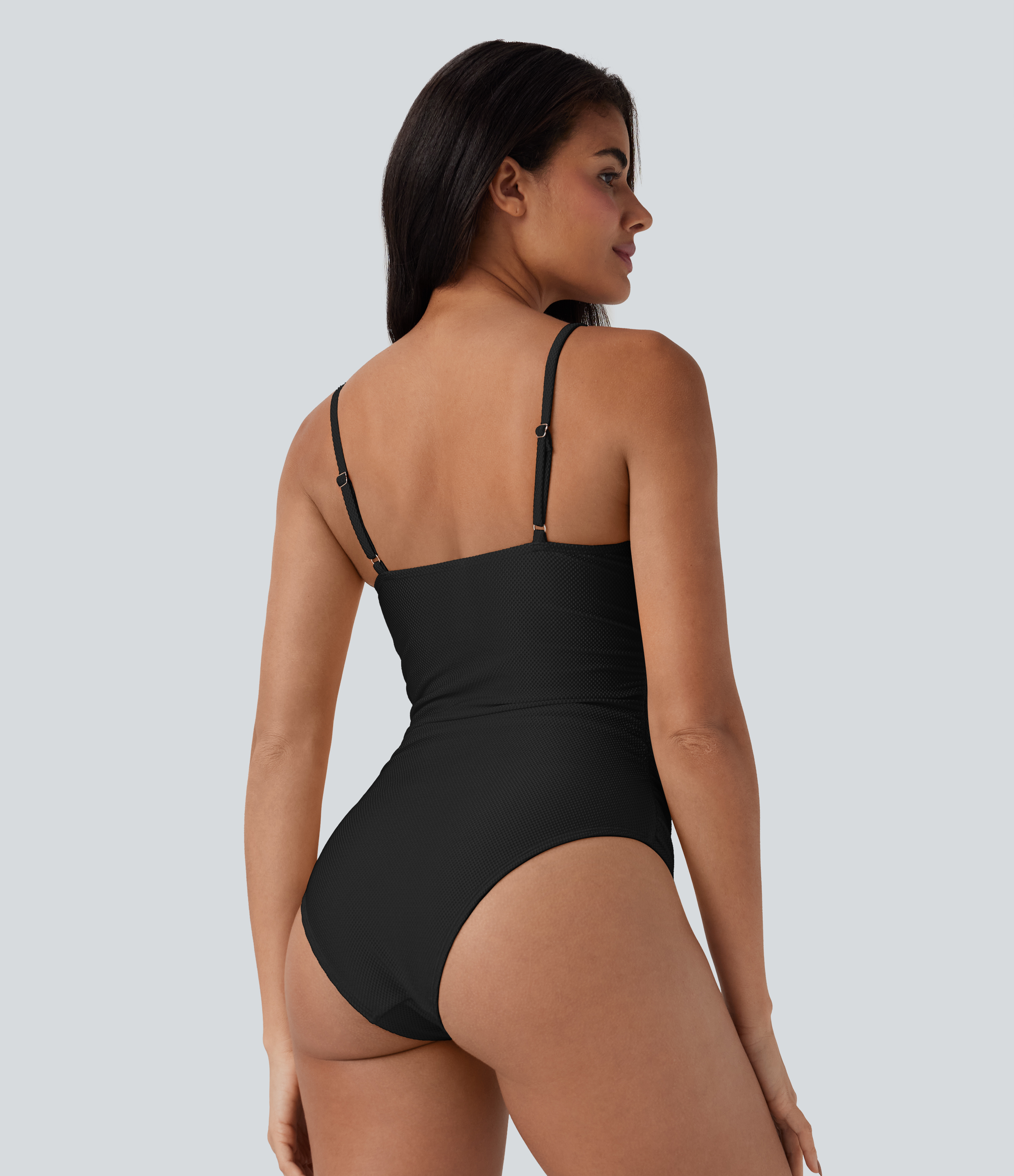 - Designed with sheen fabric that adds a bit of glimmer and sparkle, and also features body shaping.