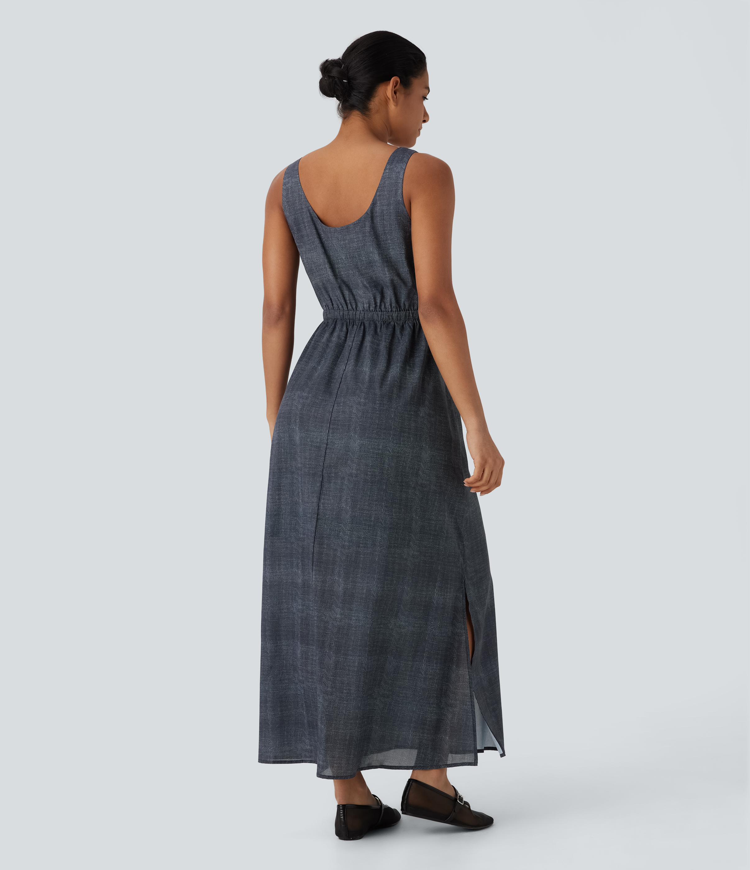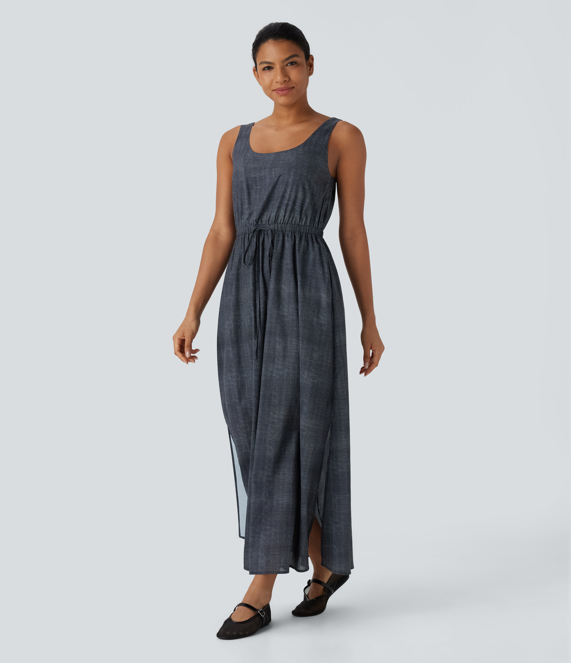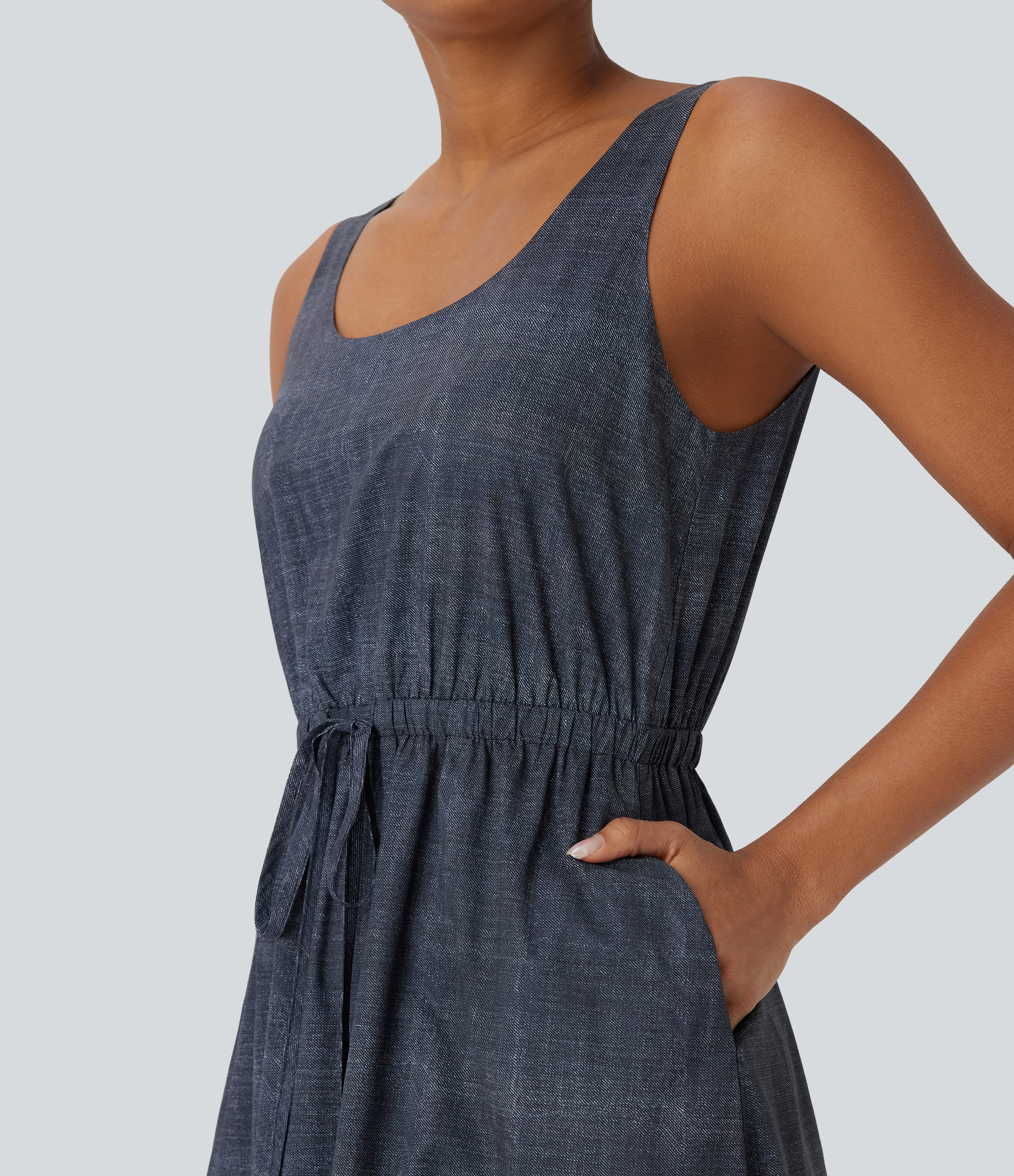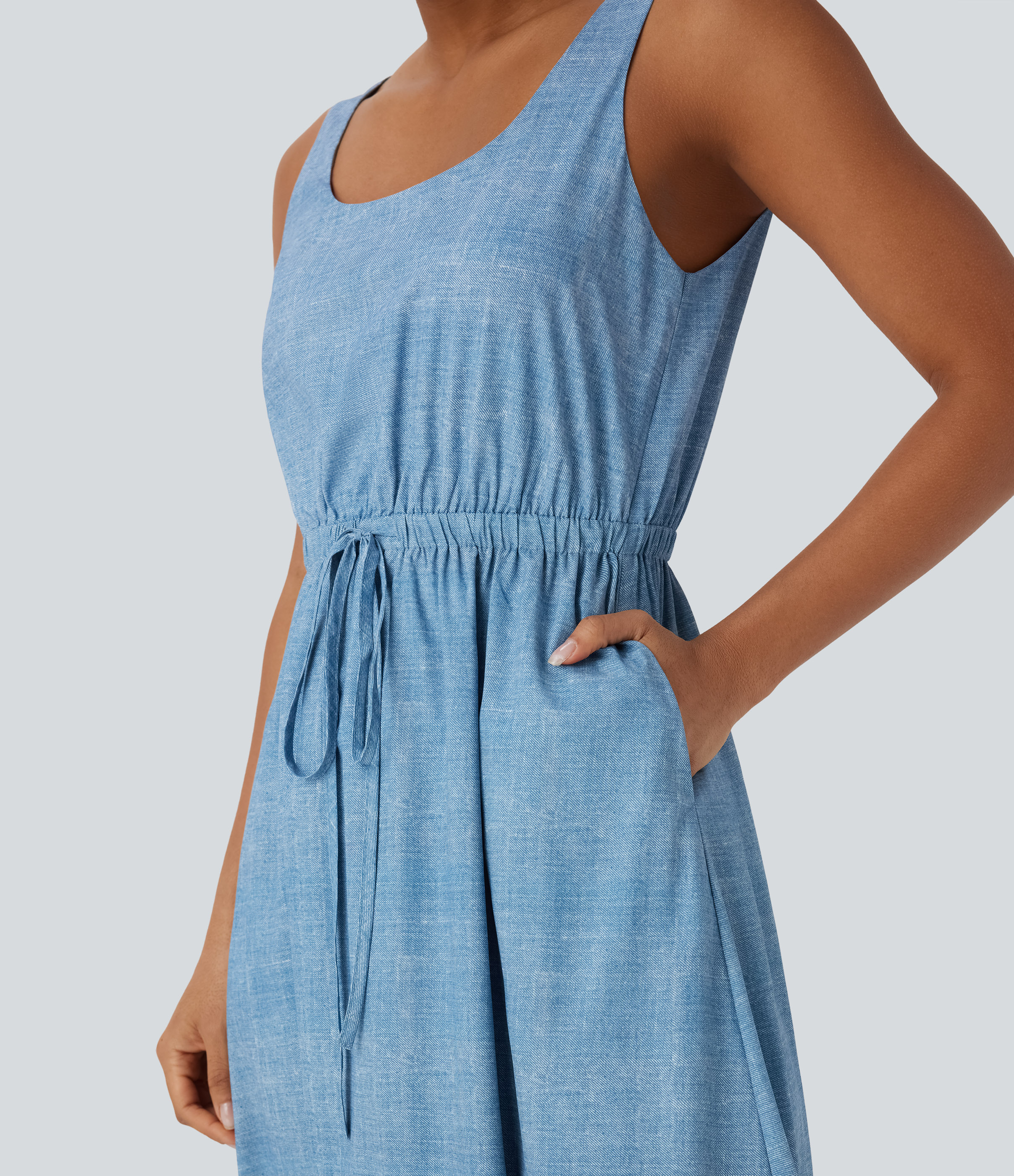 Sleeveless Drawstring Maxi Casual Dress with Pockets