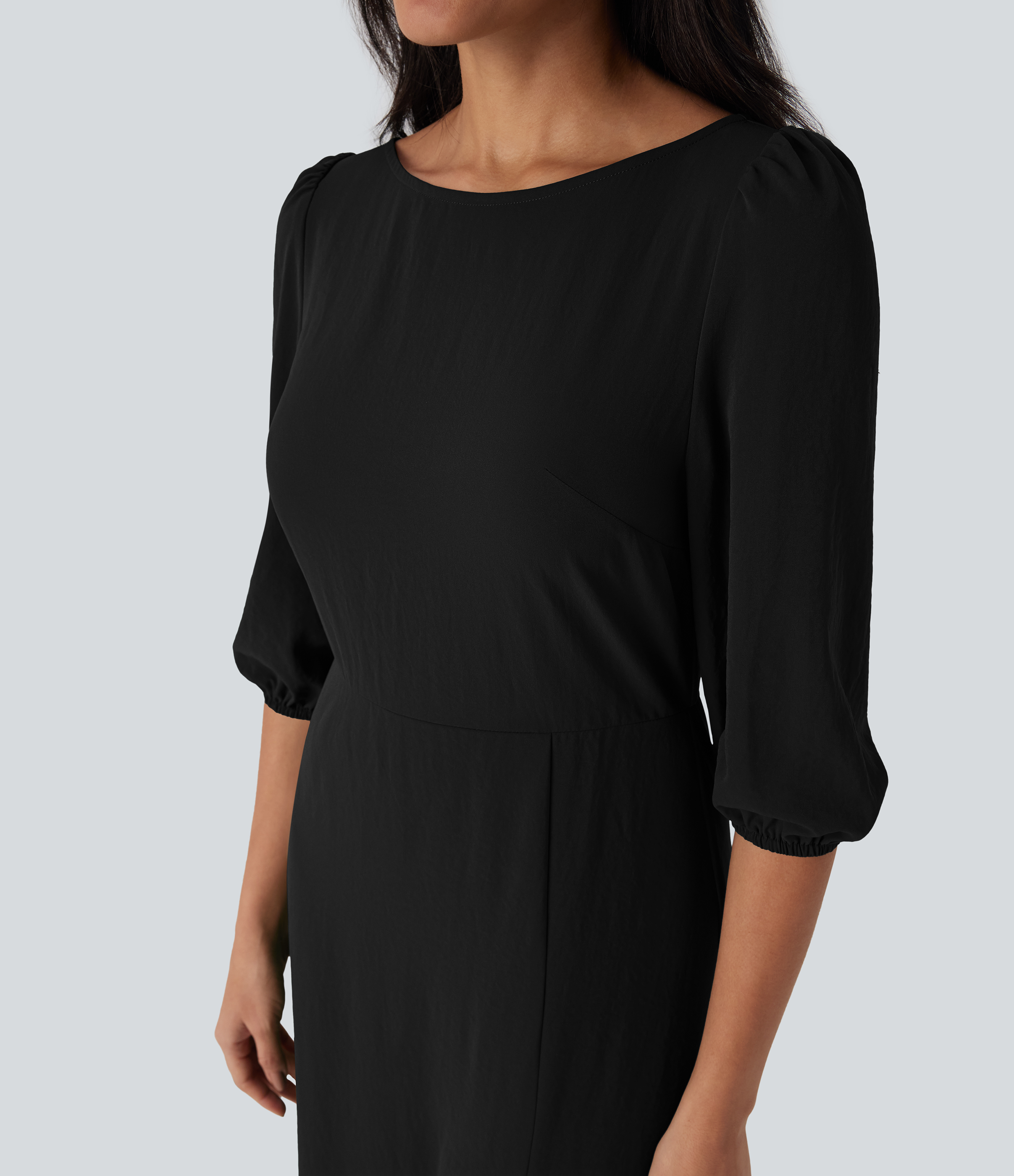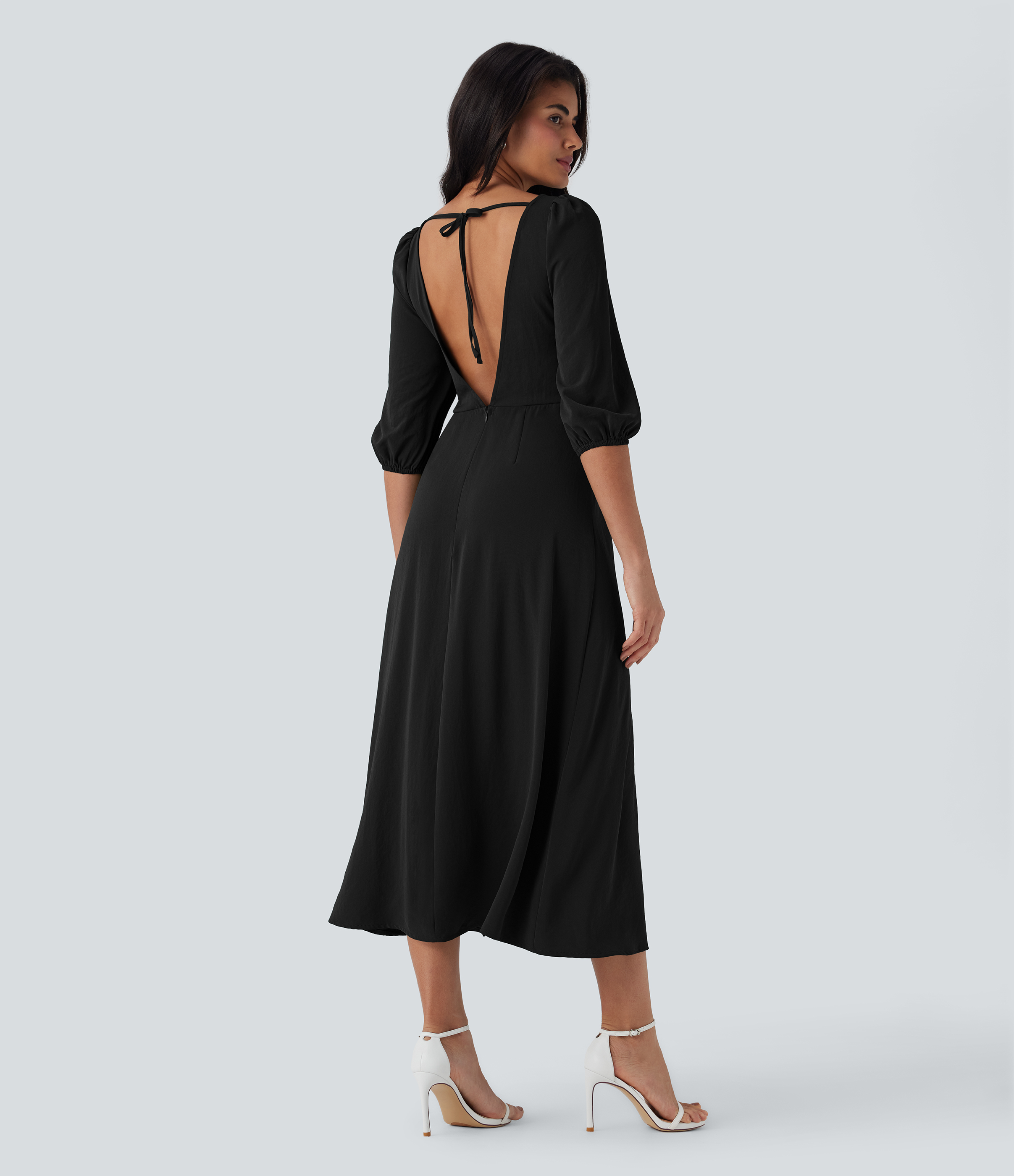 - The slit gives that perfect amount of leg show and an elongated silhouette.