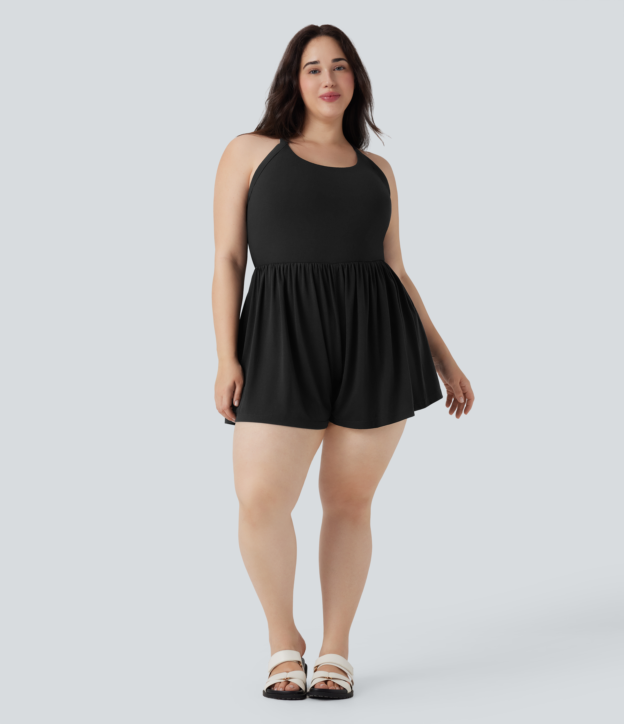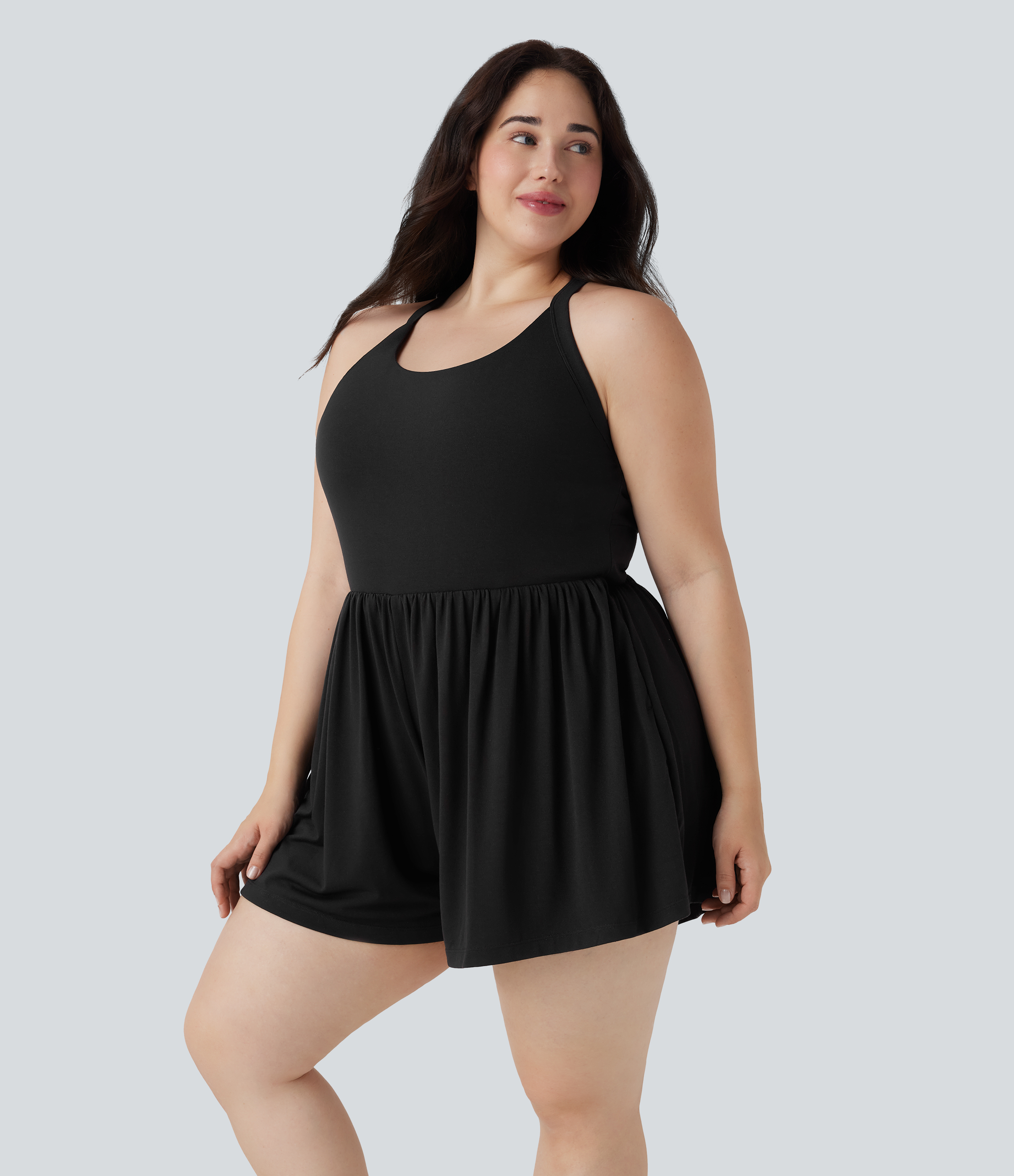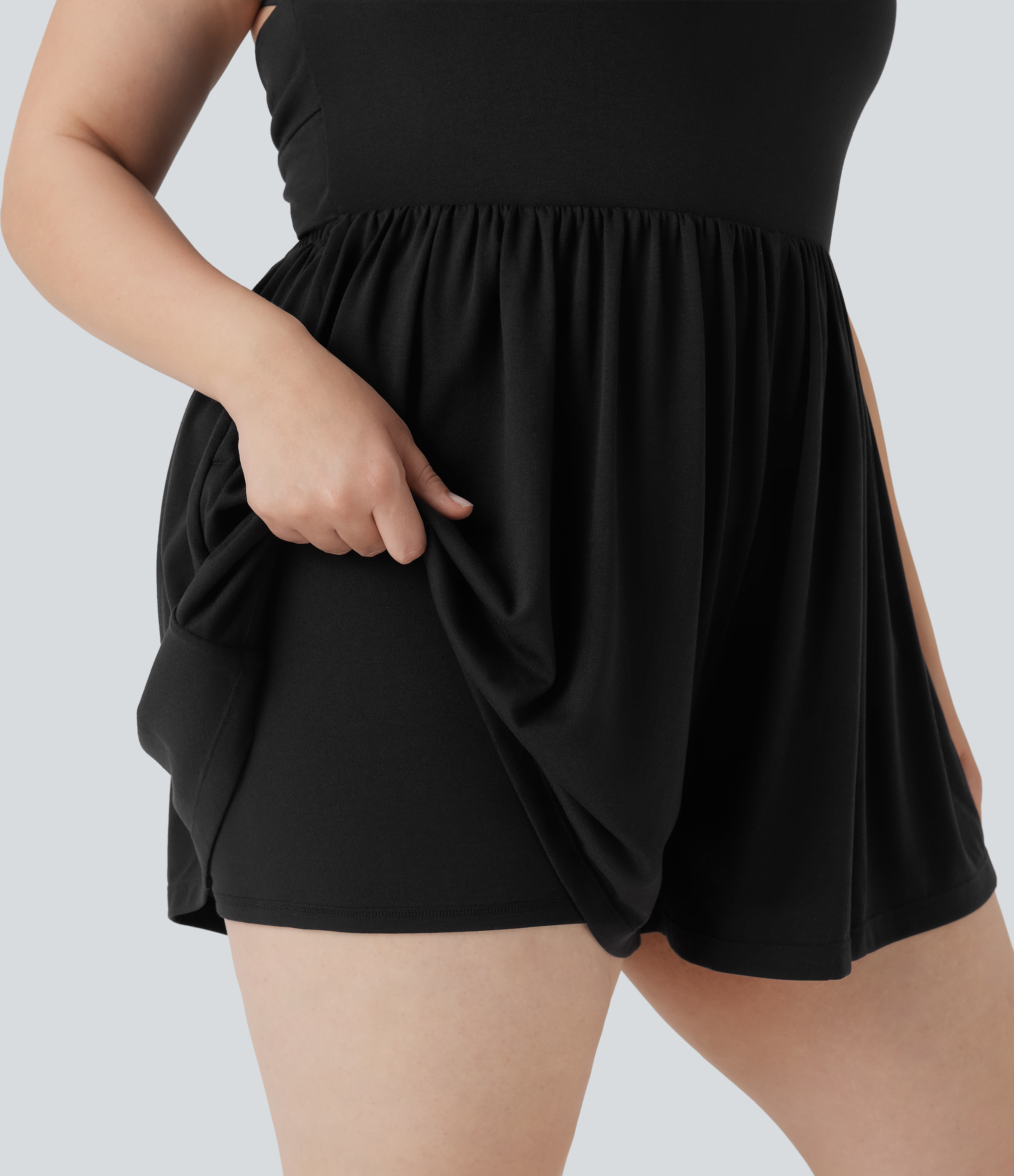 - Built-in shorts with open back waistband for easy peezy bathroom breaks.