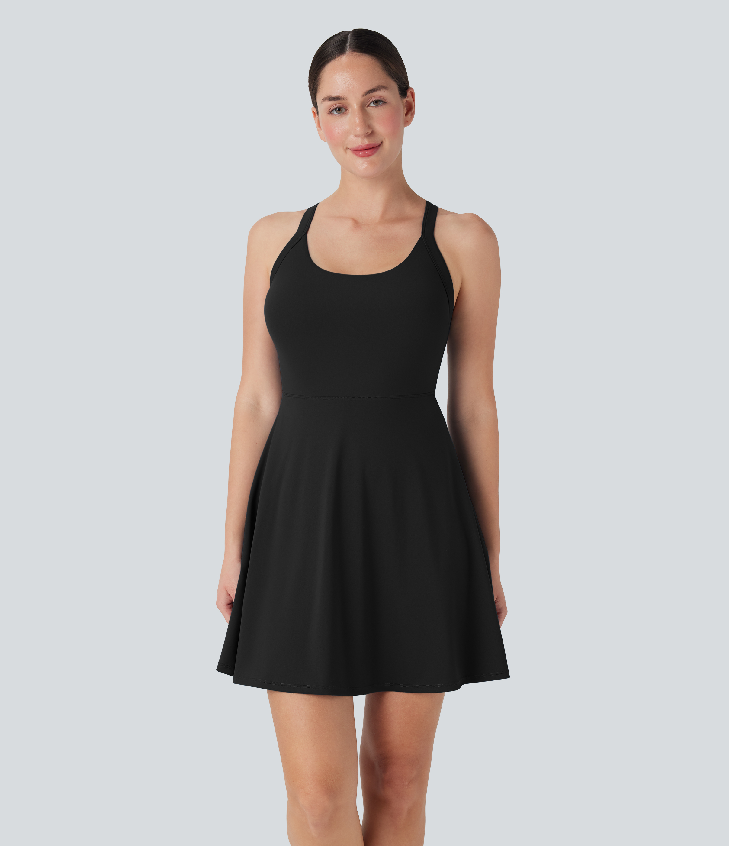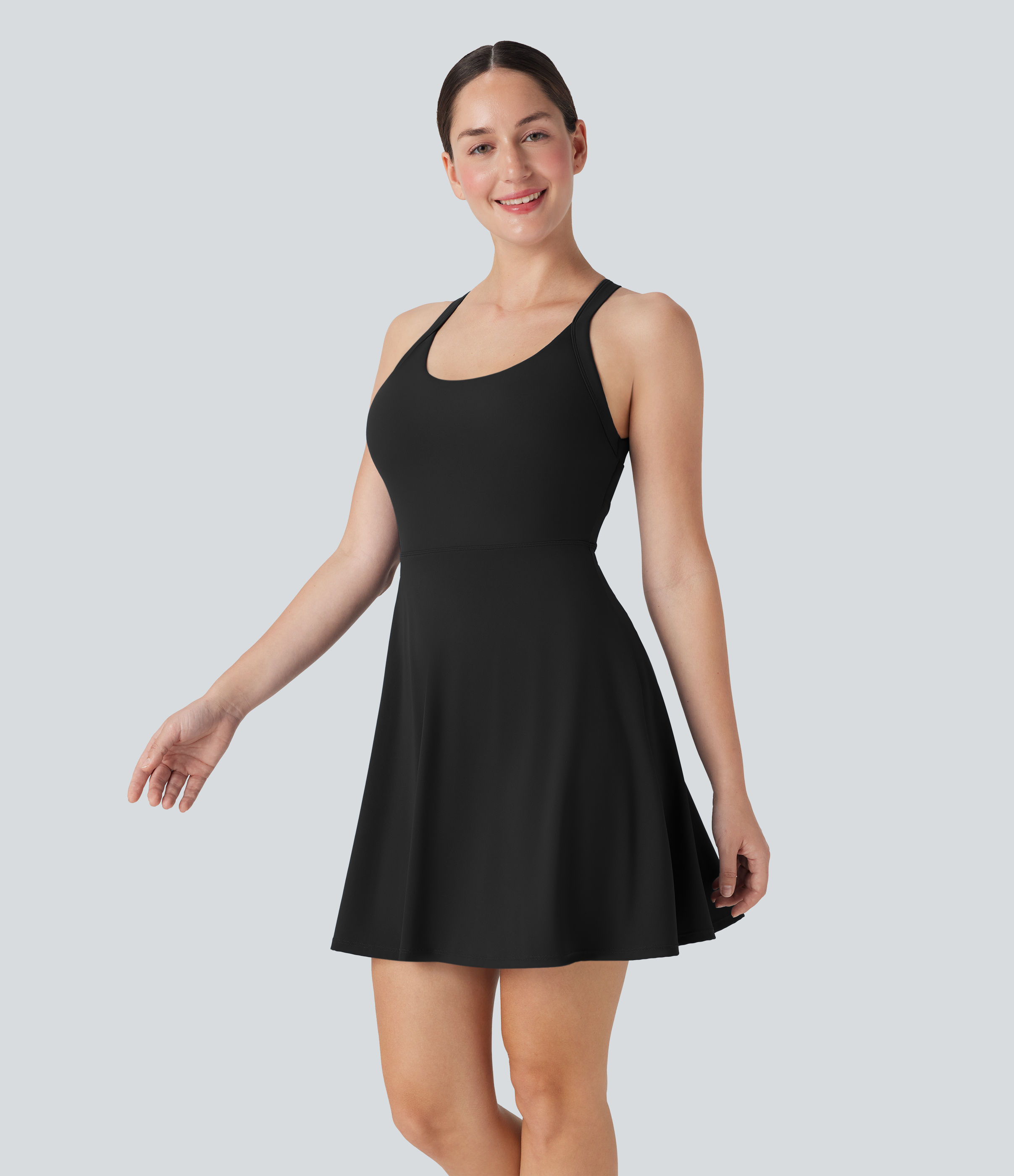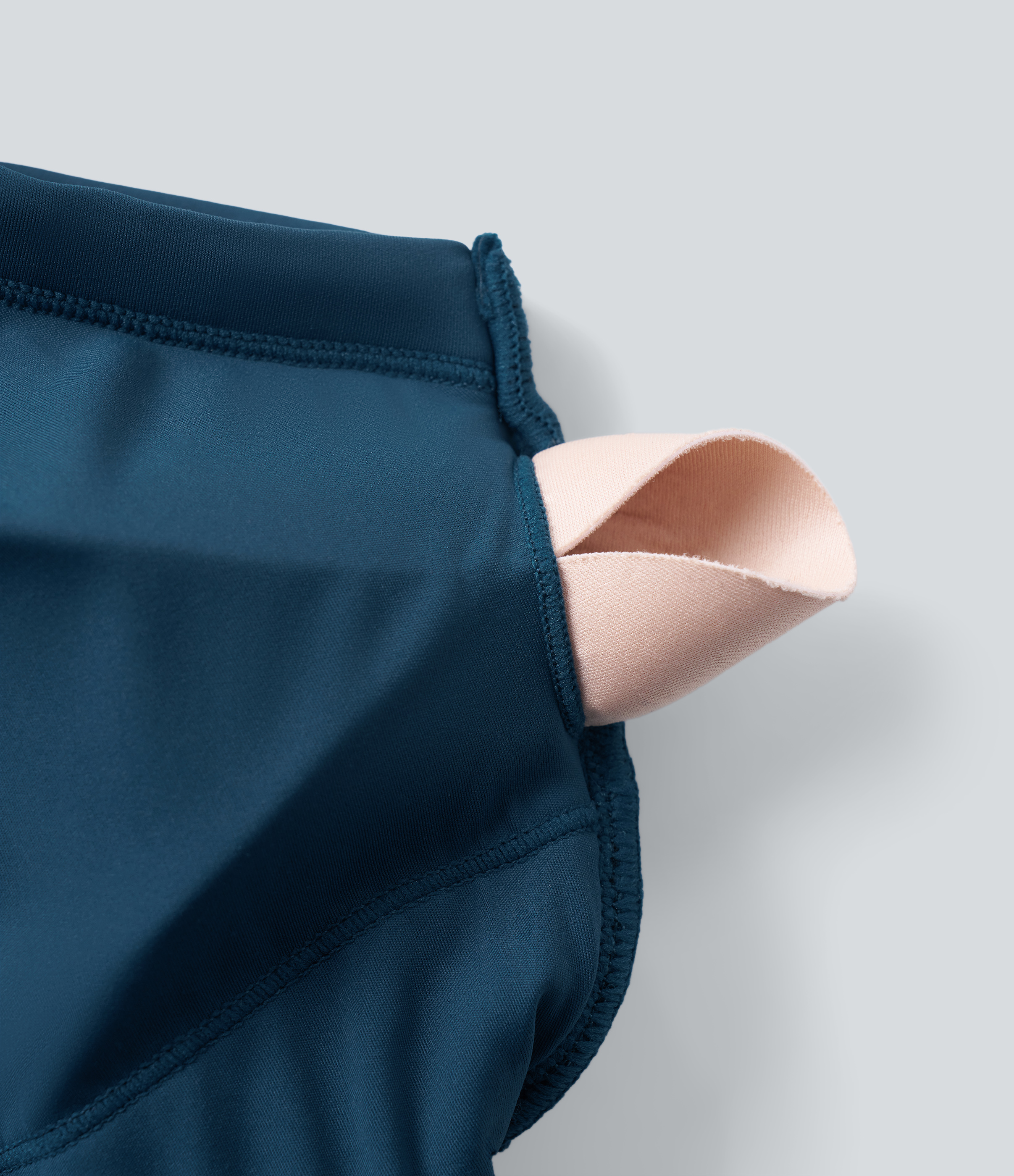 - Built-in shorts with open back waistband for easy peezy bathroom breaks.