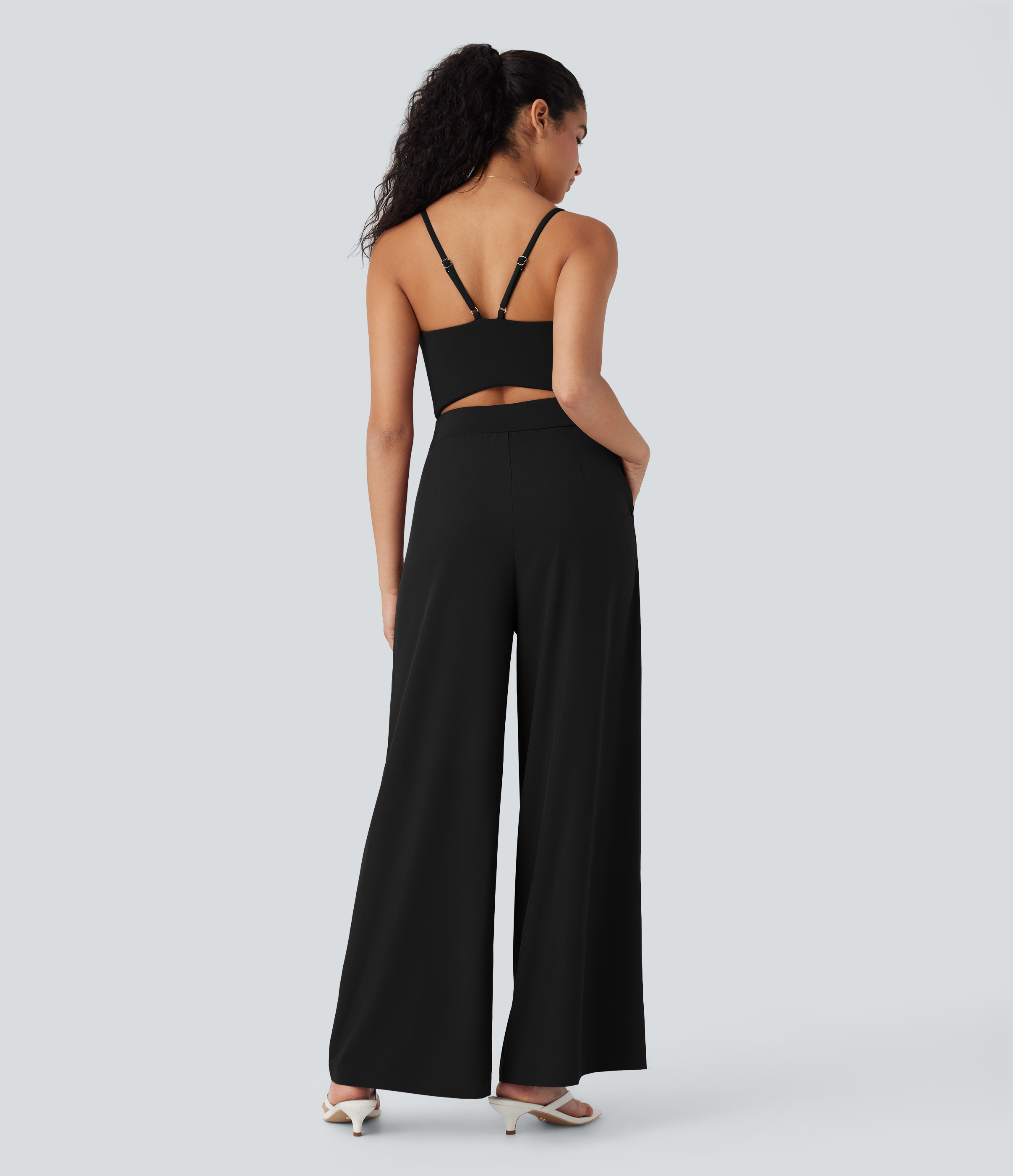 BreezefulTM Wide Leg Quick Dry Casual Slip Jumpsuit with Pockets-Easy Peezy Edition