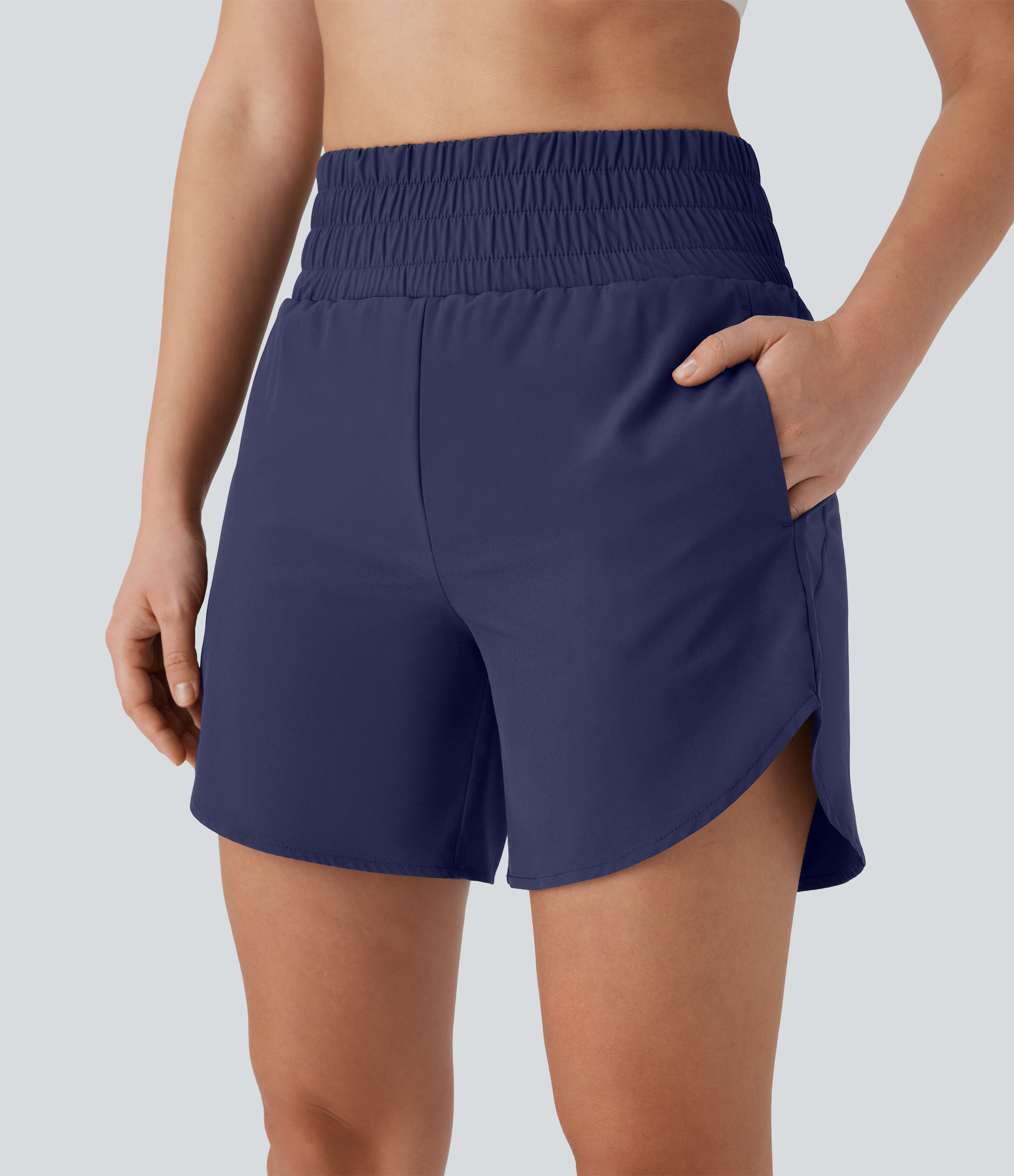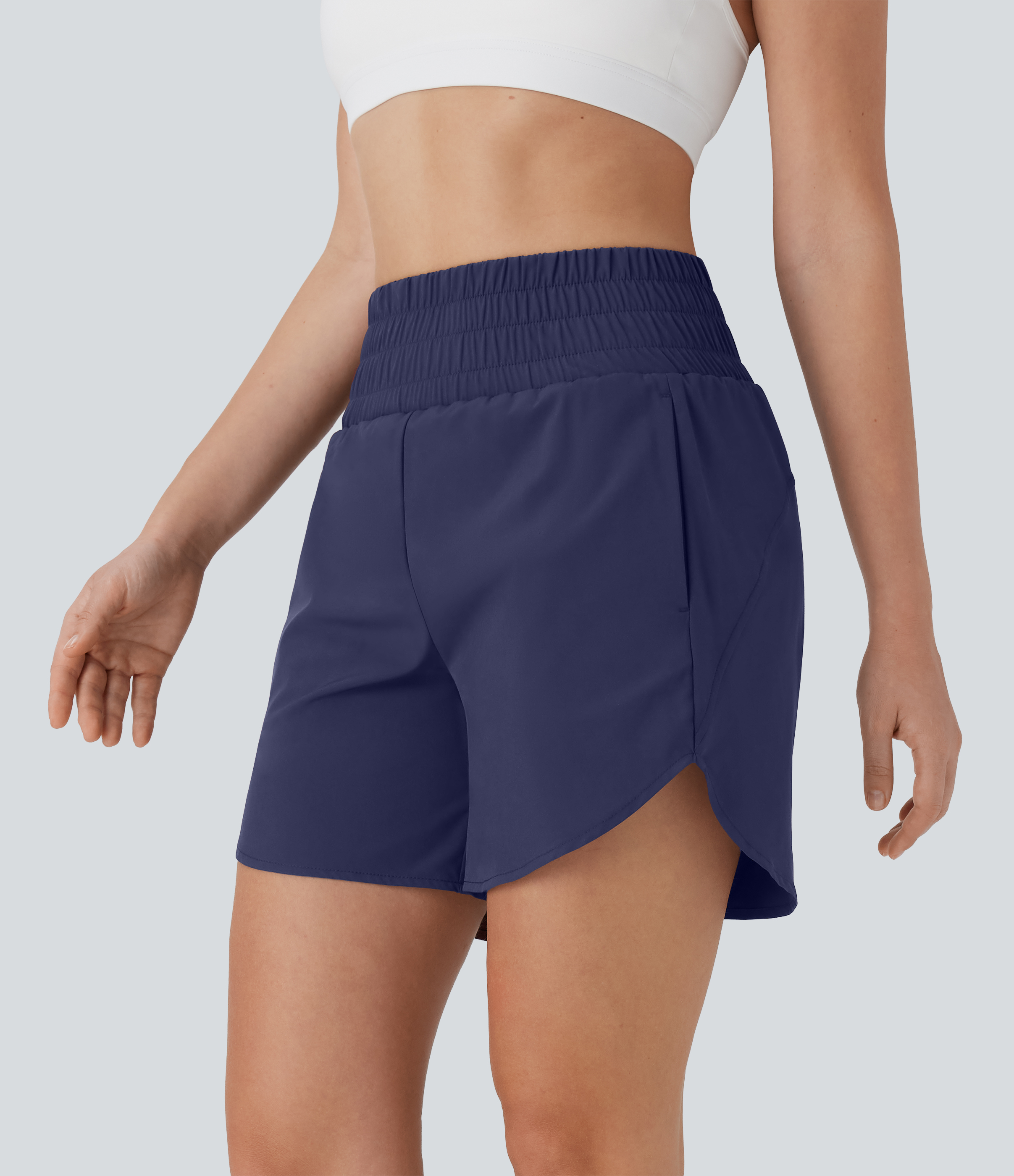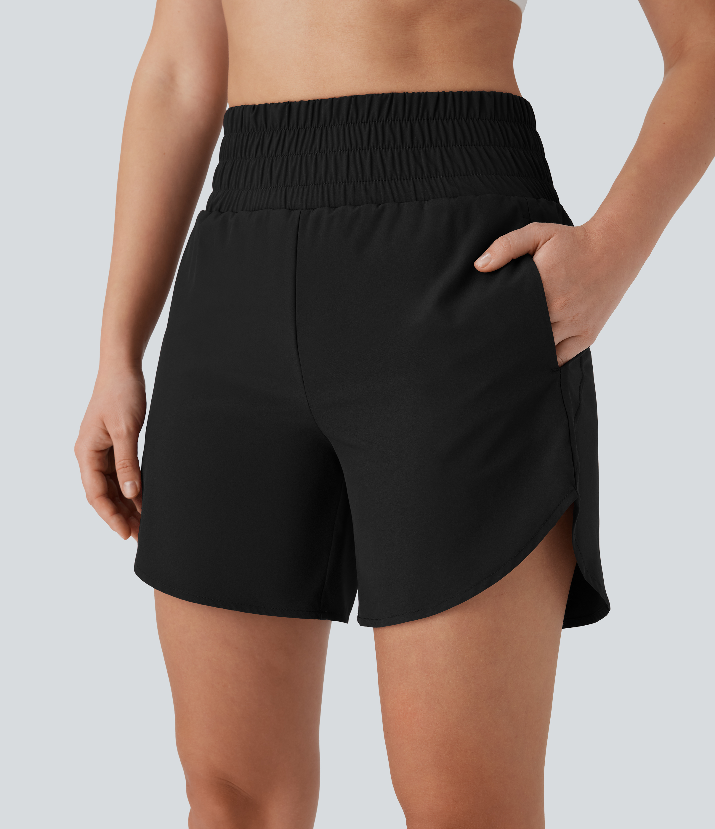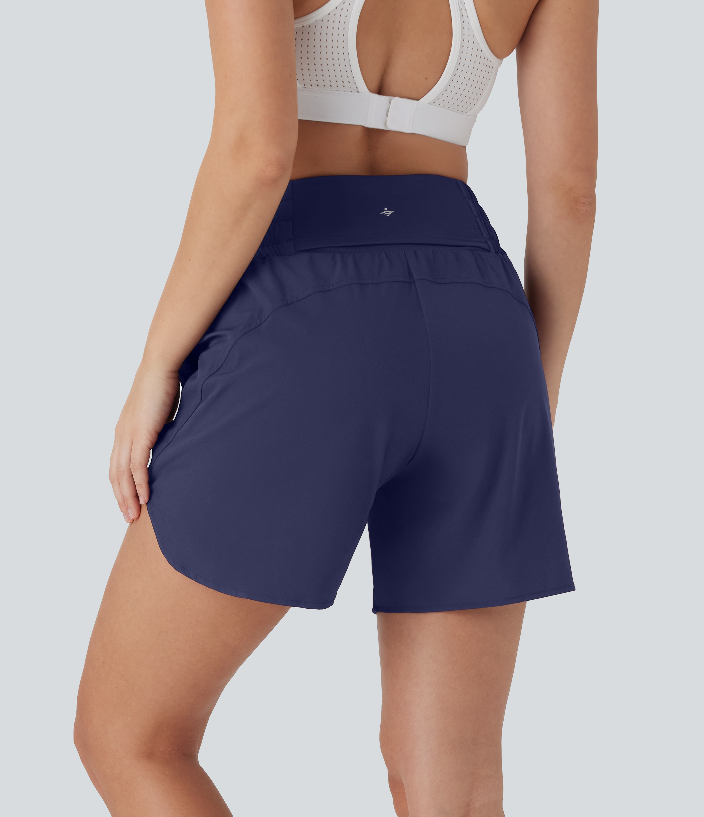 BreezefulTM High Waisted Pockets 2-in-1 Curved Hem Quick Dry Running Shorts 5.5''-Longer Length