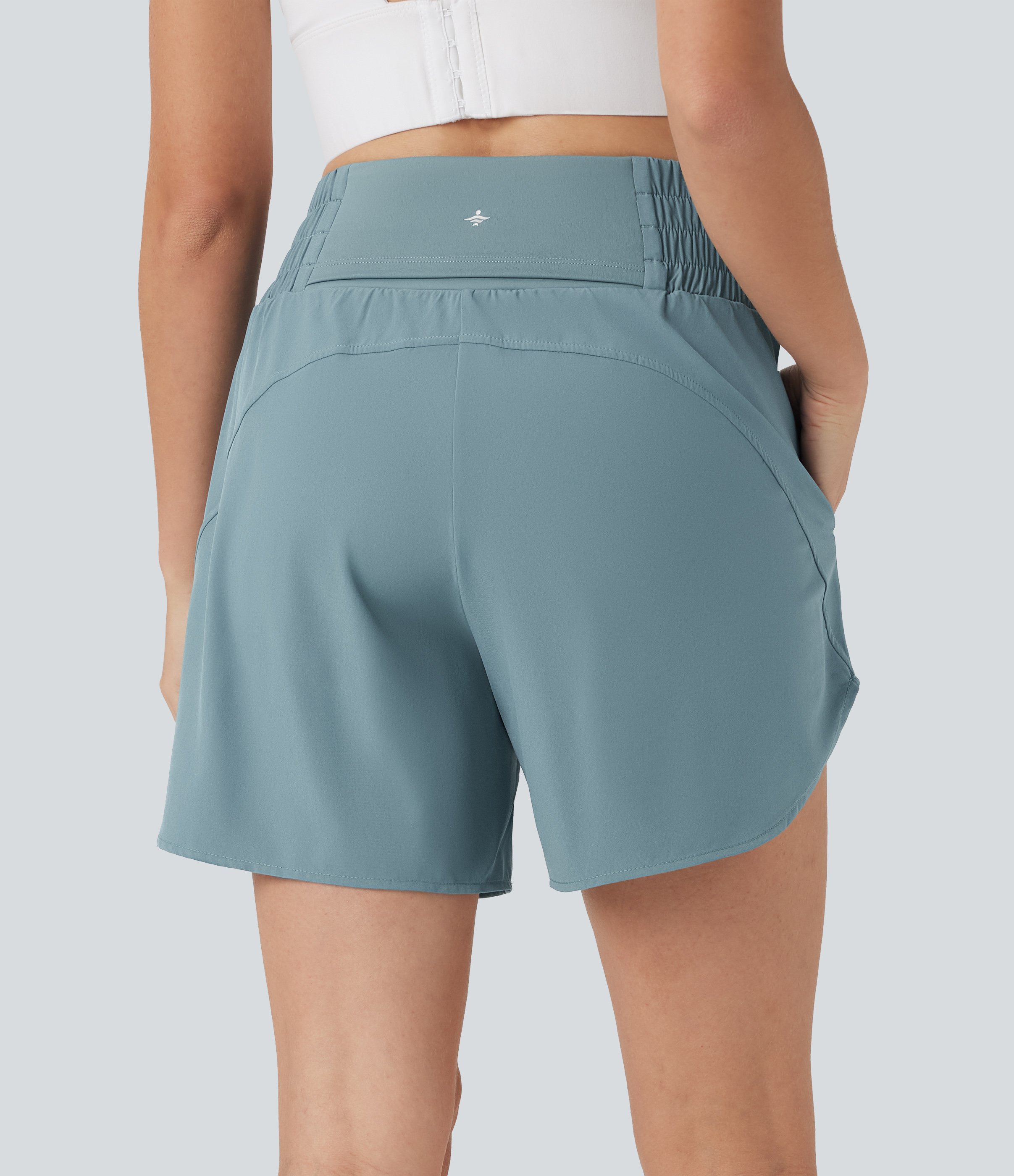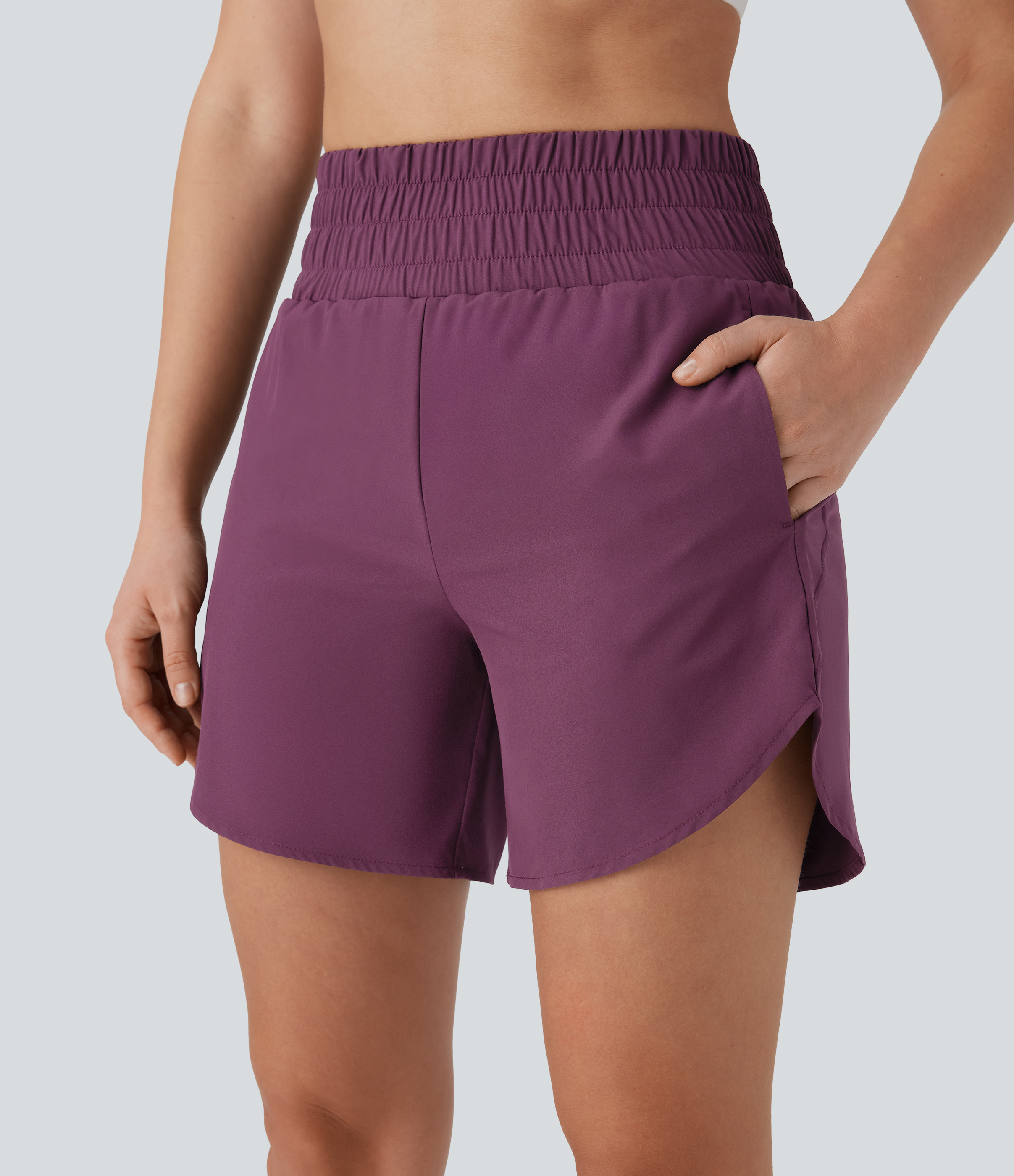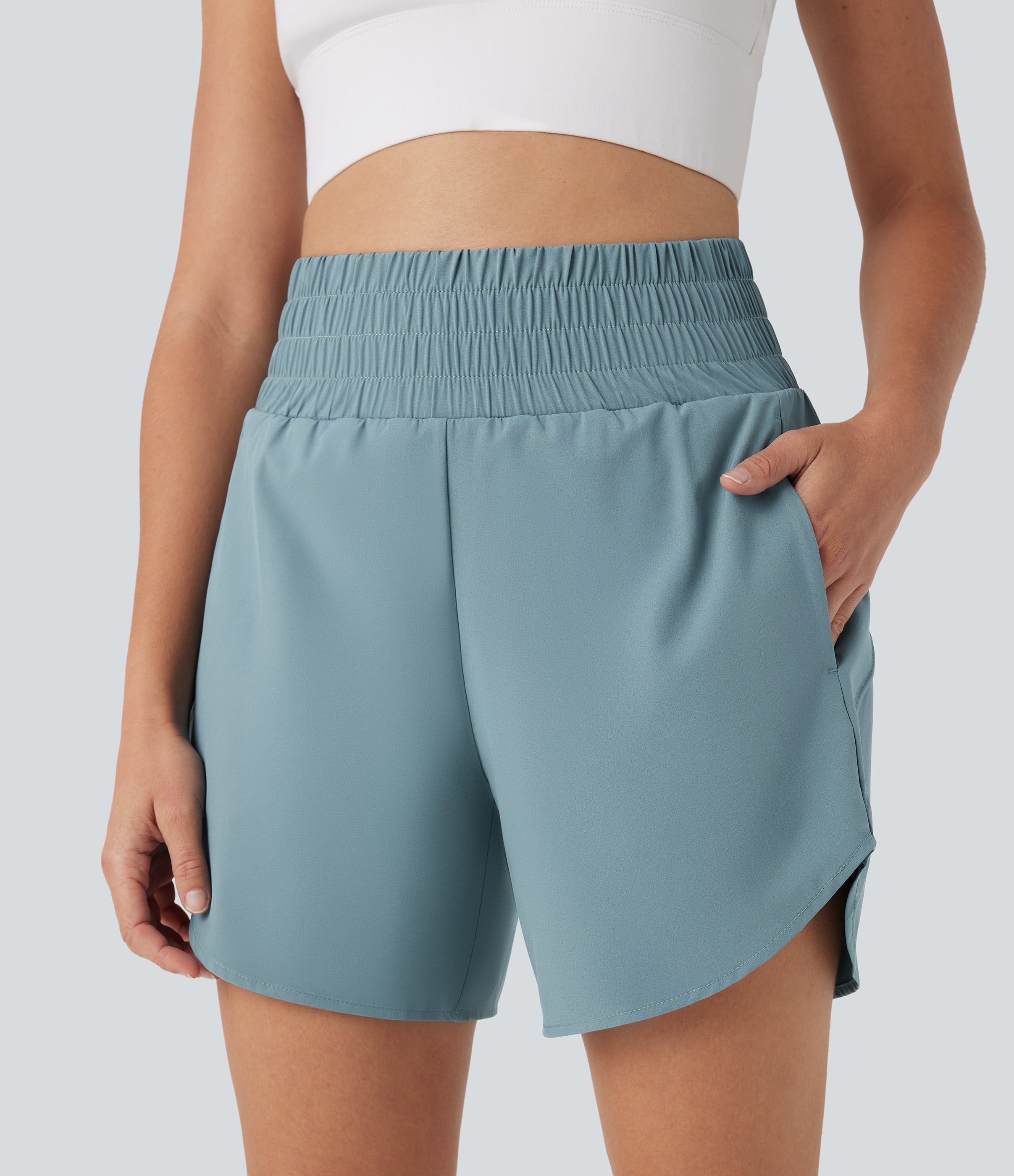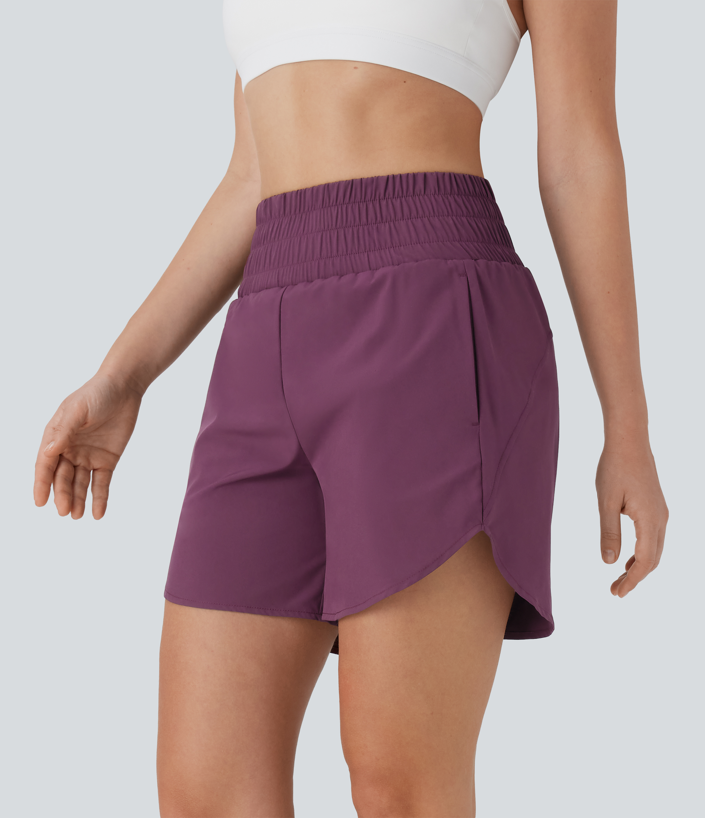 BreezefulTM High Waisted Pockets 2-in-1 Curved Hem Quick Dry Running Shorts 5.5''-Longer Length