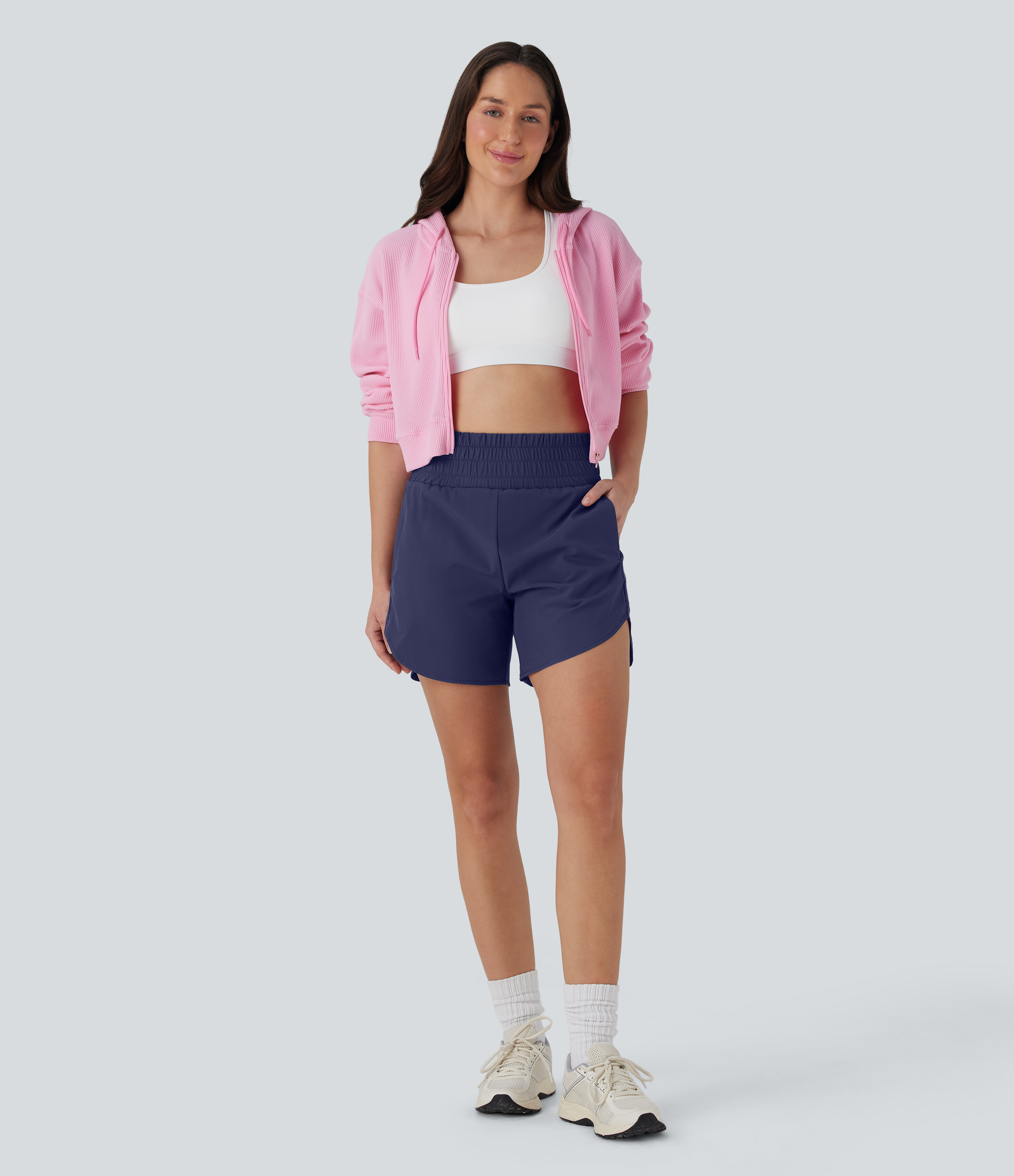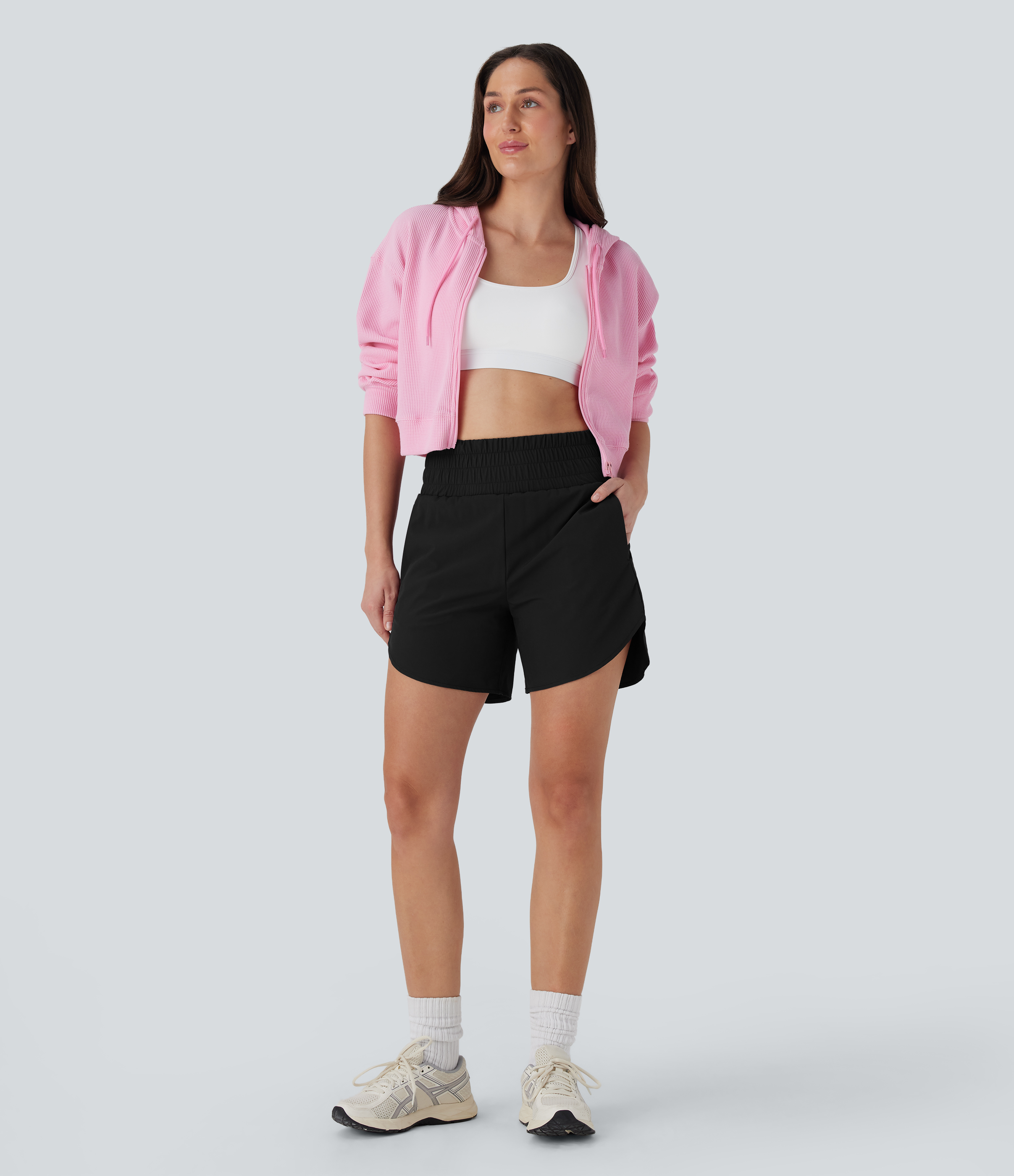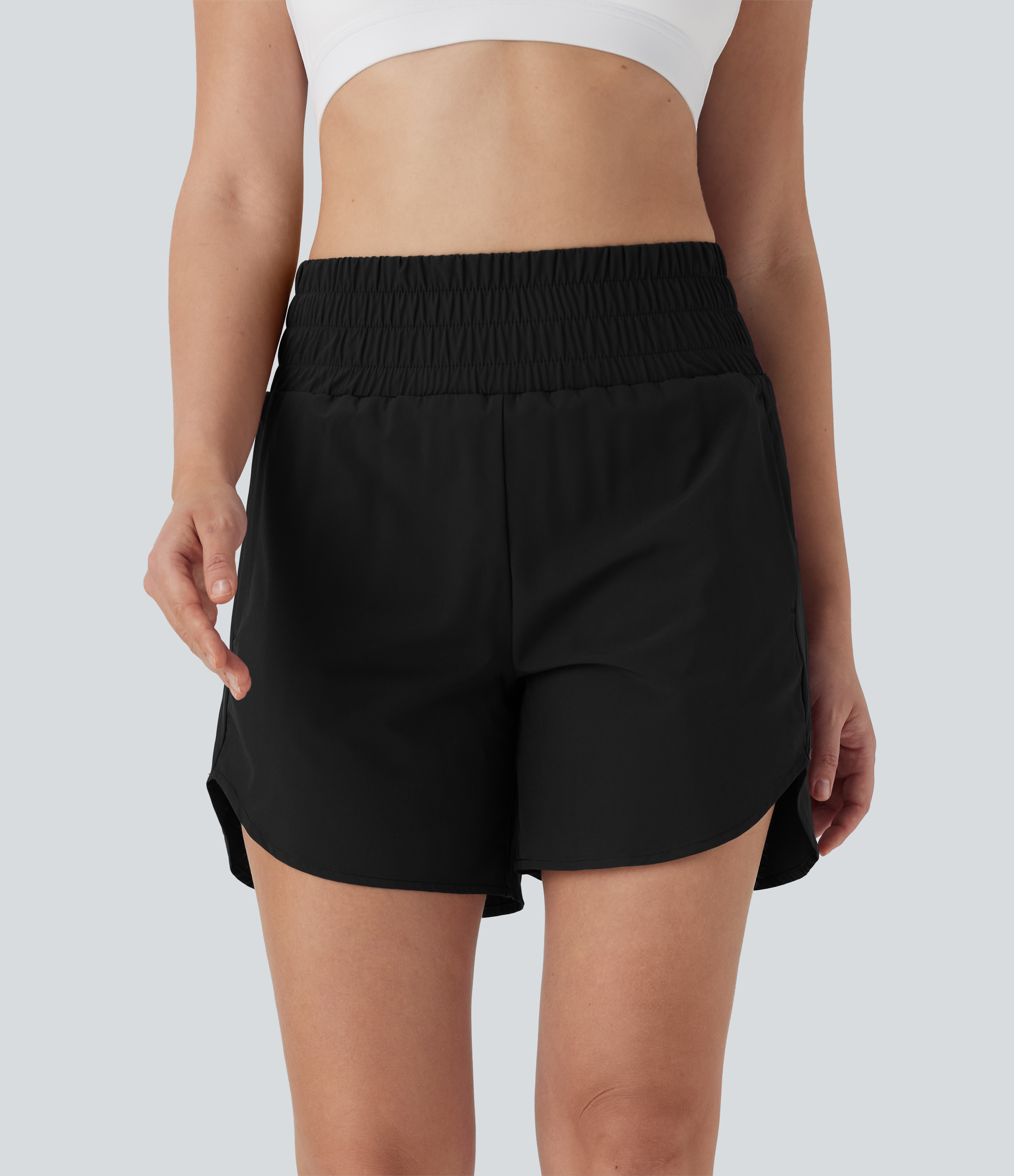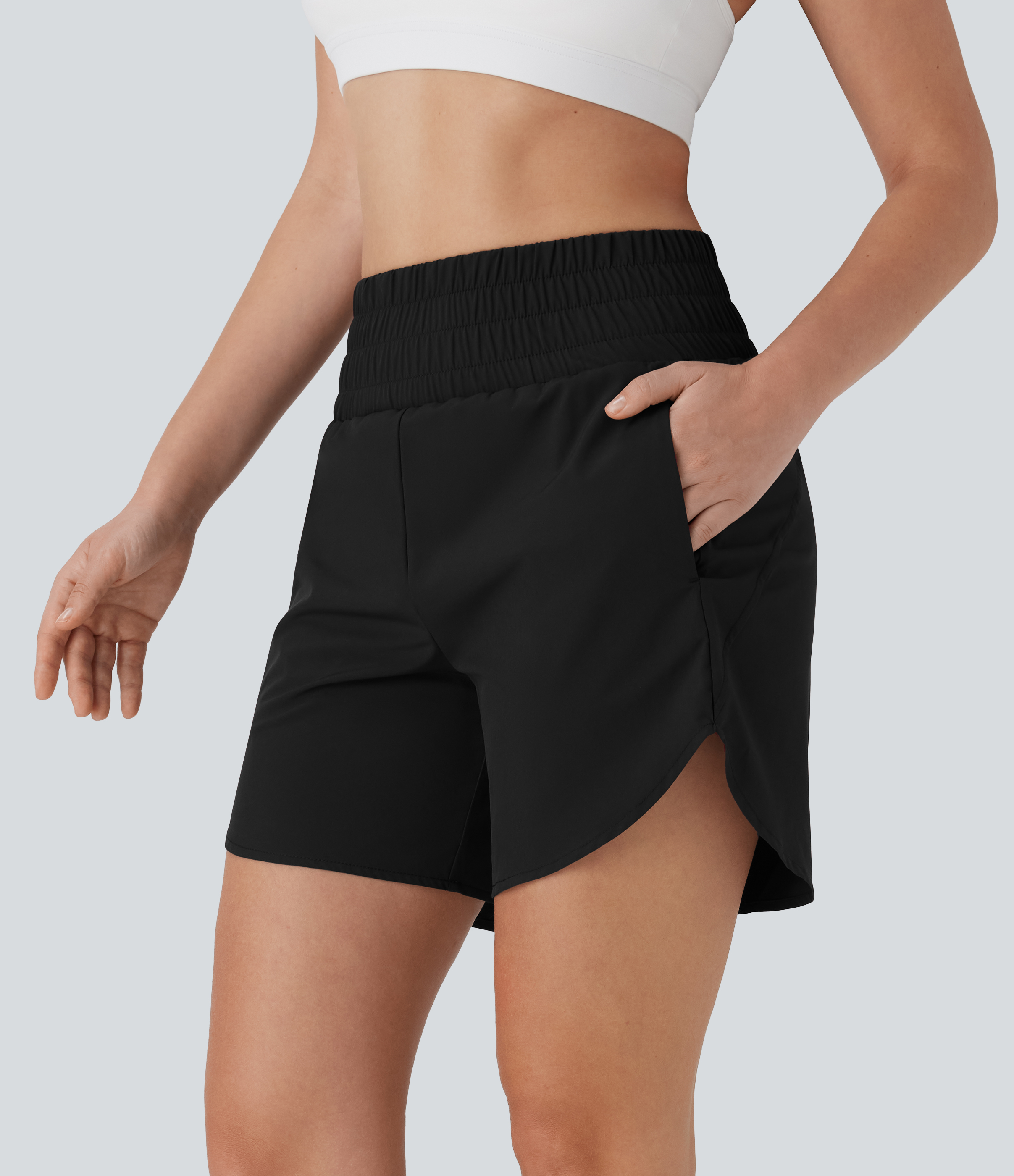 BreezefulTM High Waisted Pockets 2-in-1 Curved Hem Quick Dry Running Shorts 5.5''-Longer Length