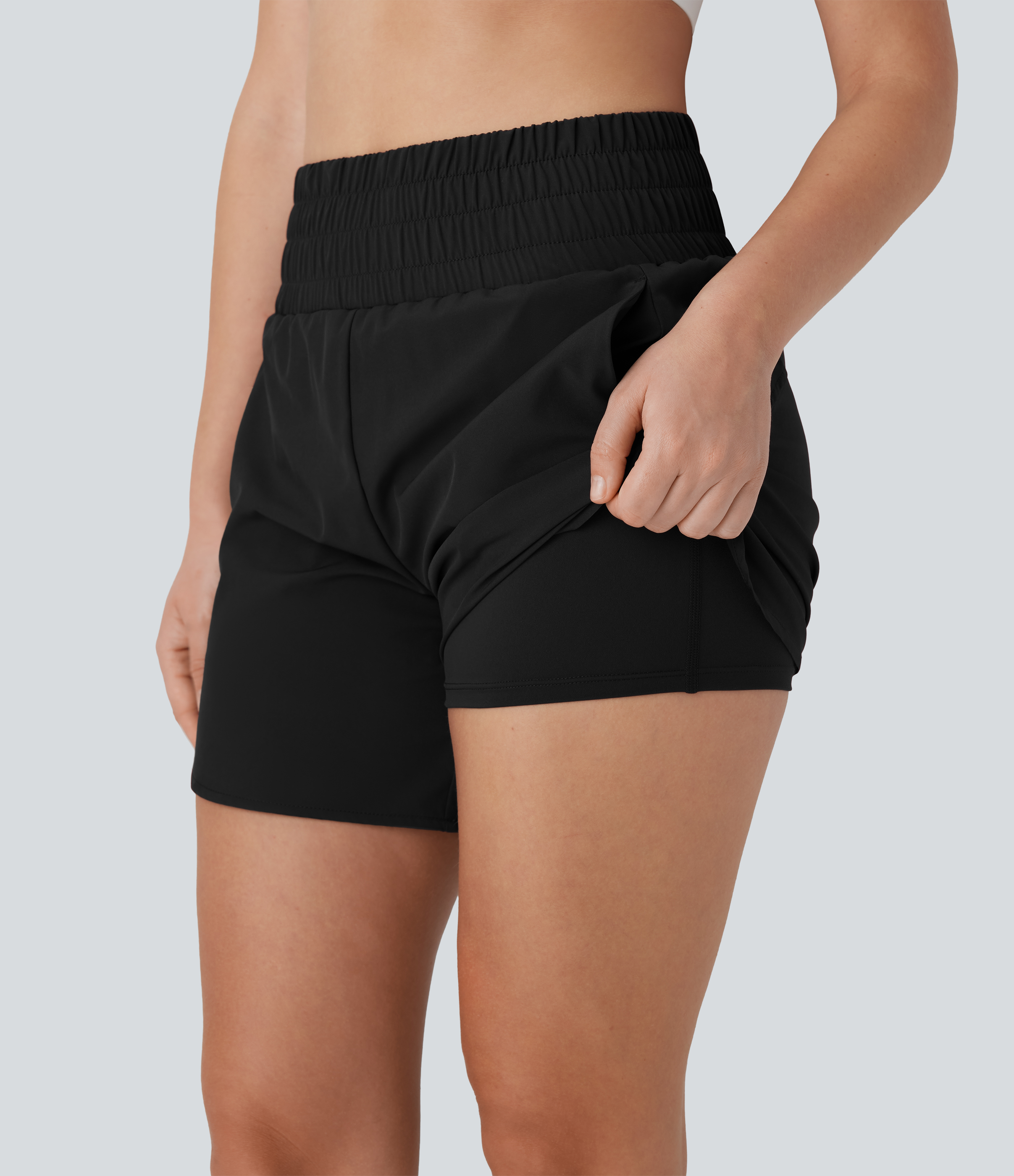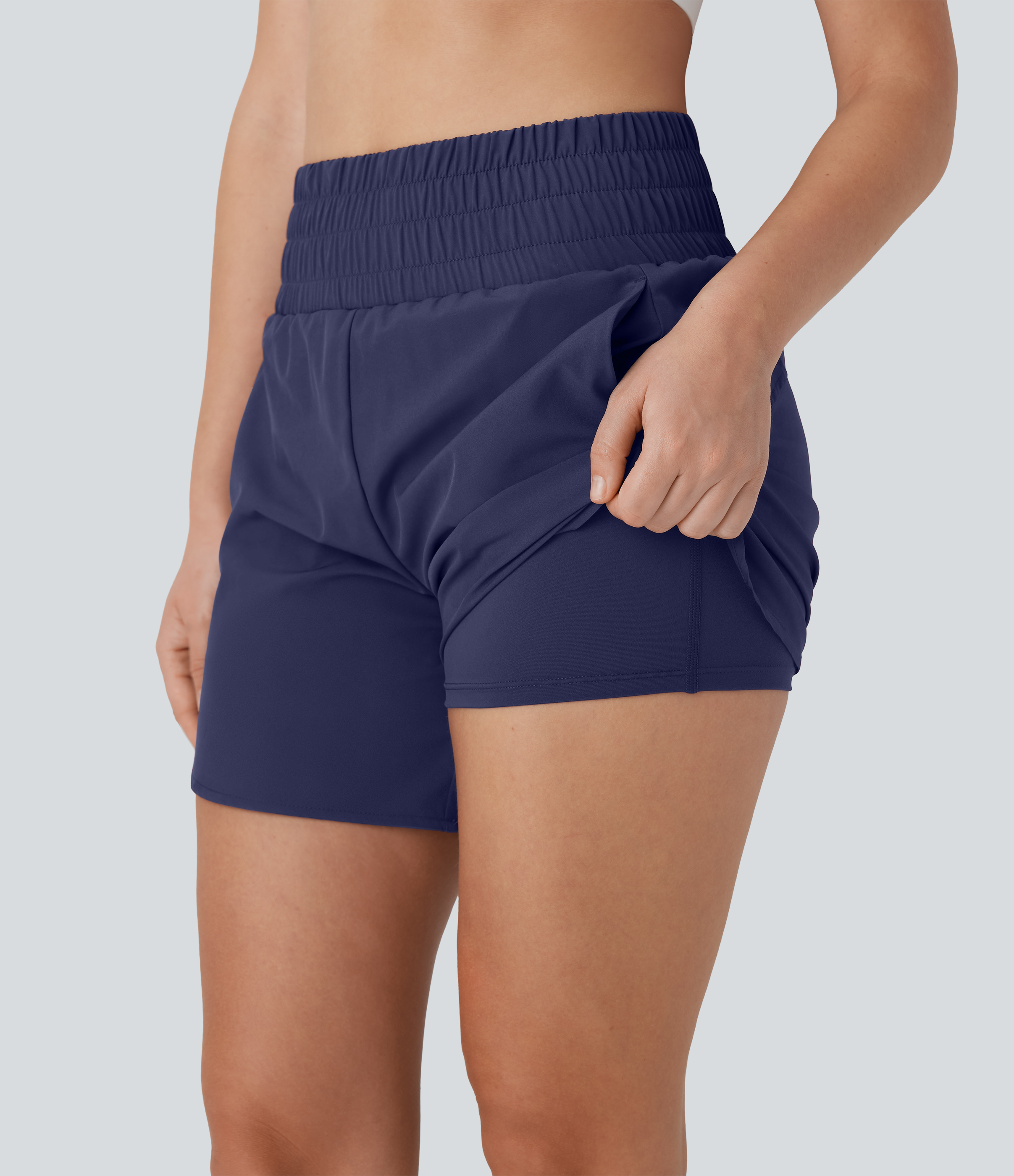 • BreezefulTM High Waisted Pockets 2-in-1 Curved Hem Quick Dry Running Shorts 5.5''-Longer Length