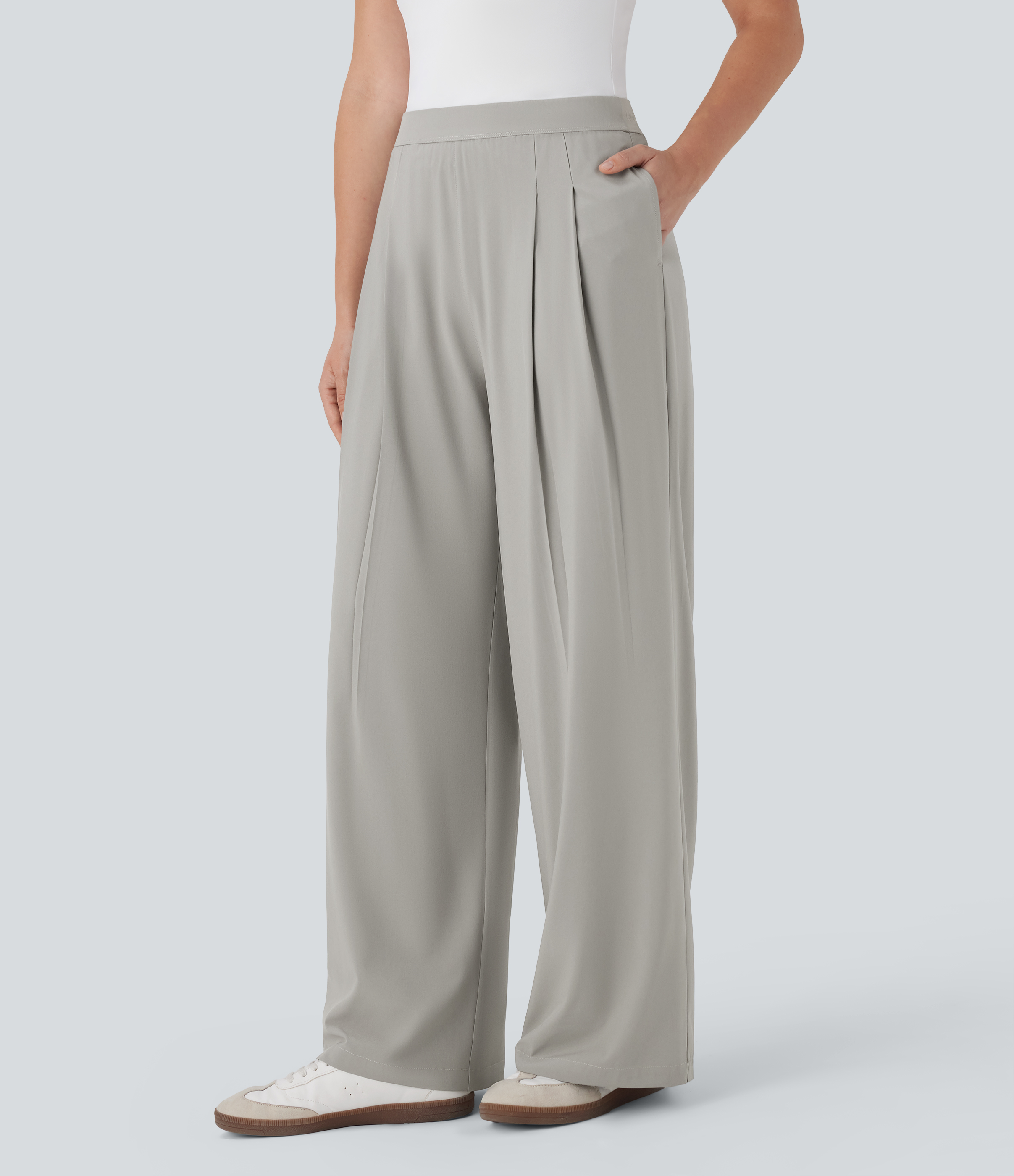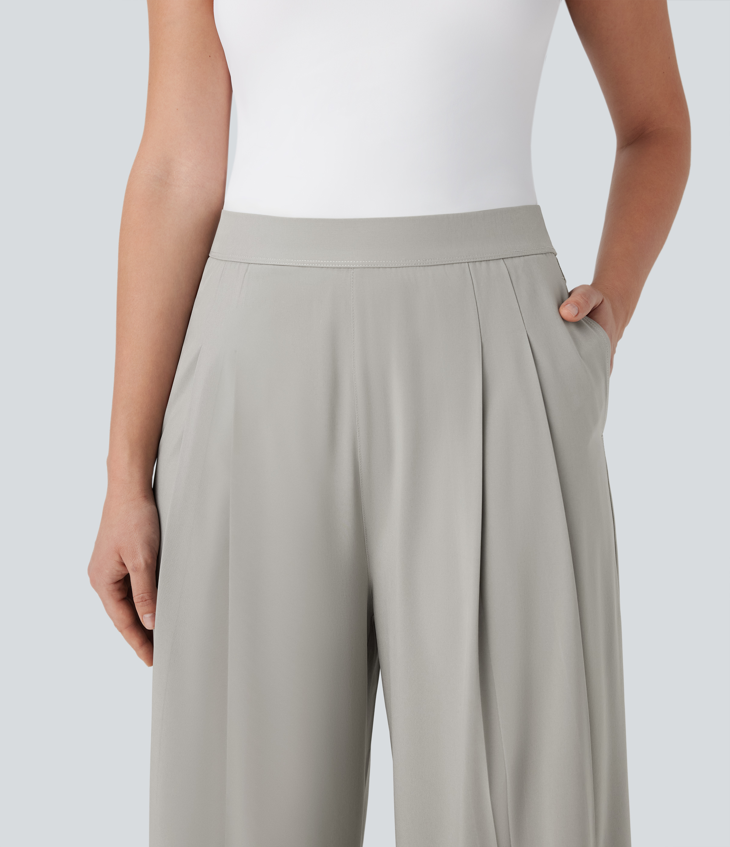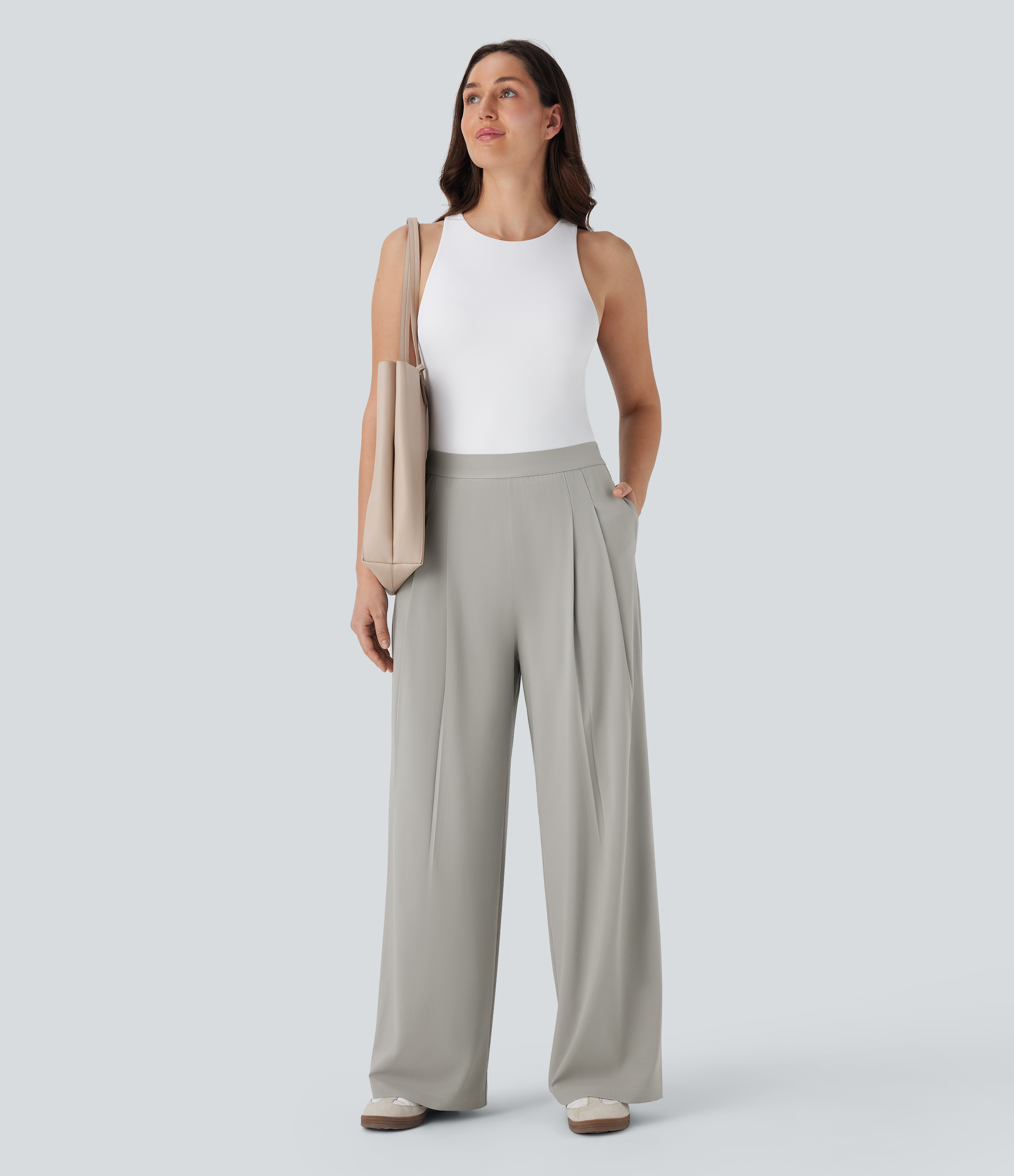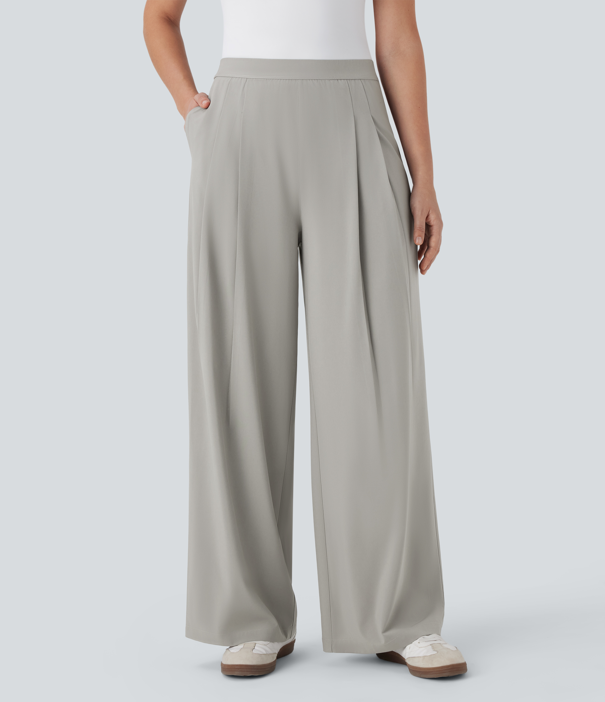 BreezefulTM High Waisted Wide Leg Quick Dry Work Pants with Pockets