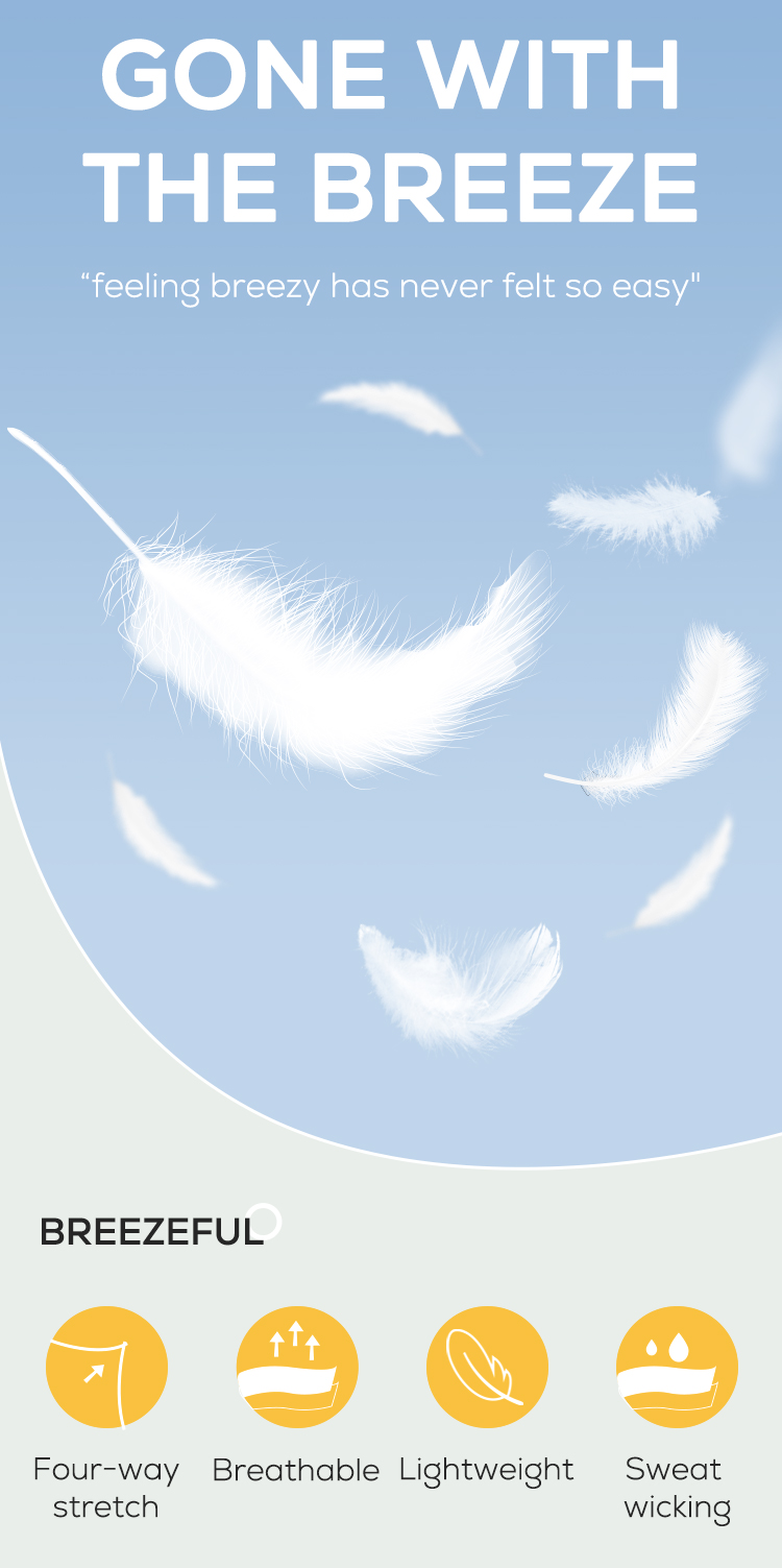 - Breezeful™ is soft to the touch, with 4-way stretch, breathability, and sweat-wicking qualities to keep you dry and comfortable for movement. Lightweight, breathable feel.