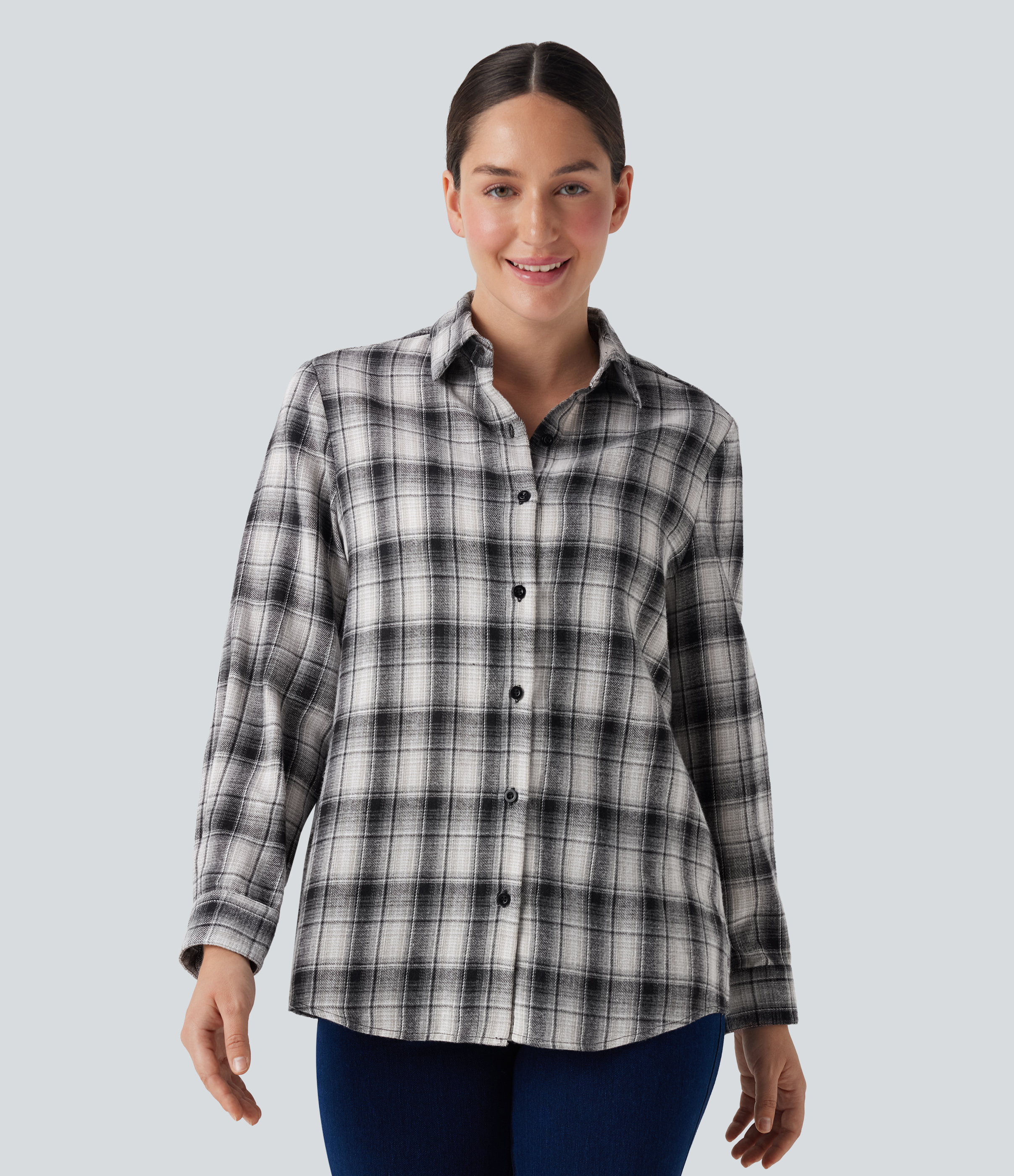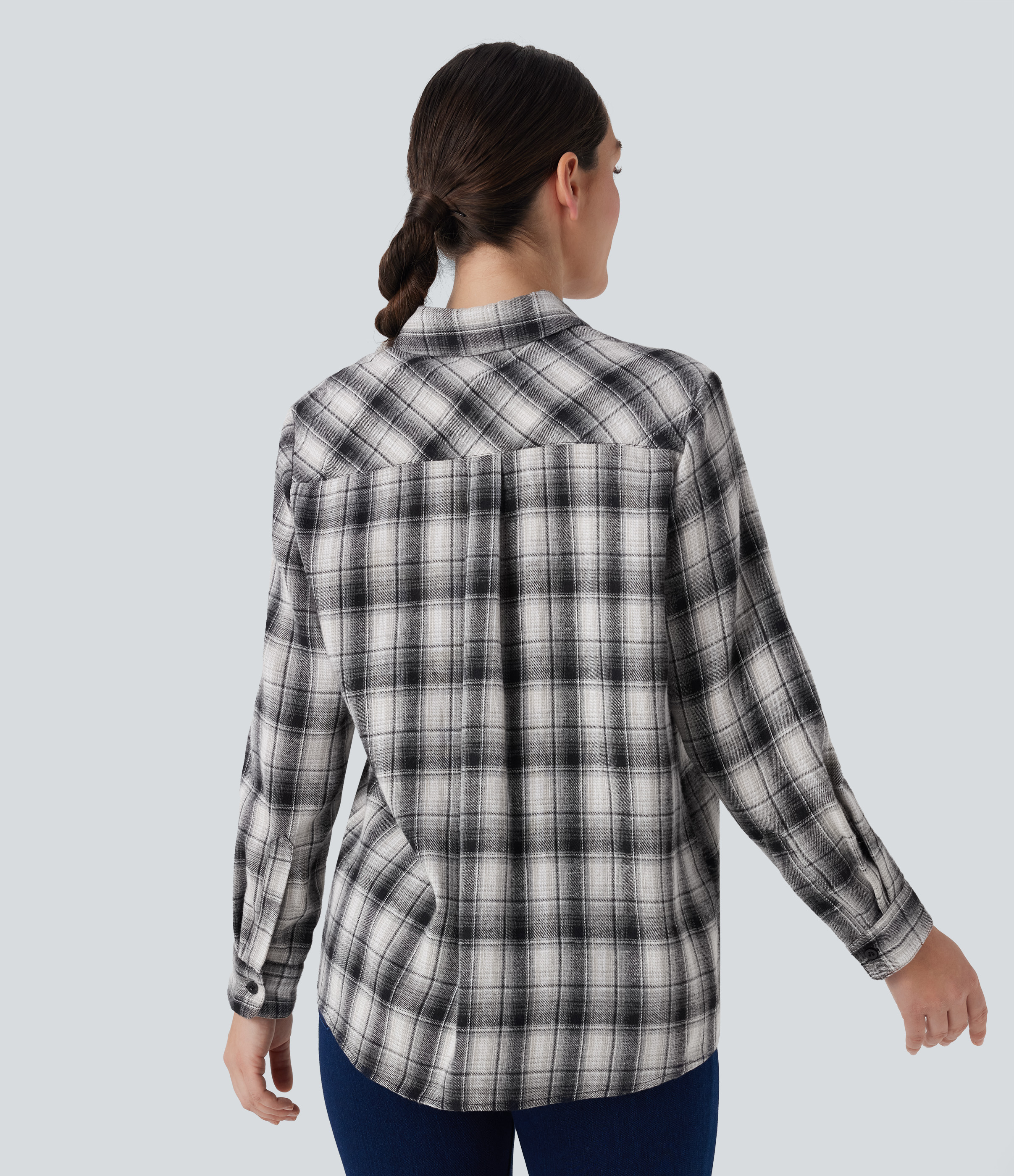 - Plaid patterning in multi-colored tartan design for a bold and versatile look.