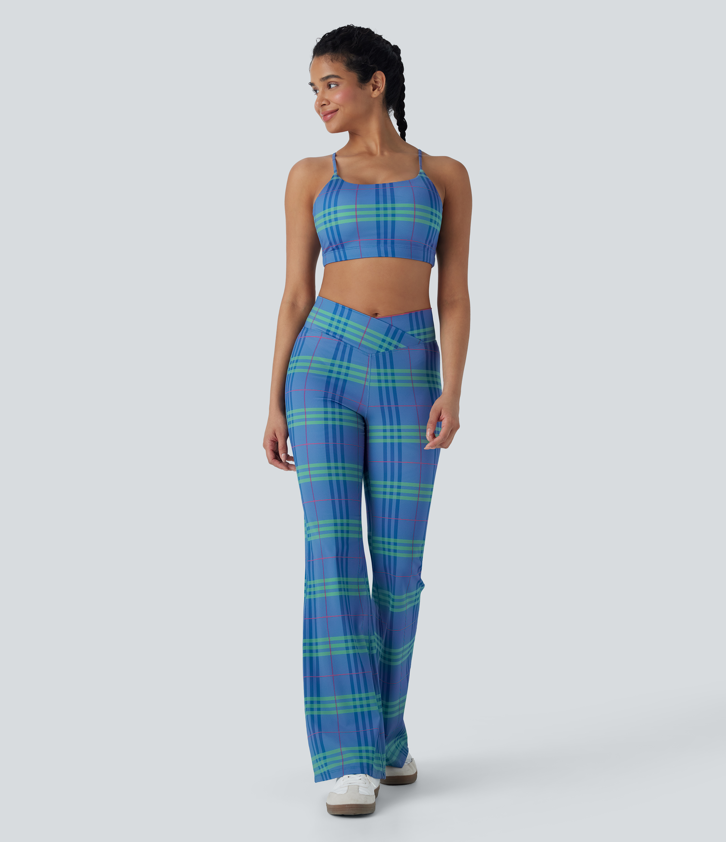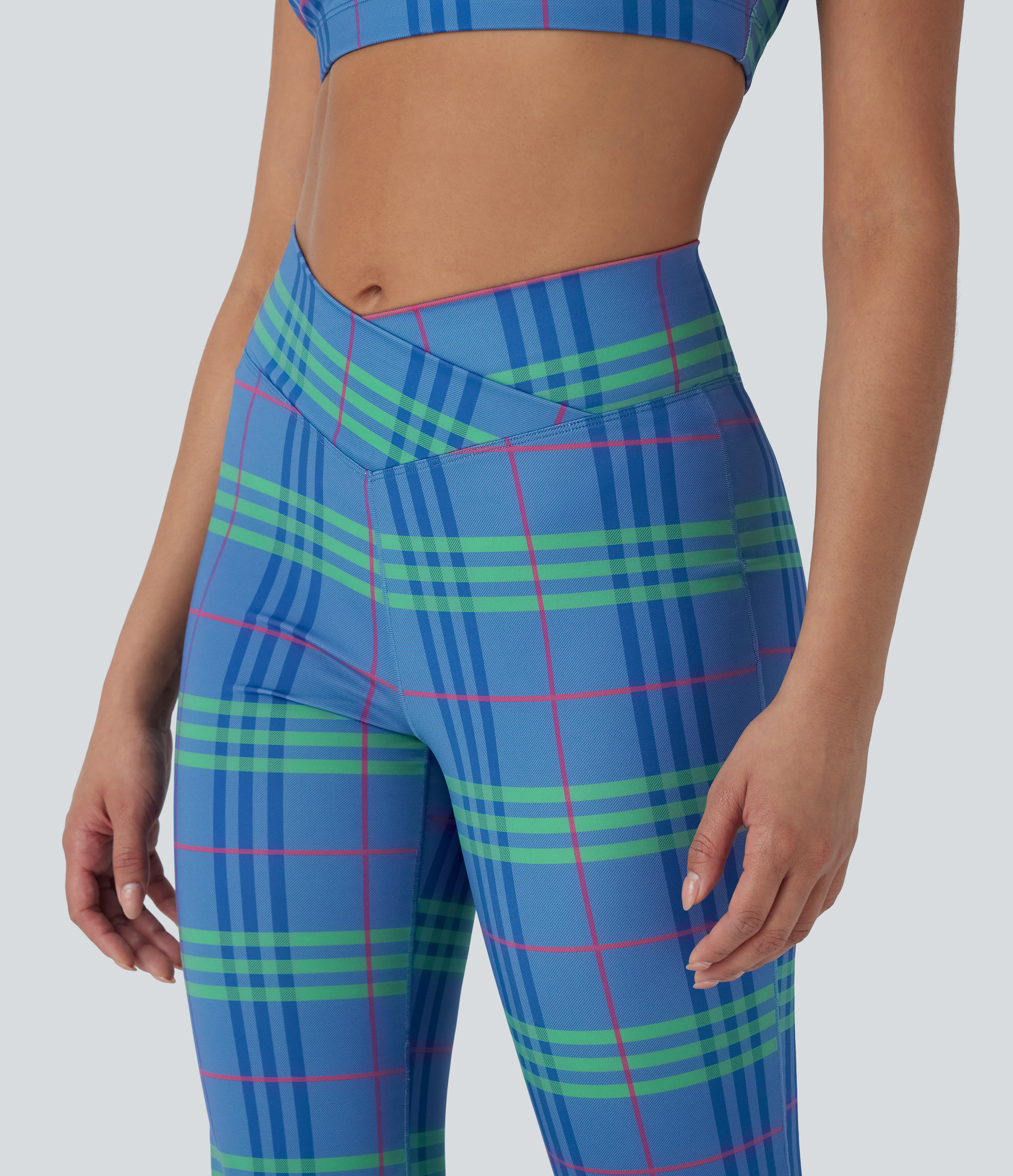 - Plaid patterning in multi-colored tartan design for a bold and versatile look.