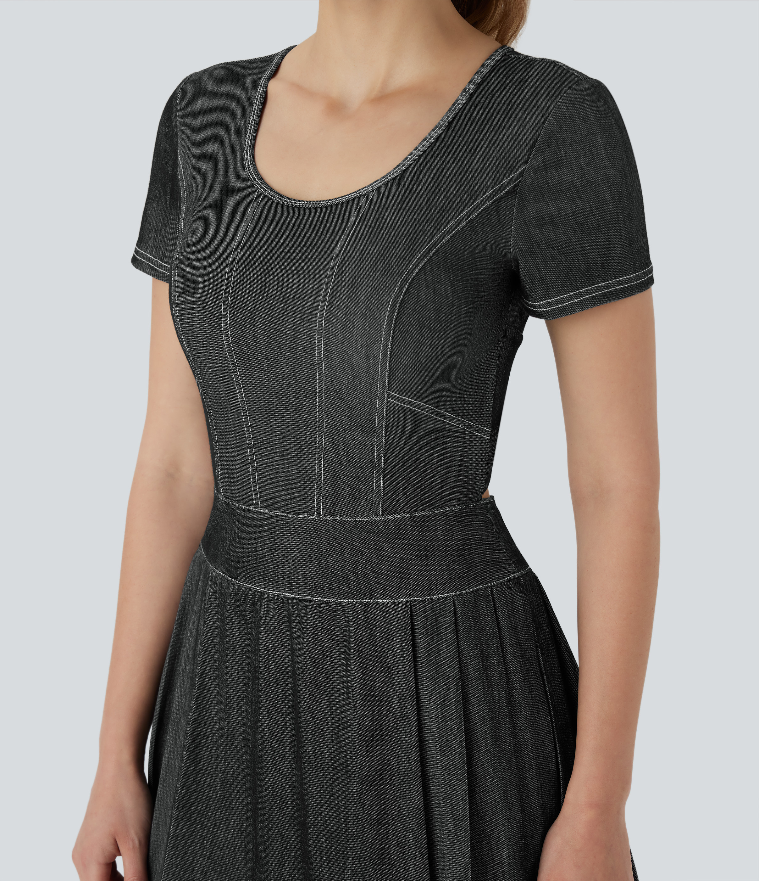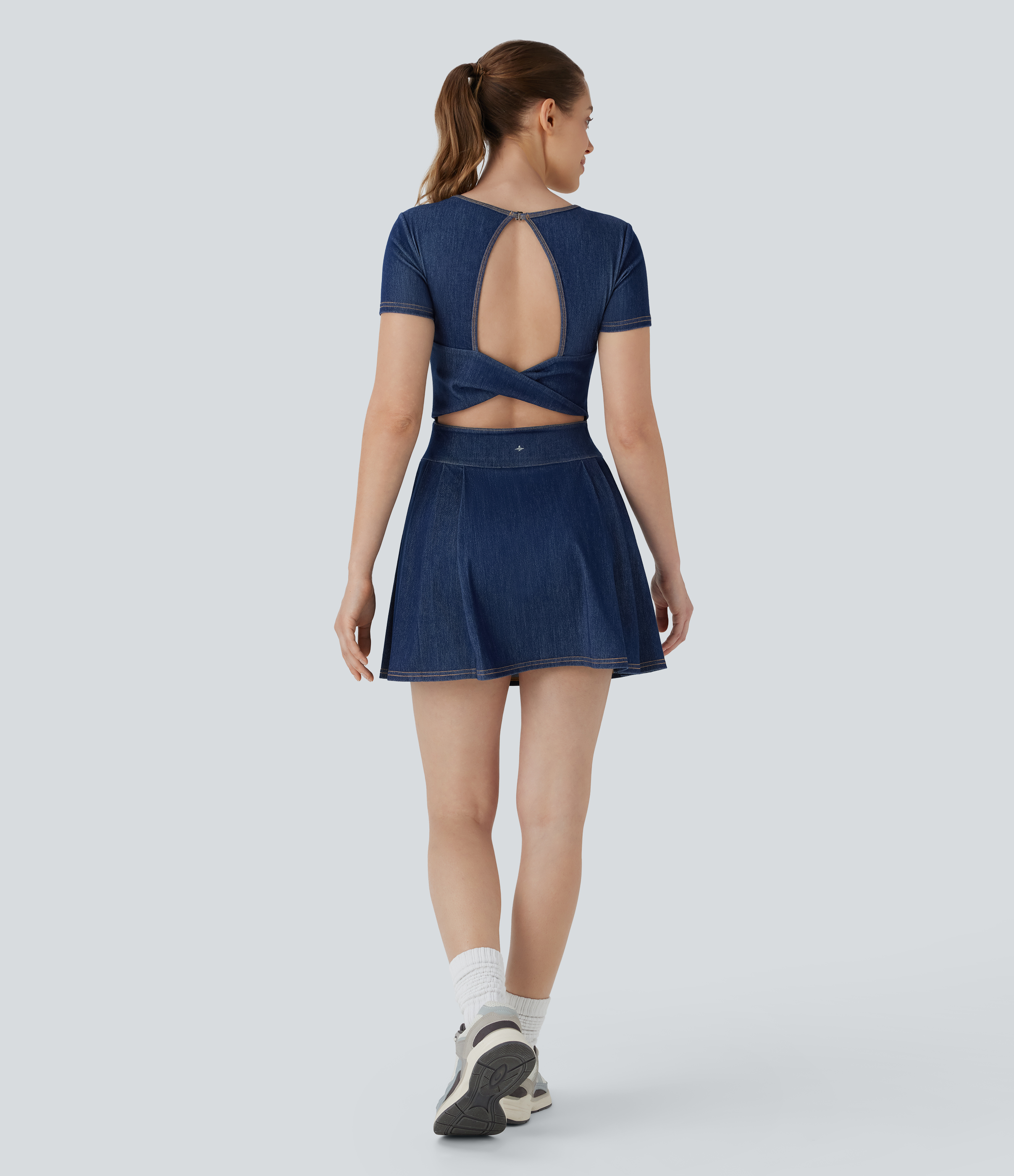 - Mini-length design that hits right at the thigh.