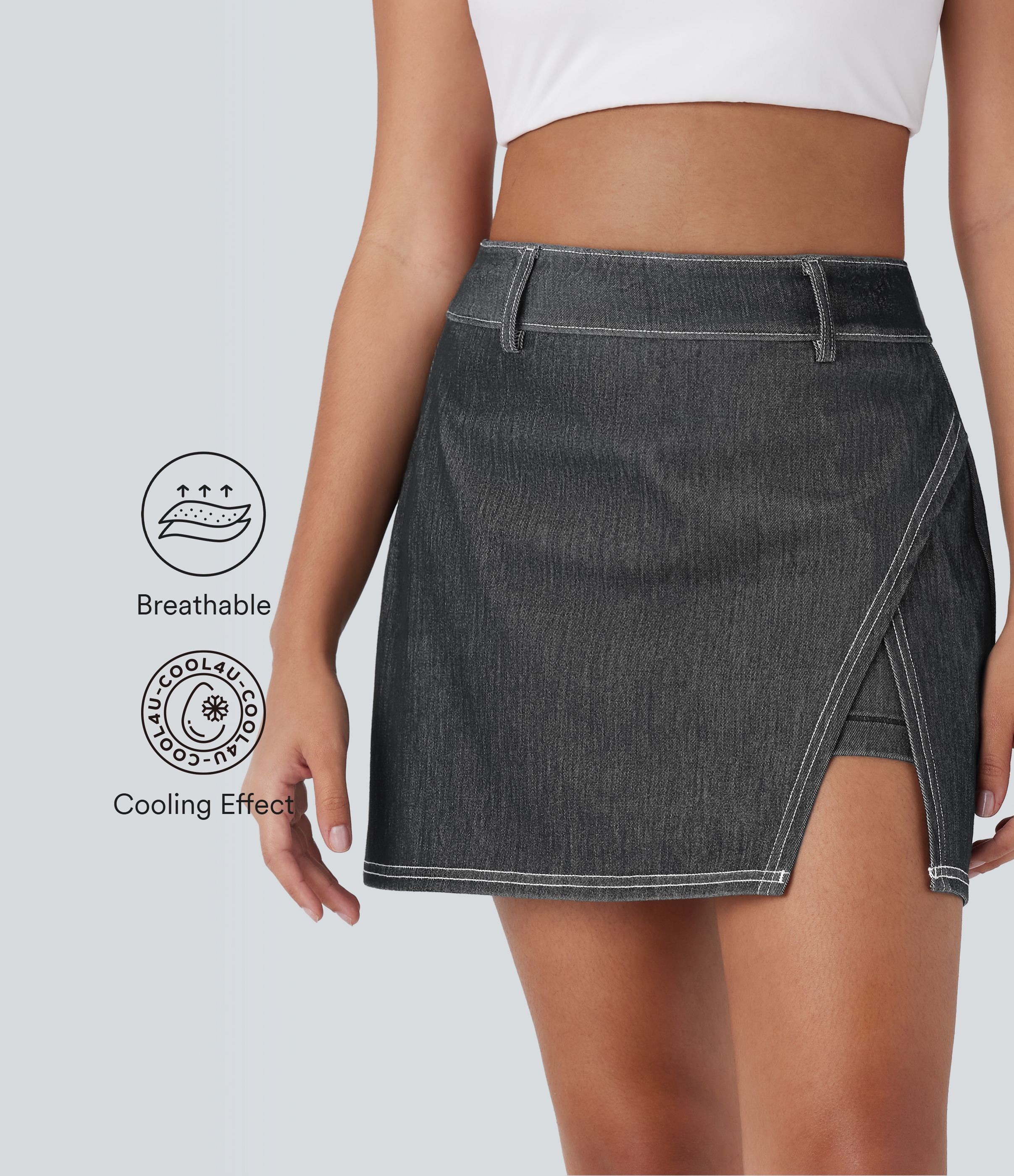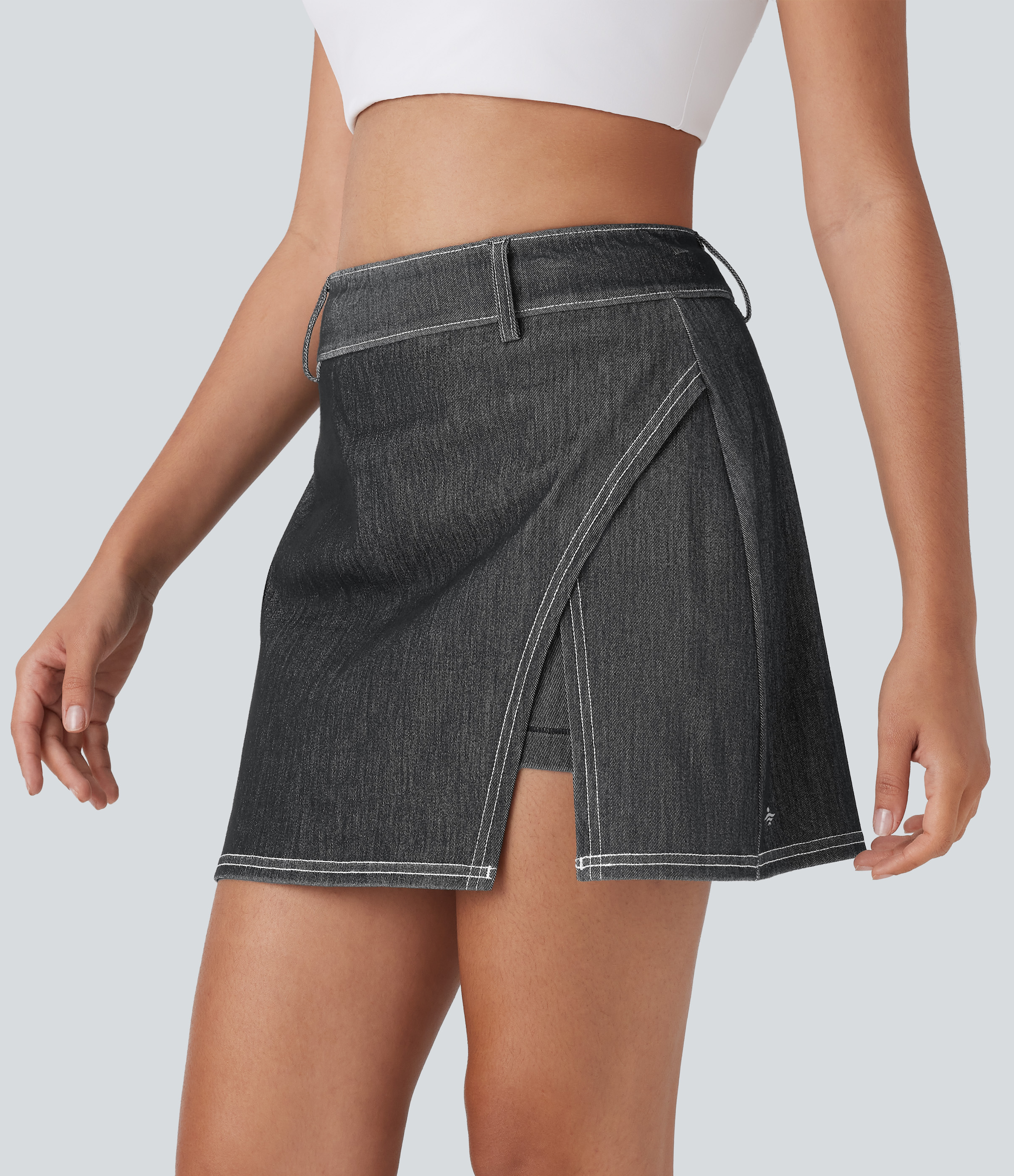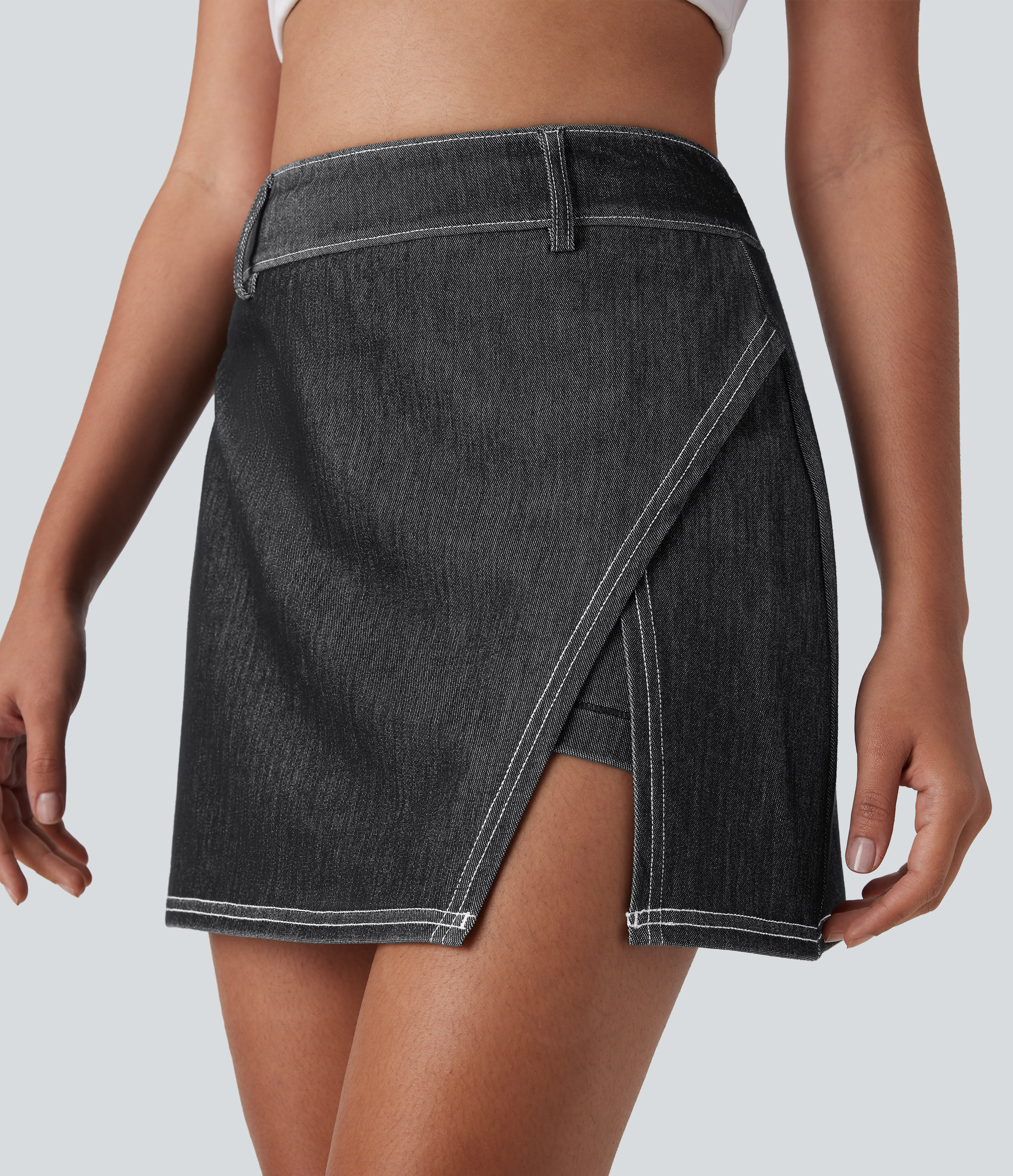 - Mini-length design that hits right at the thigh.