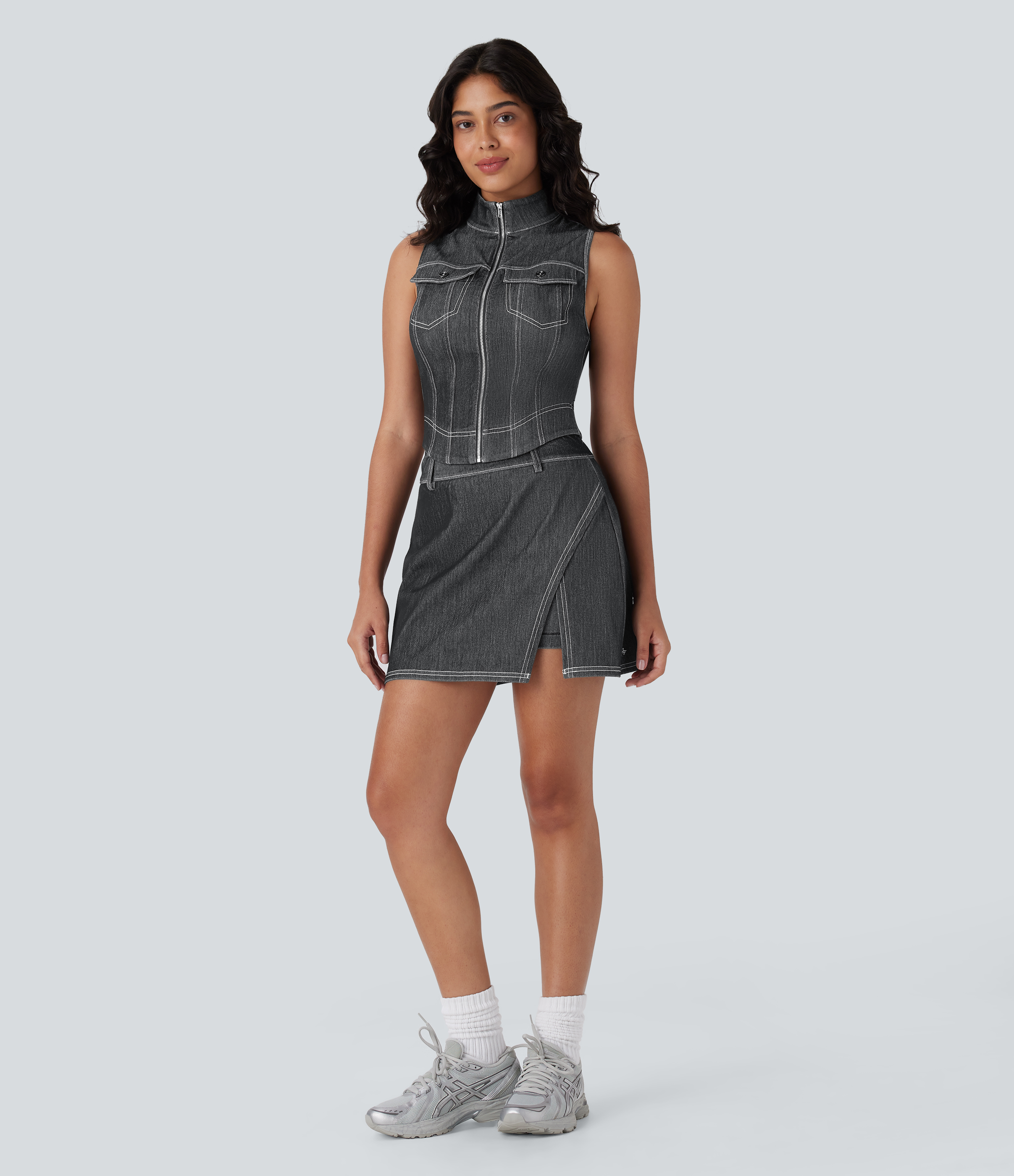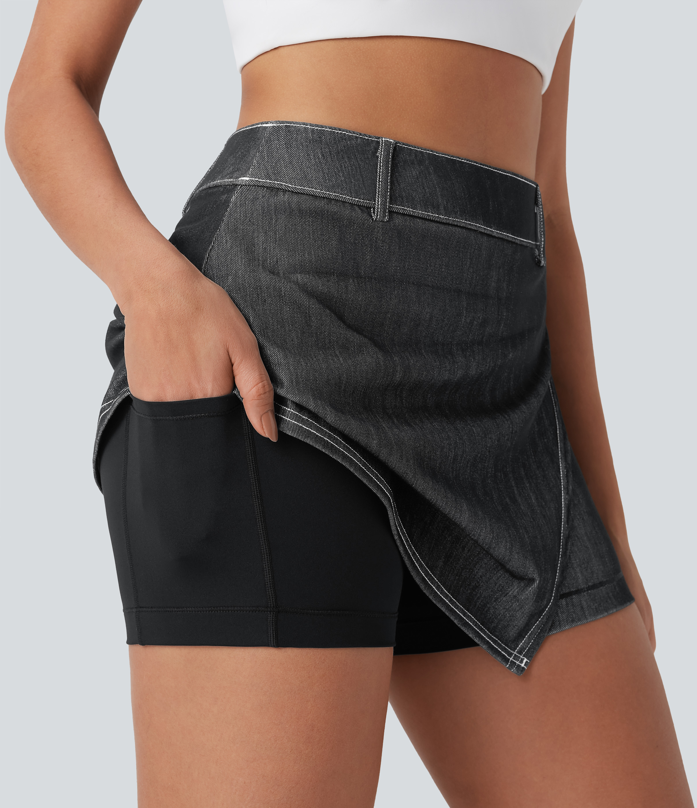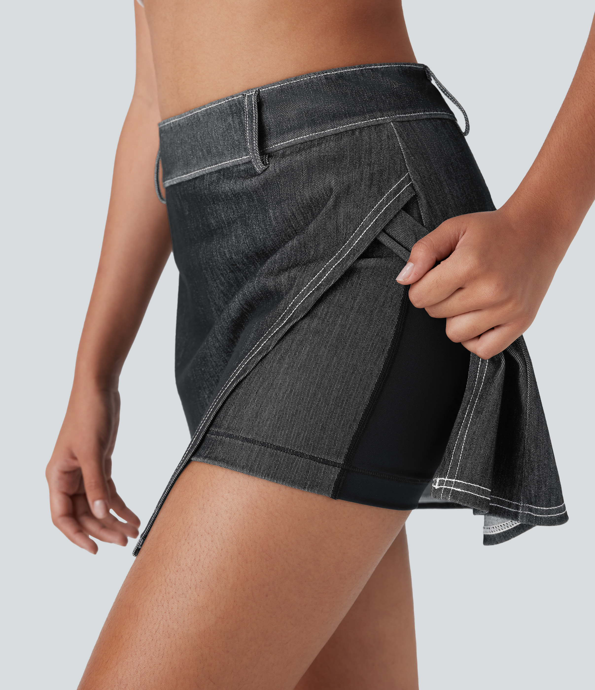 - Mini-length design that hits right at the thigh.