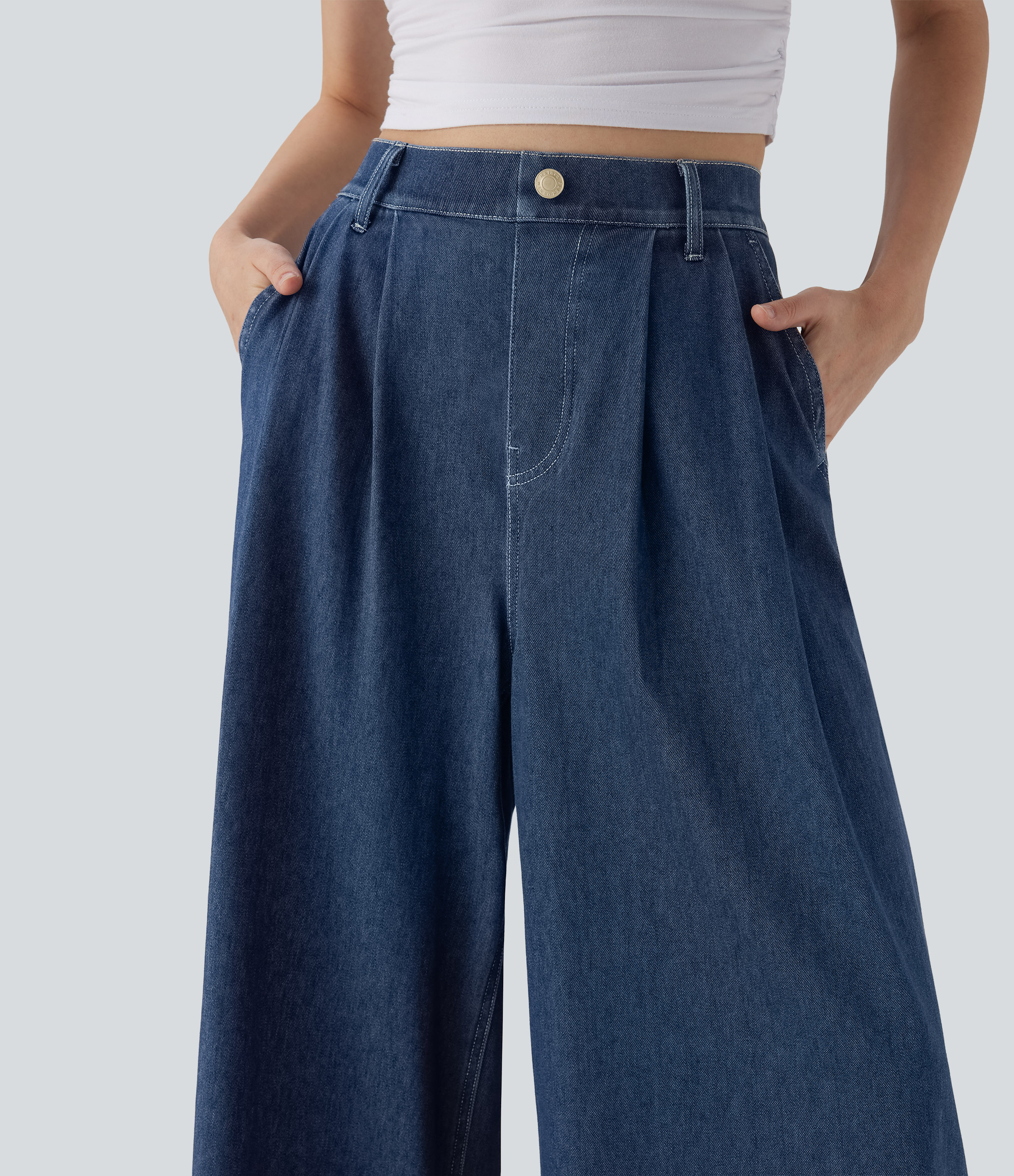 - Wide leg style gives a timeless look, while providing comfortable wear.