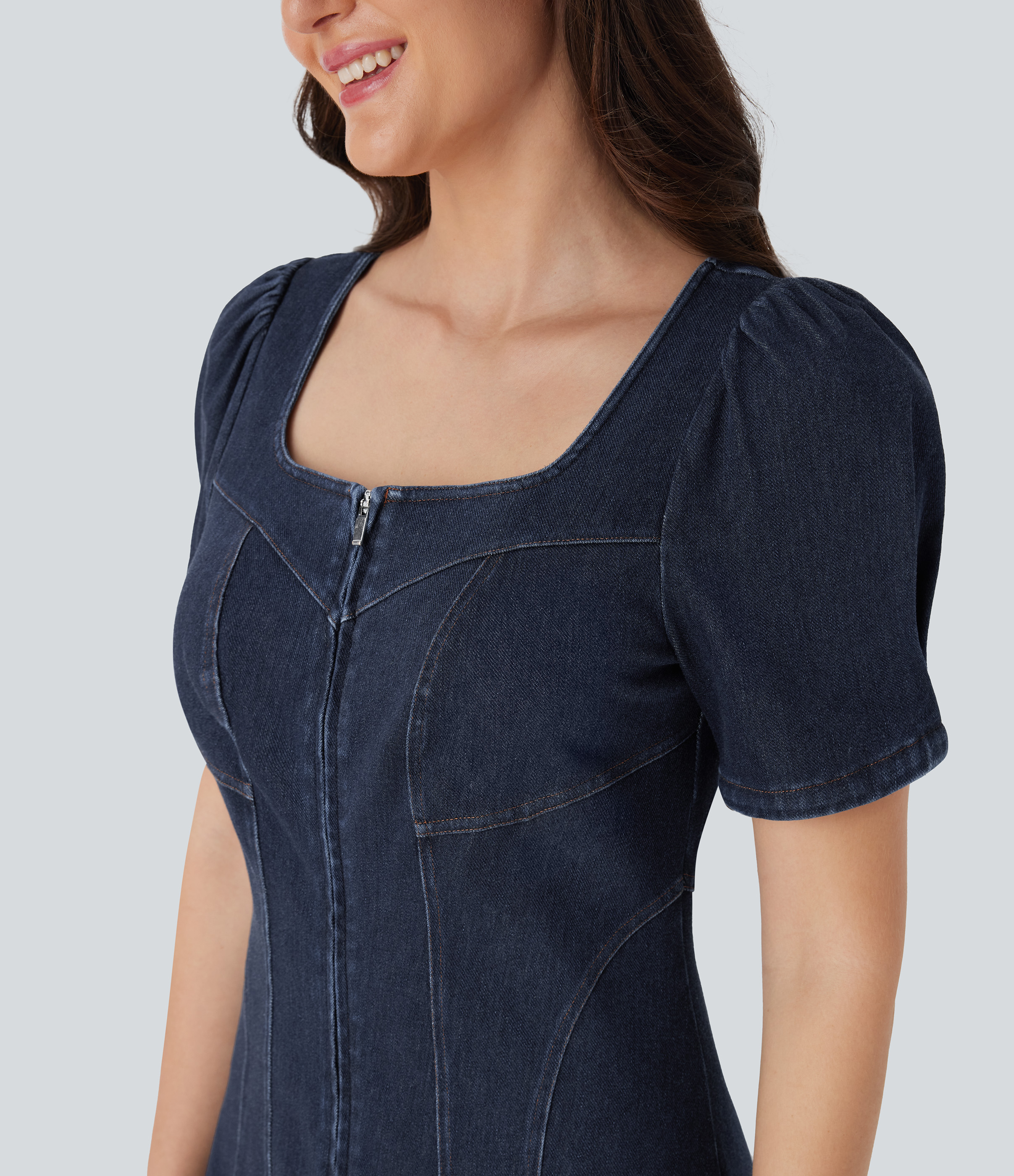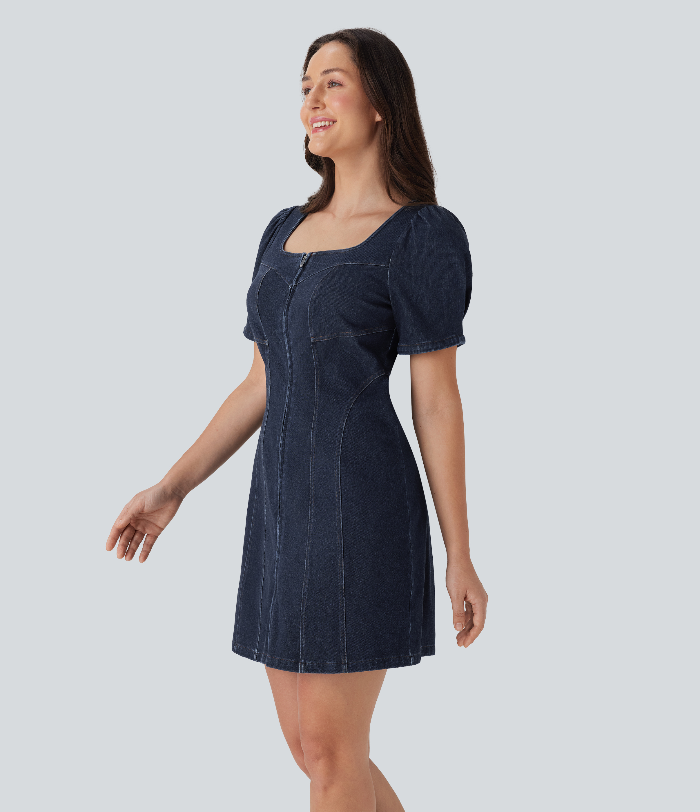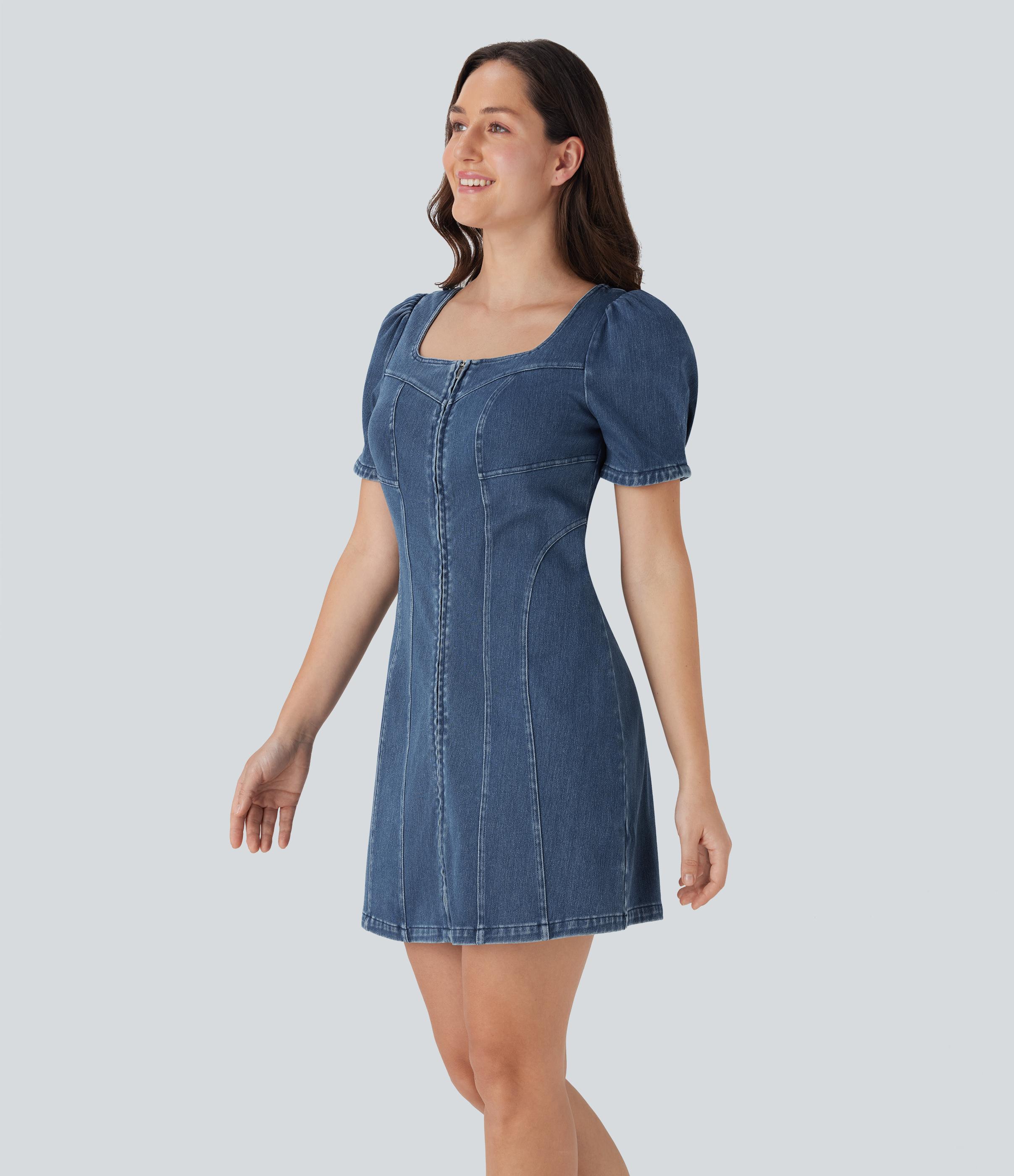- Mini-length design that hits right at the thigh.