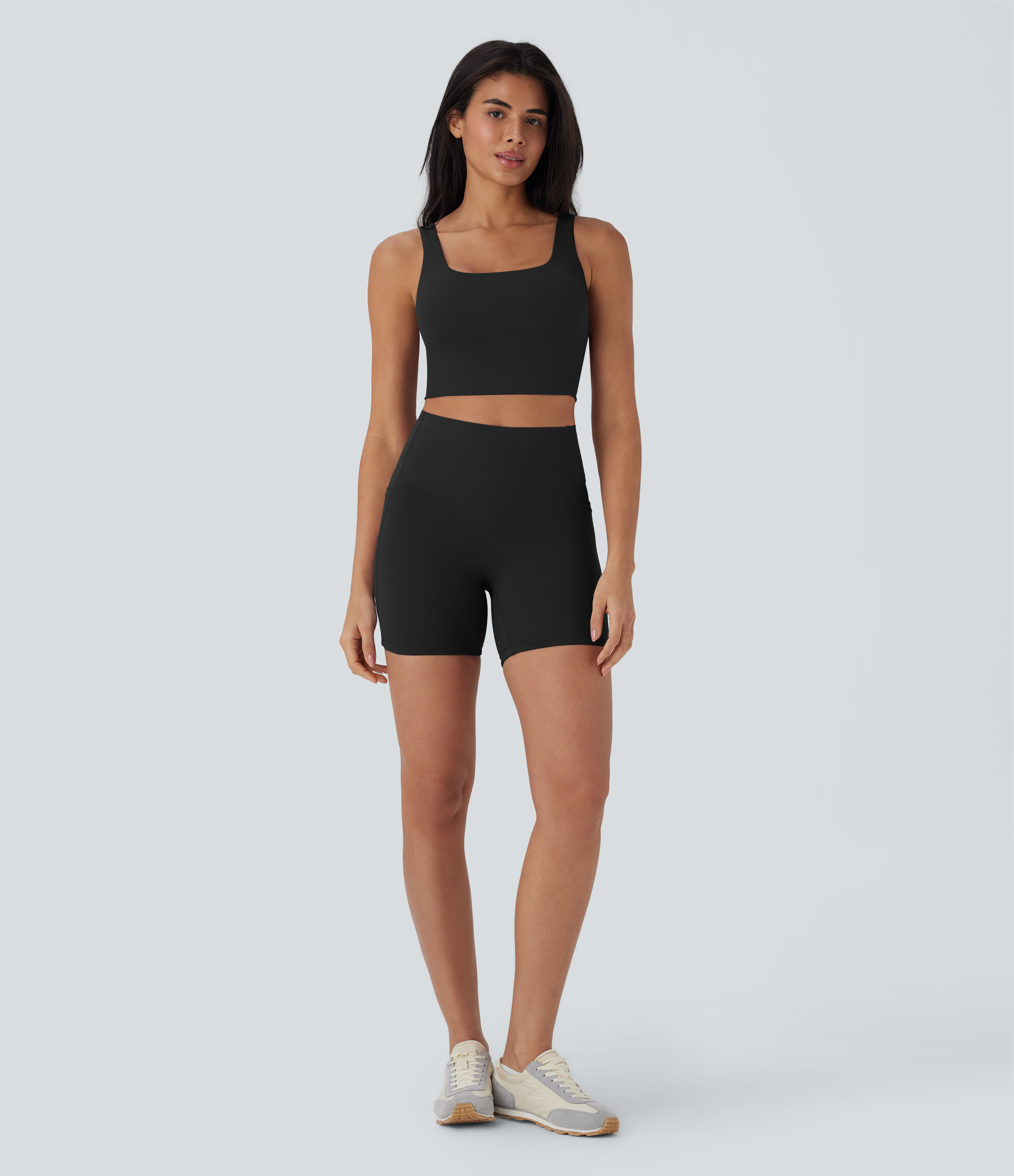 - No front seam at the crotch ensures zero camel toe.