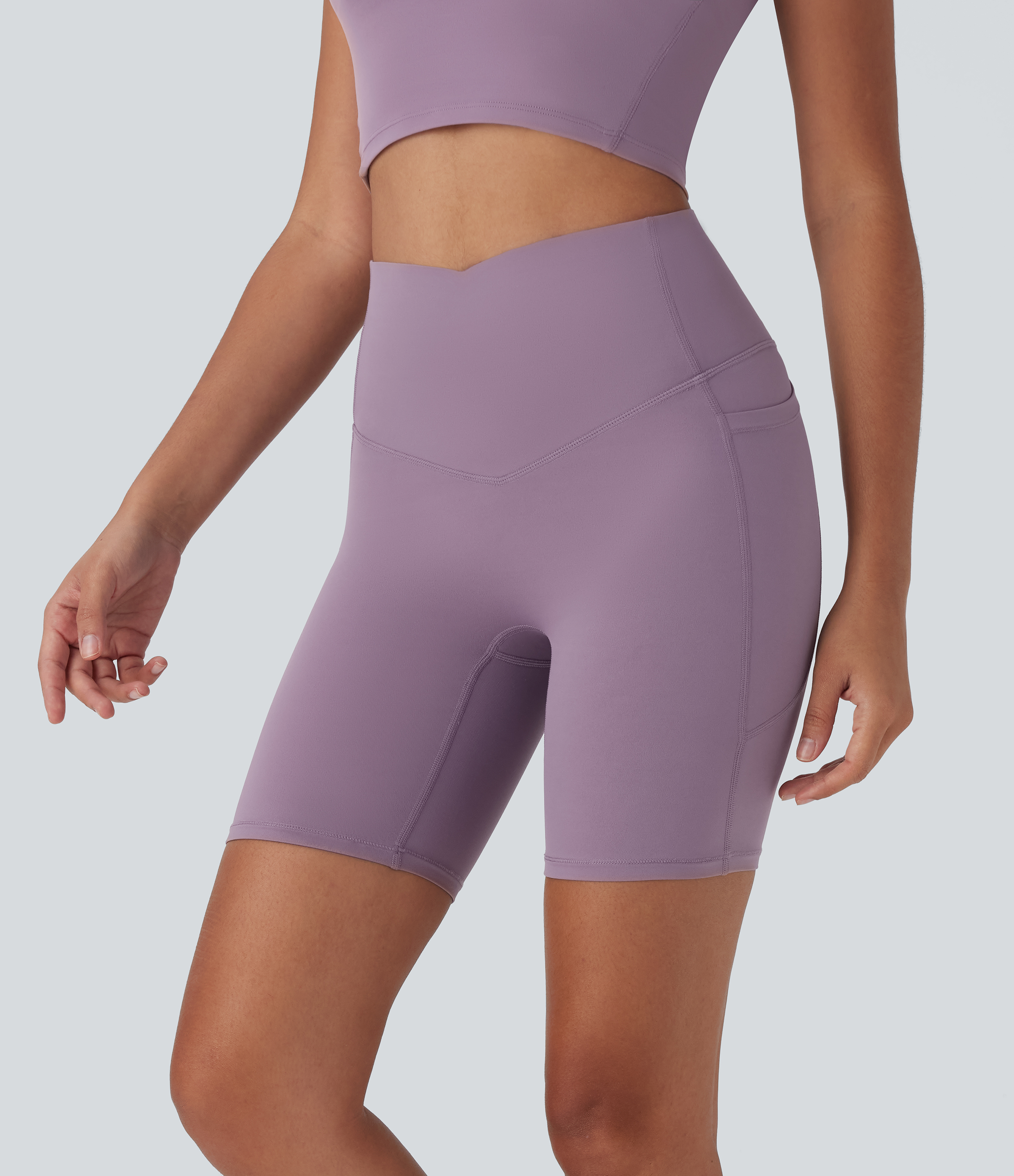• Halara UltraSculptTM Cool Quick Dry SoCinched High Waisted Tummy Control Shaping Yoga Biker Shorts 7'' with Pockets-UPF50+