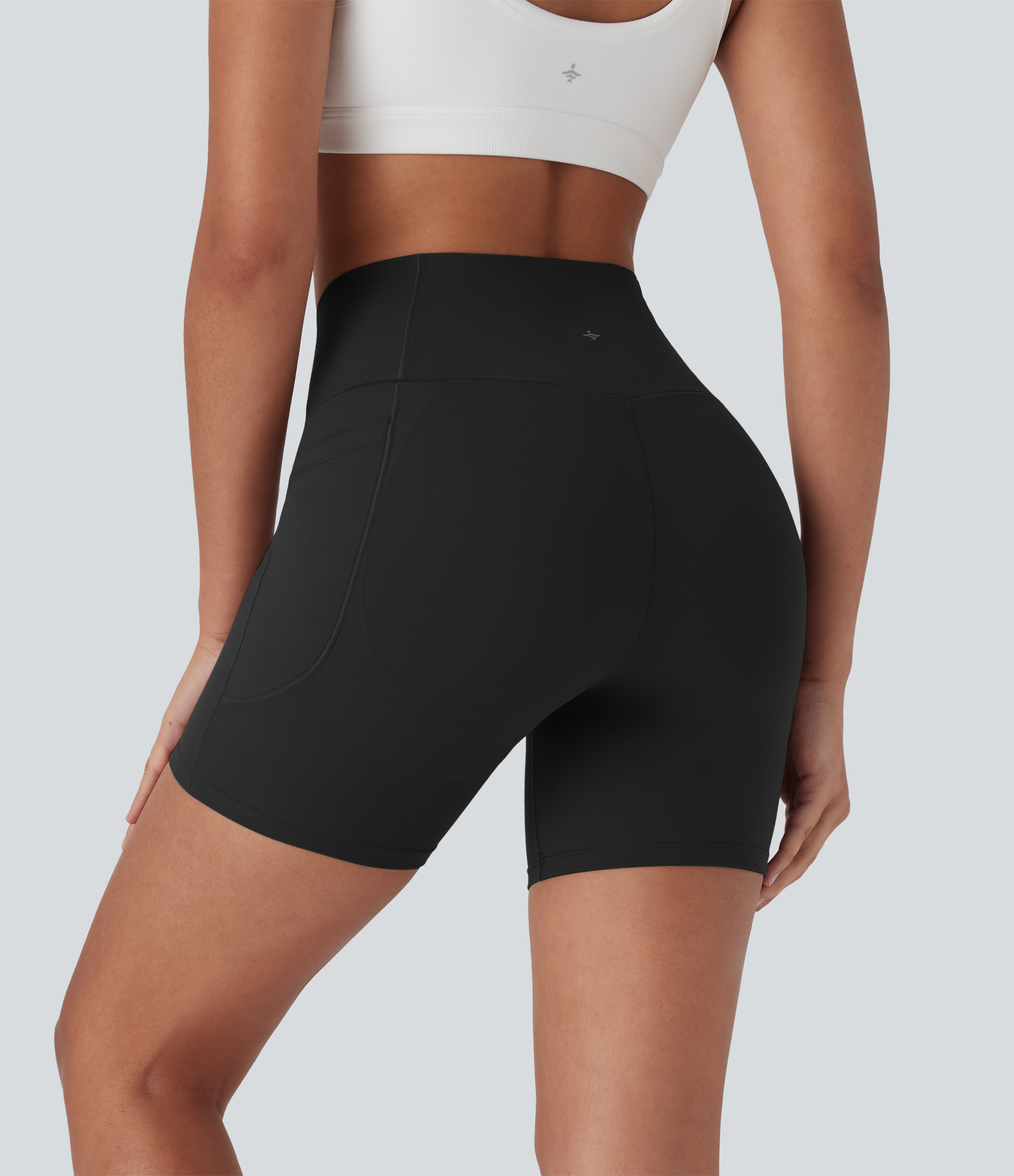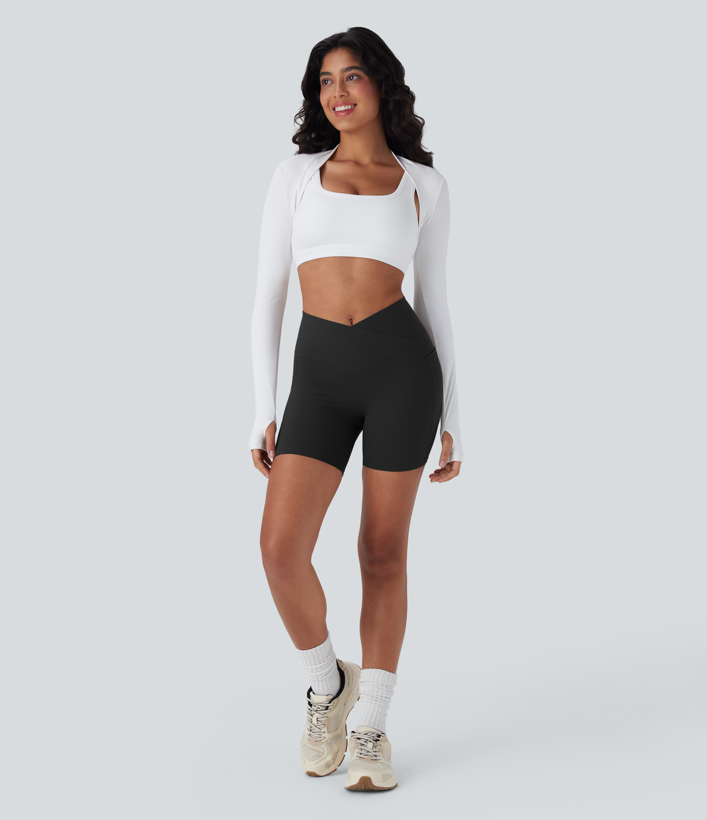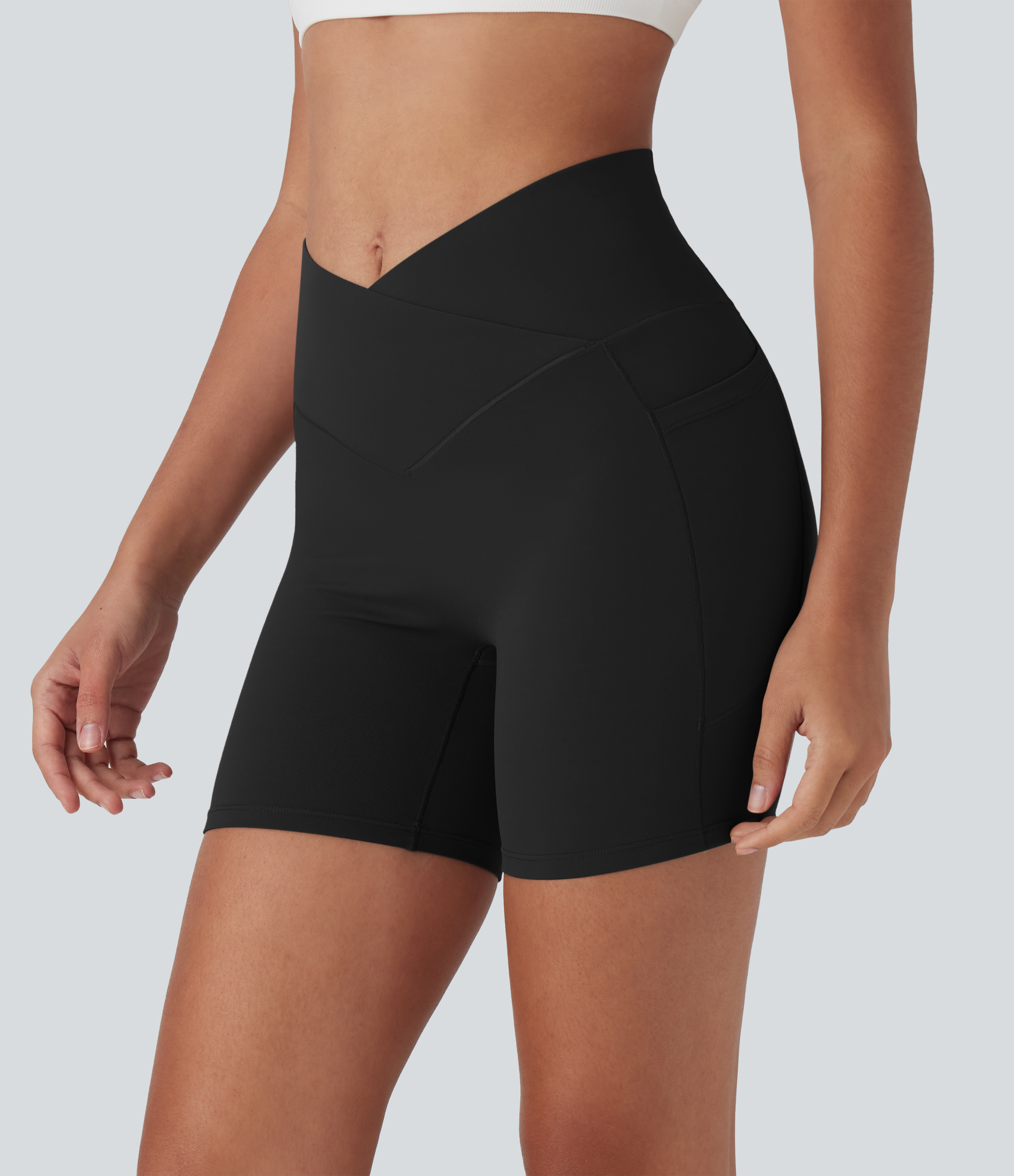 • Halara UltraSculptTM High Waisted Crossover Tummy Control Butt Lifting Yoga Biker Shorts 5'' with Pockets