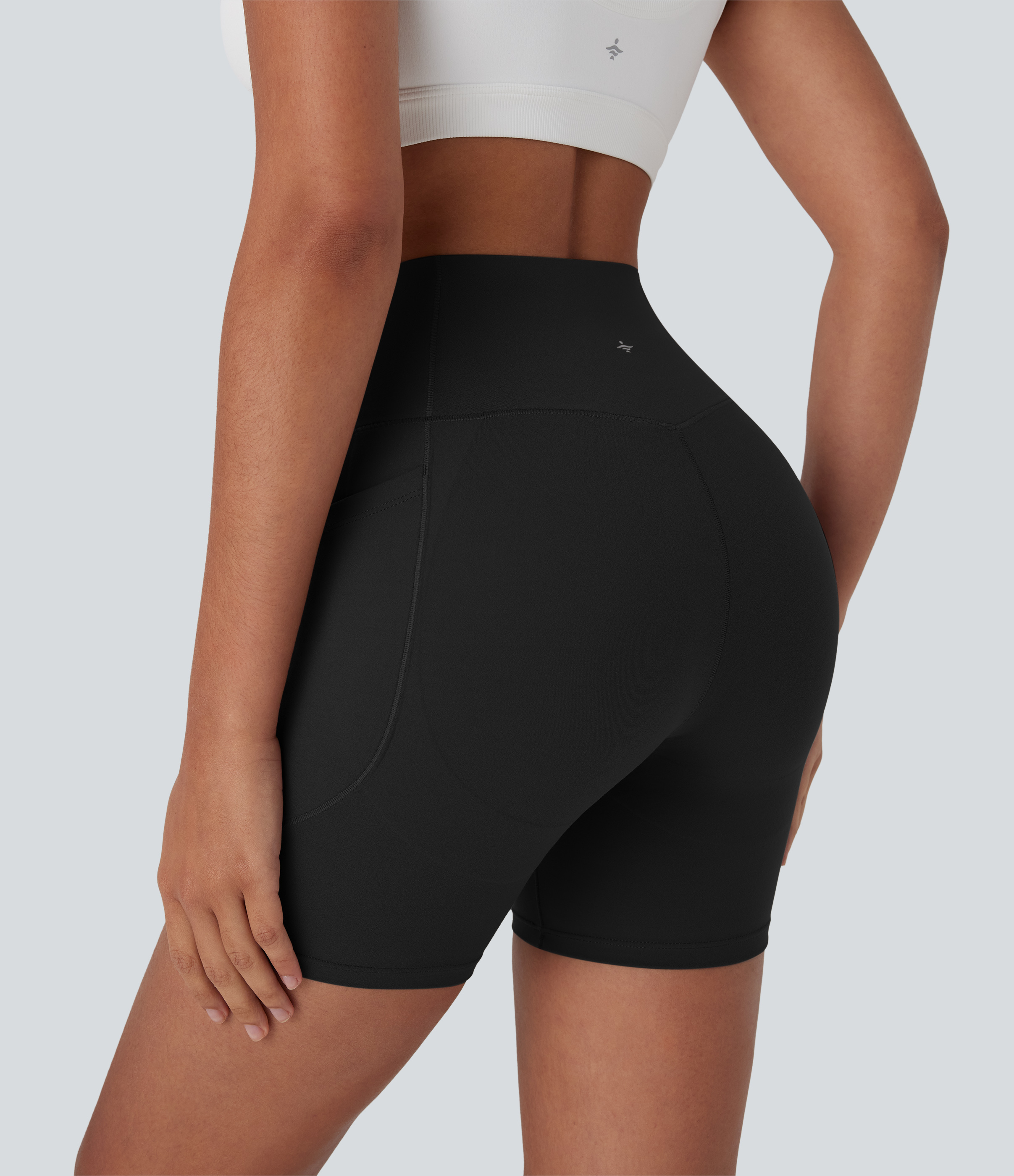 Halara UltraSculptTM High Waisted Crossover Tummy Control Butt Lifting Yoga Biker Shorts 5'' with Pockets