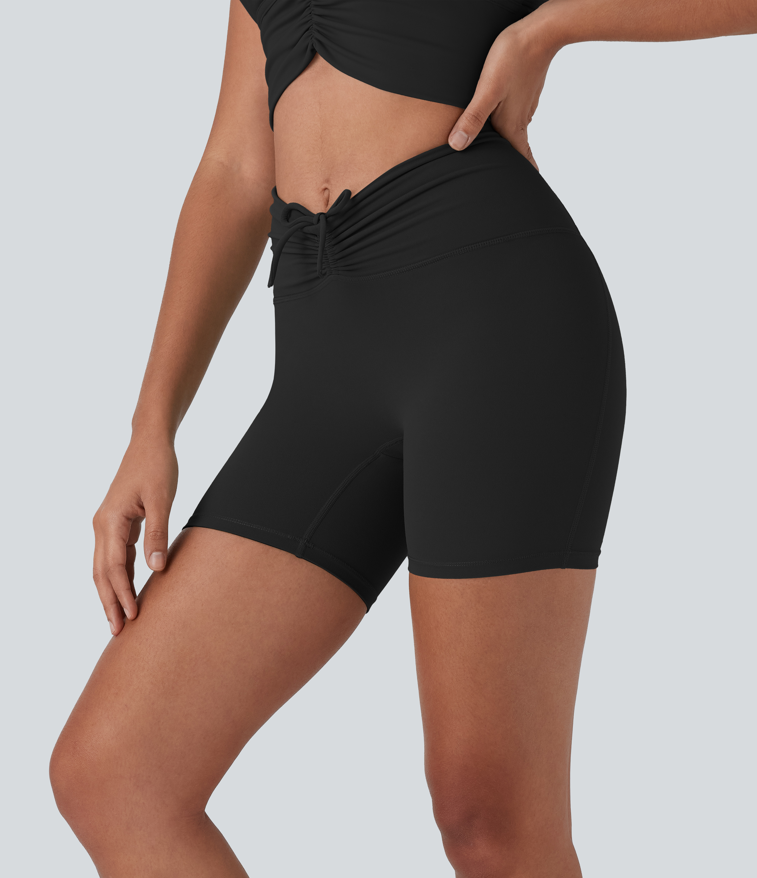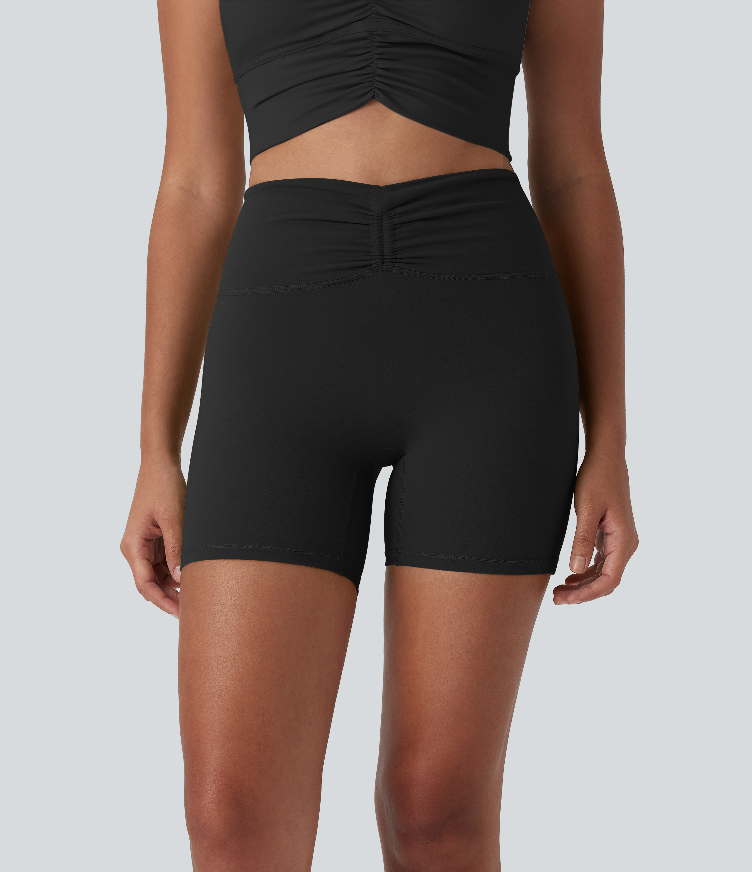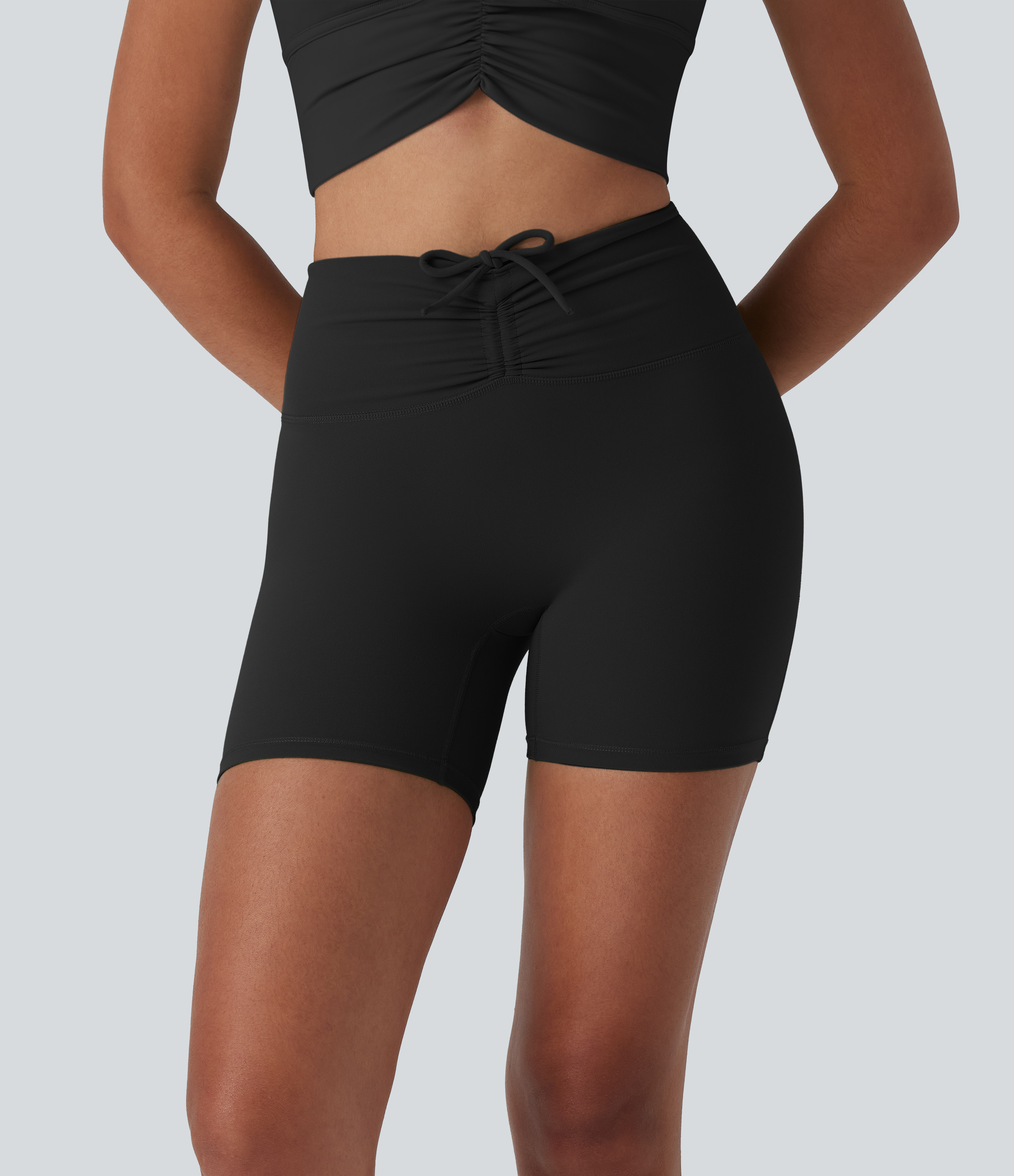 • Halara UltraSculptTM High Waisted Drawstring Ruched Yoga Biker Shorts 5'' with Pocket