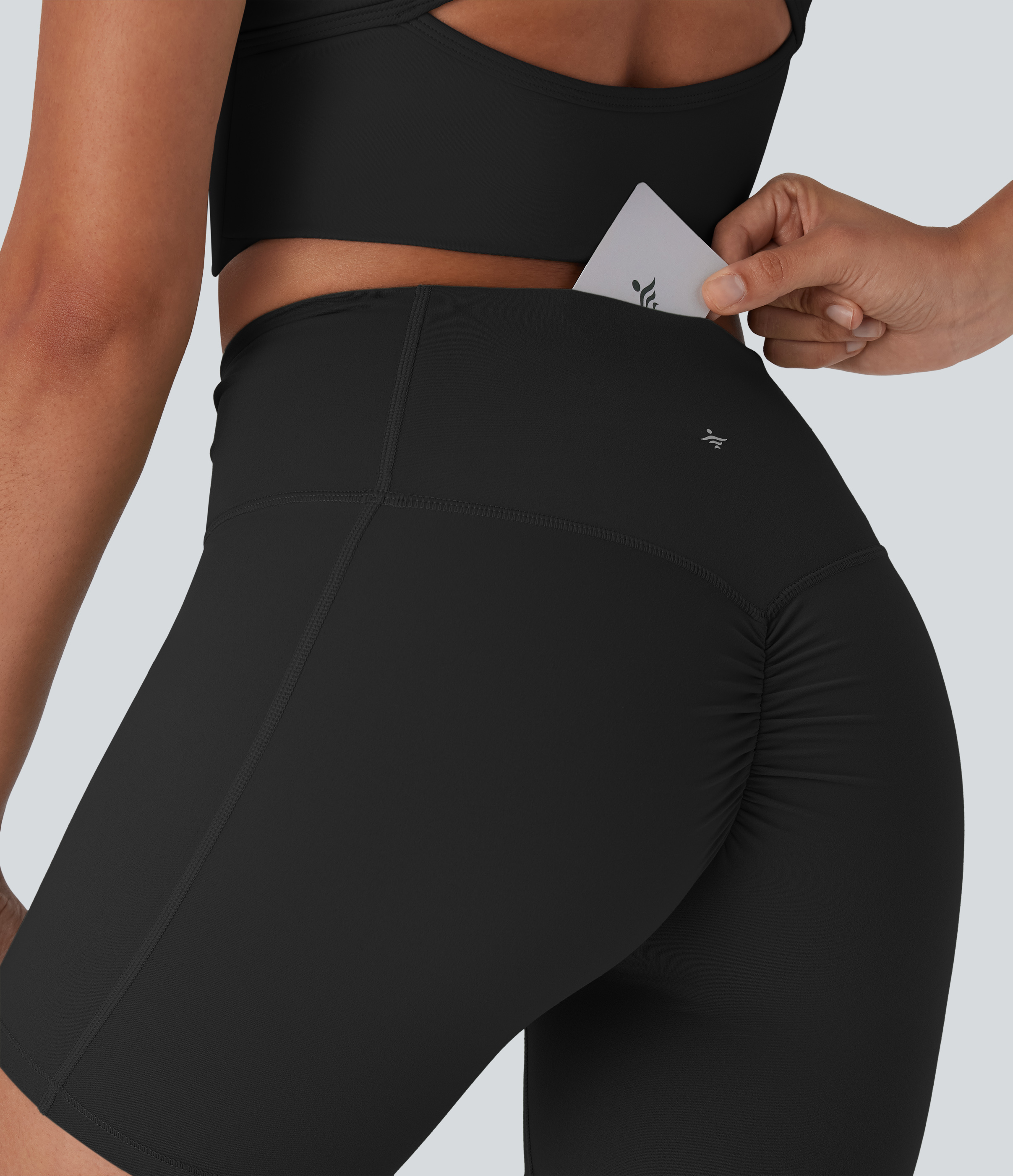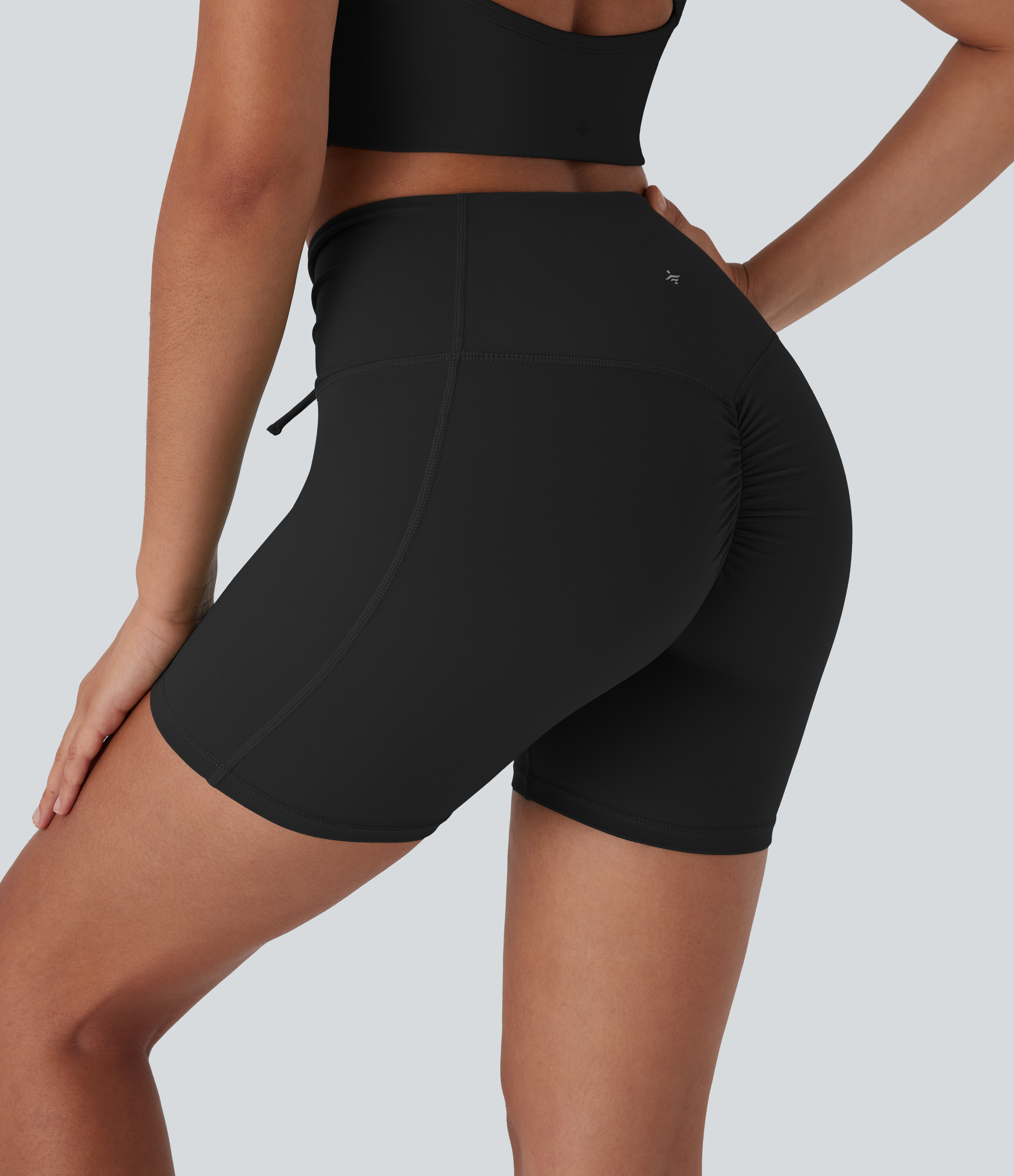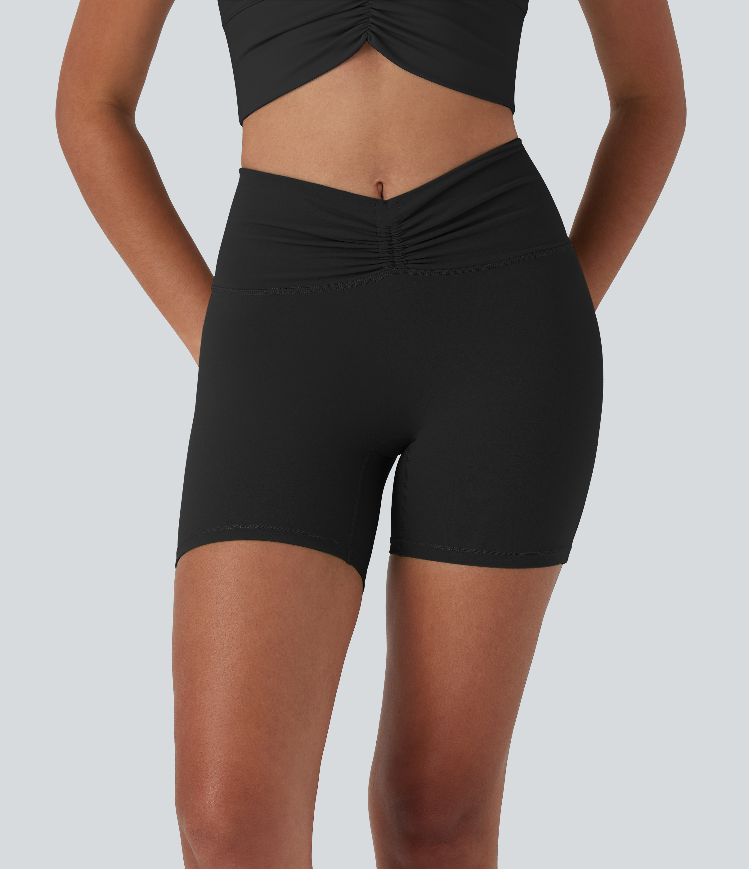 • Halara UltraSculptTM High Waisted Drawstring Ruched Yoga Biker Shorts 5'' with Pocket