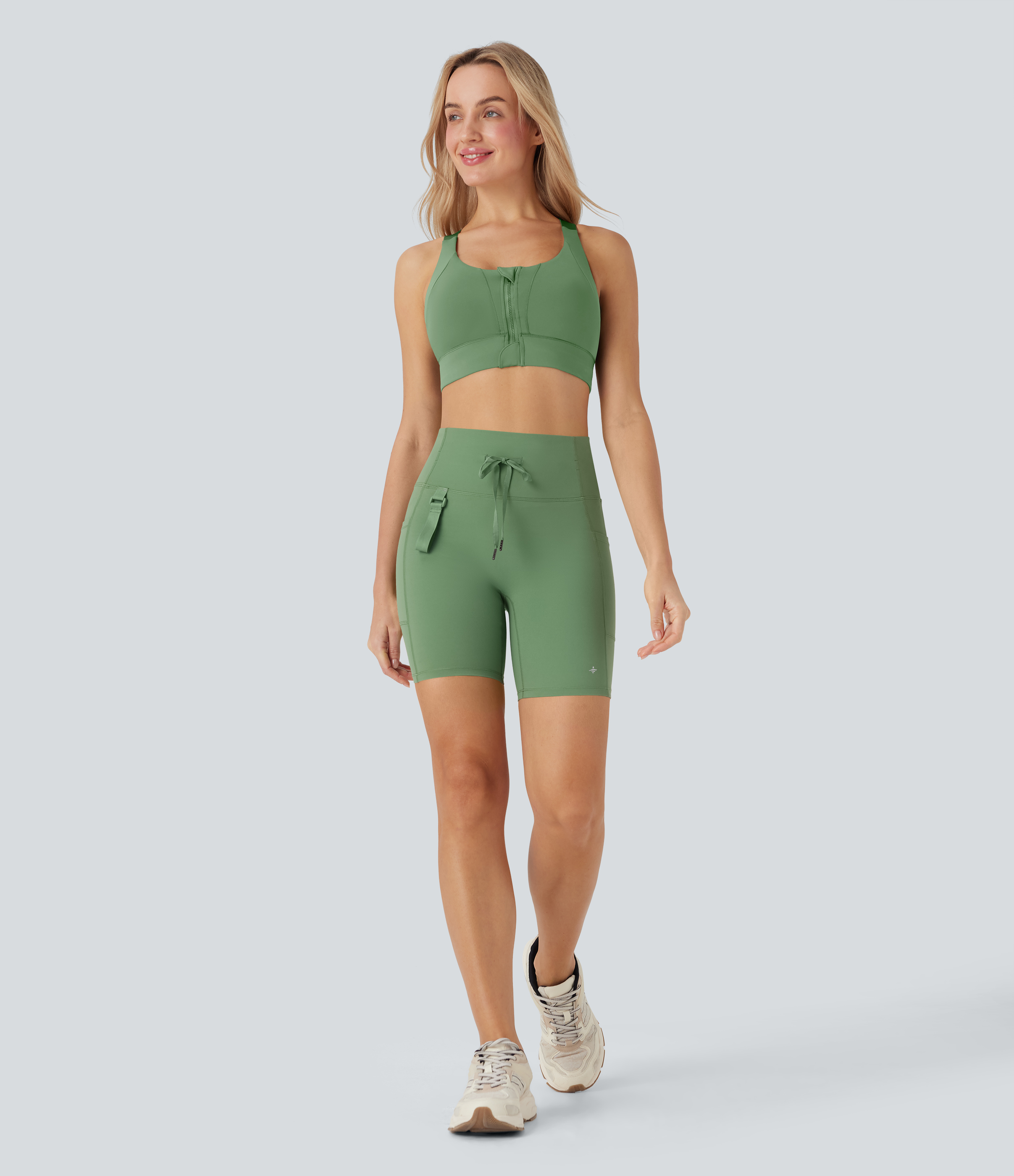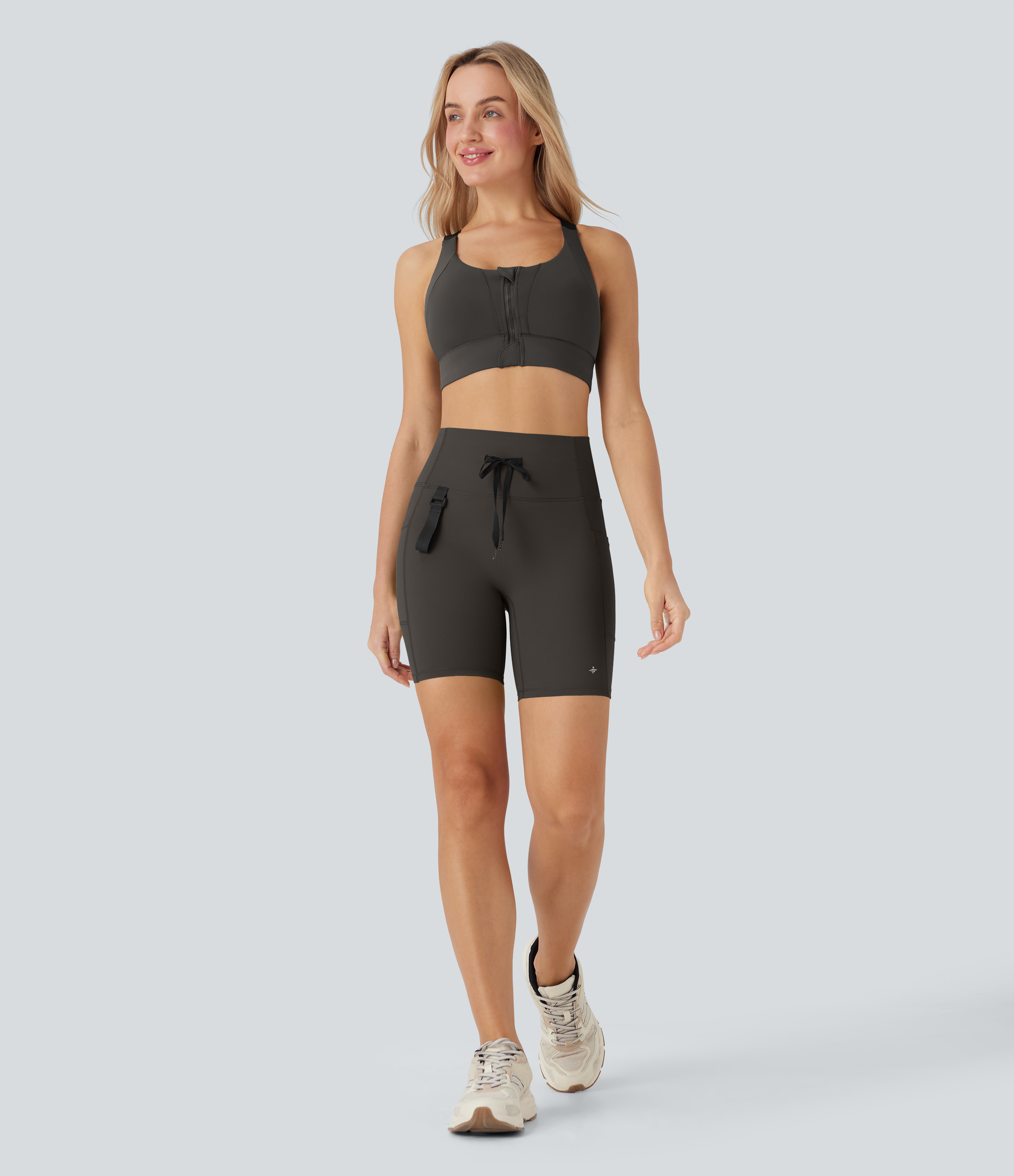 Halara UltraSculptTM SoCinched High Waisted Butt Lifting Tummy Control Loop Running Biker Shorts 7'' with Pockets