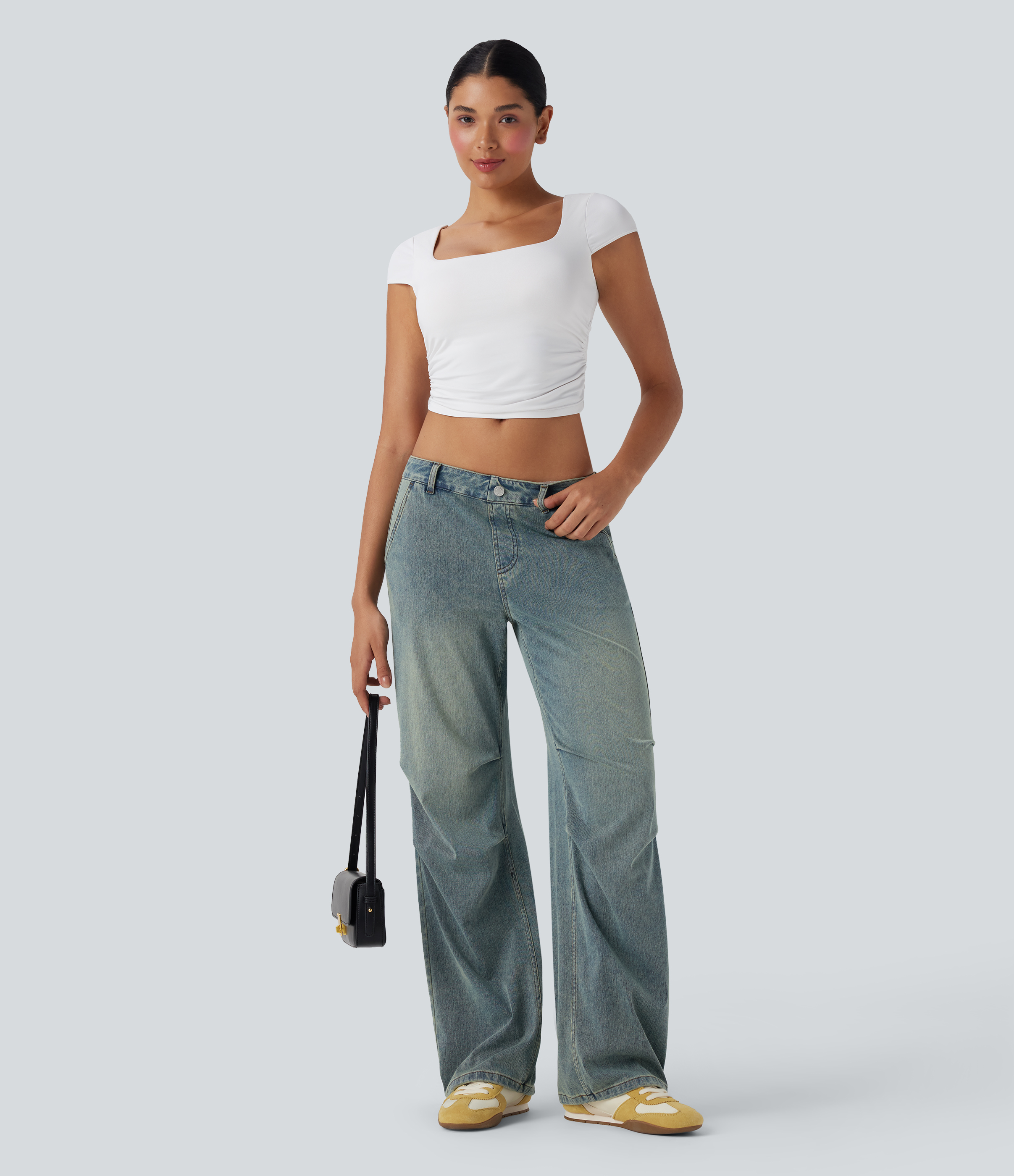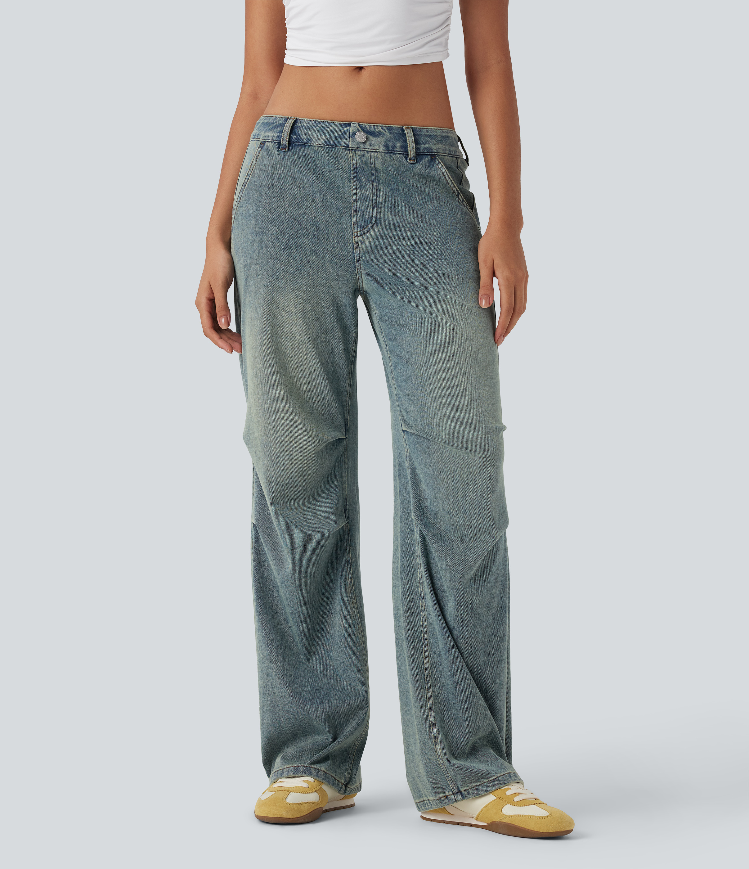 • Halara FlexTM Low Rise Adjustable Drawcord Stretchy Knit Casual Parachute Jeans with Multiple Pockets