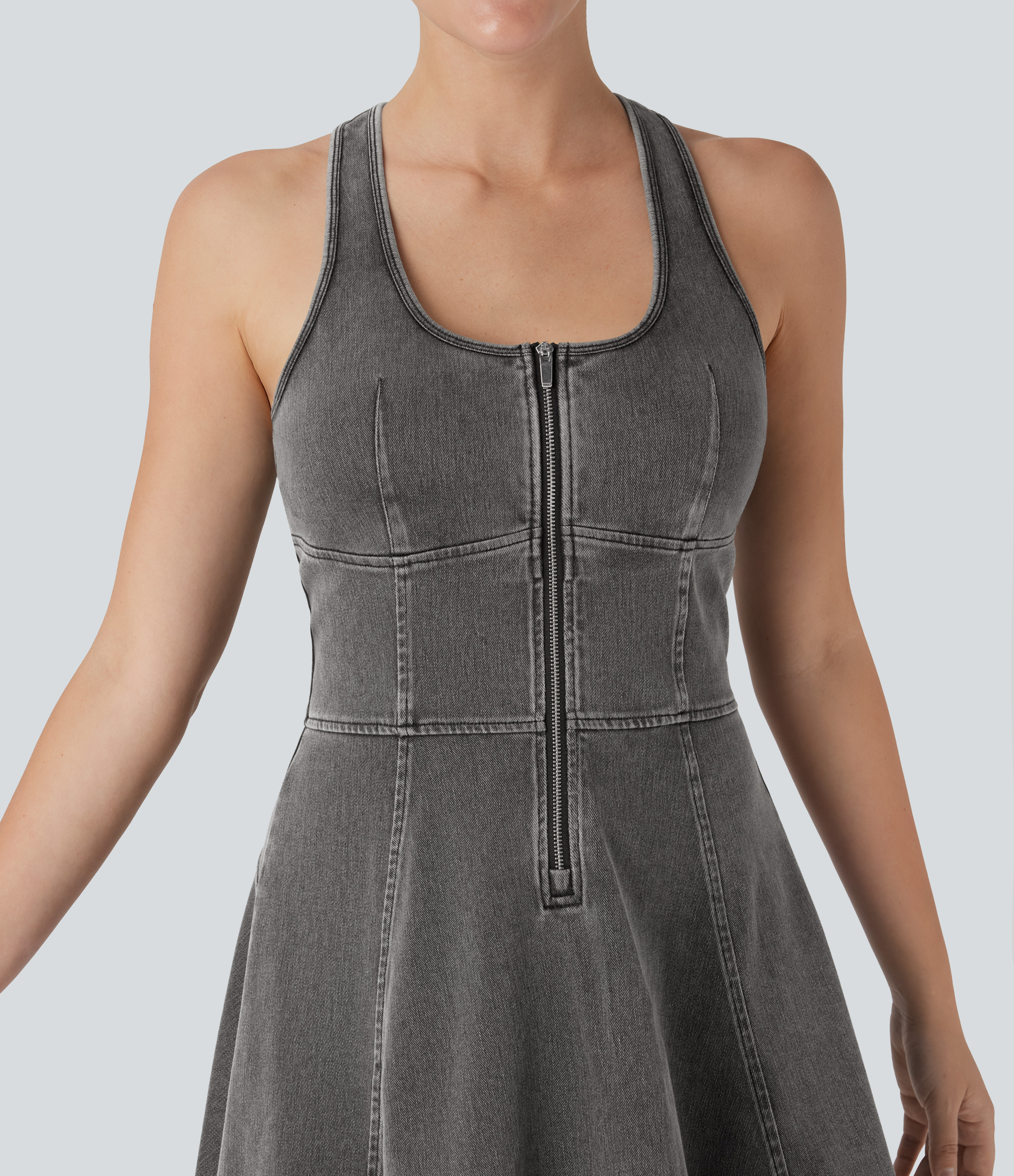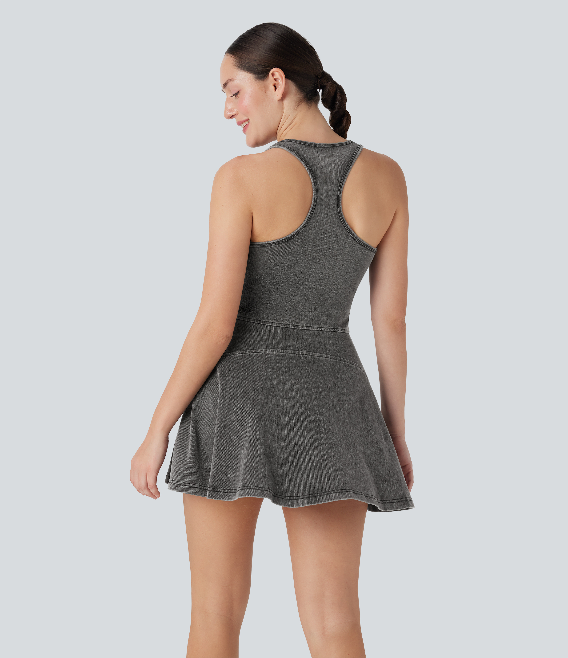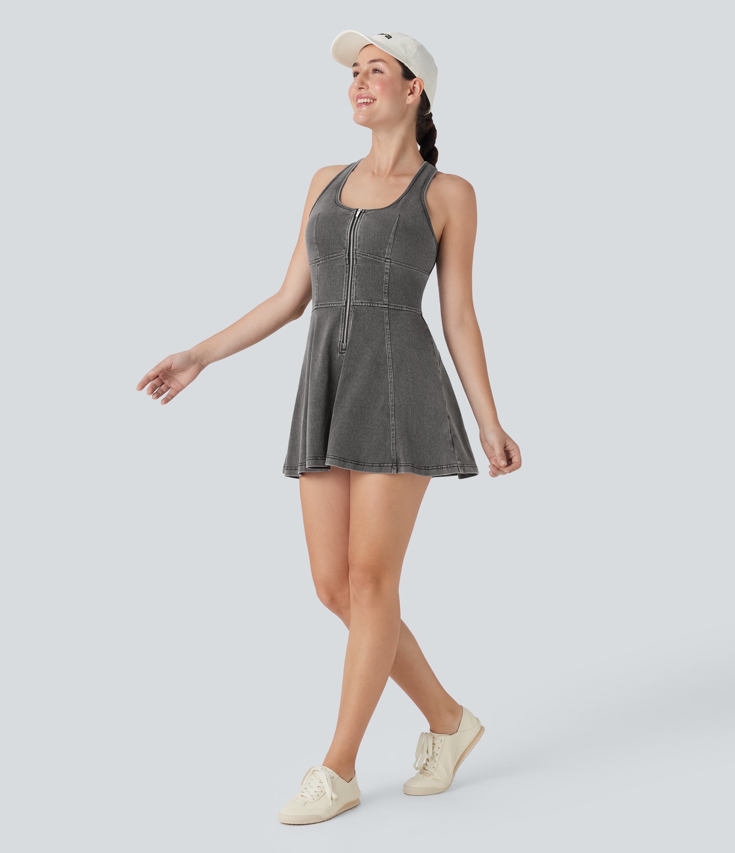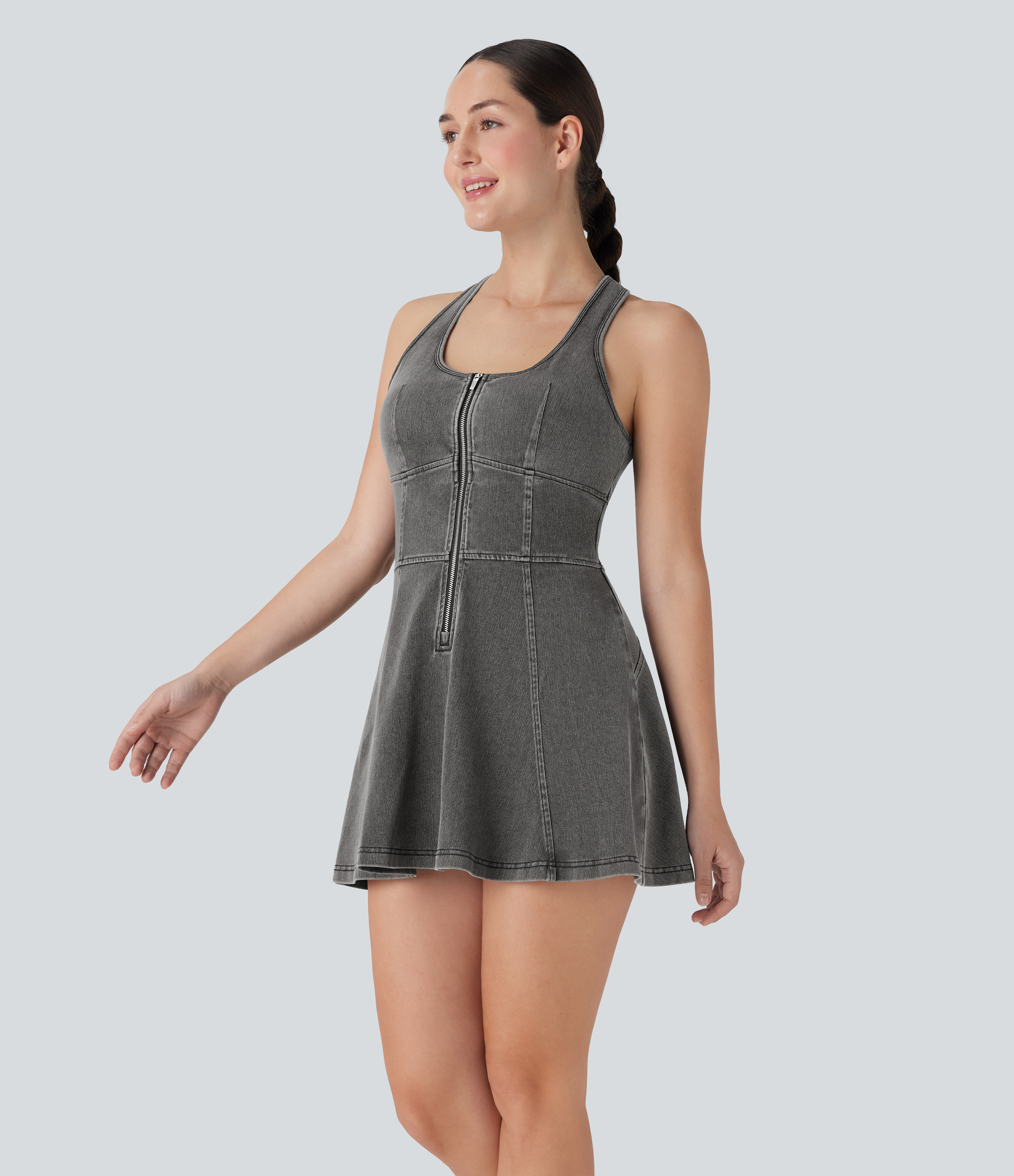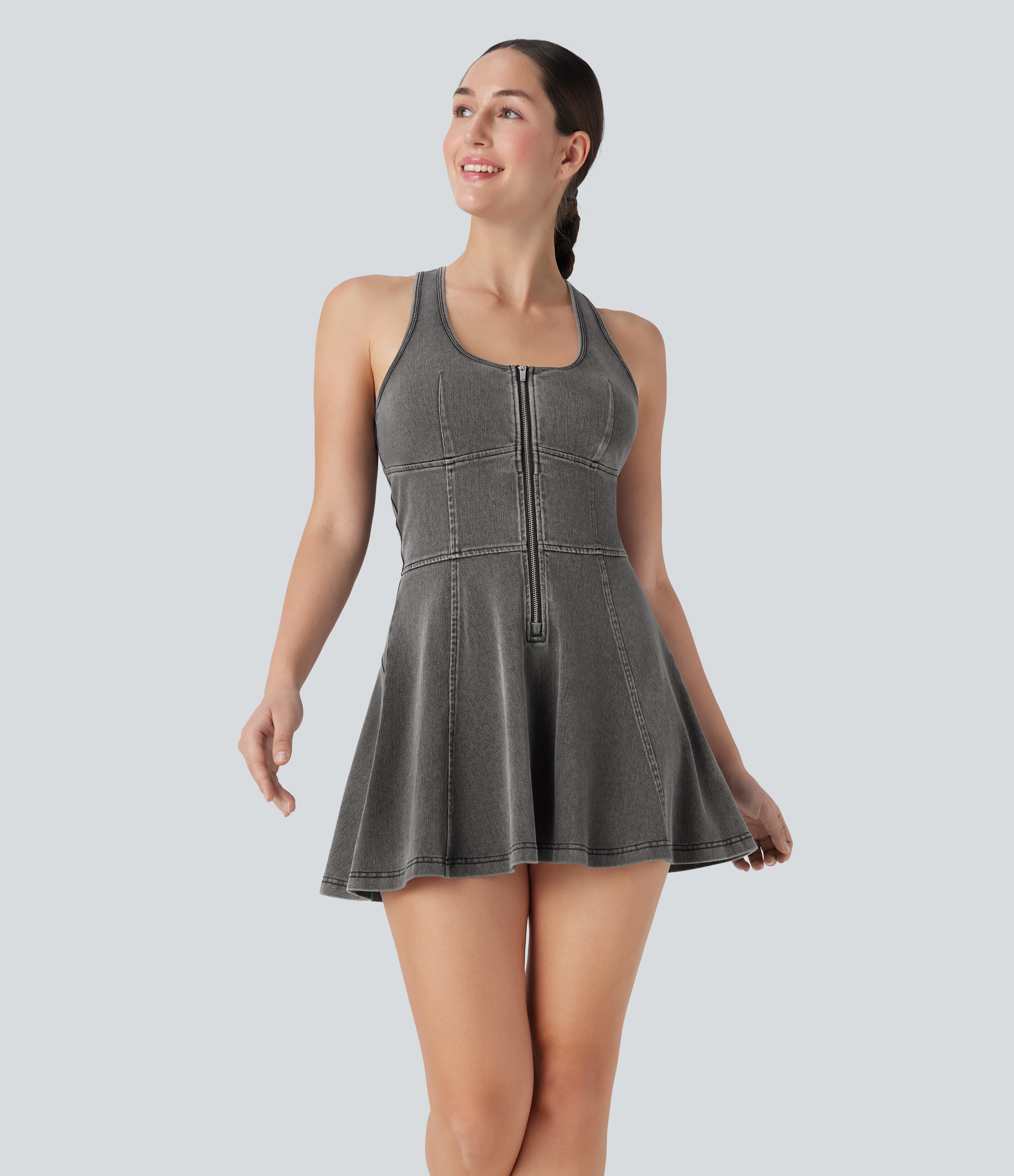 - Mini-length design that hits right at the thigh.