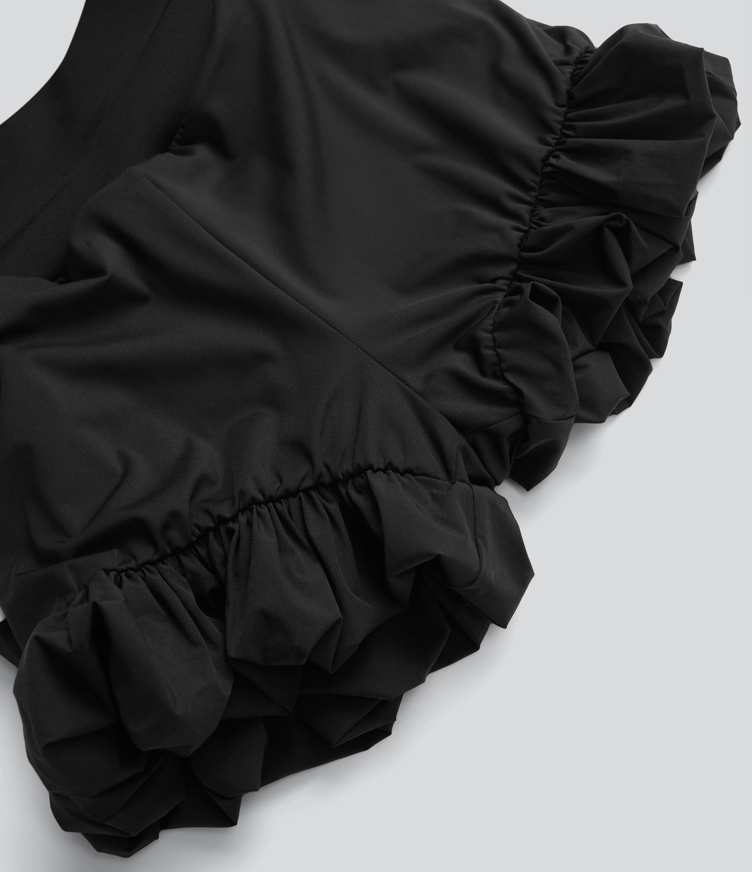 - Four-way stretch fabric offers ease of movement and durable wearability.