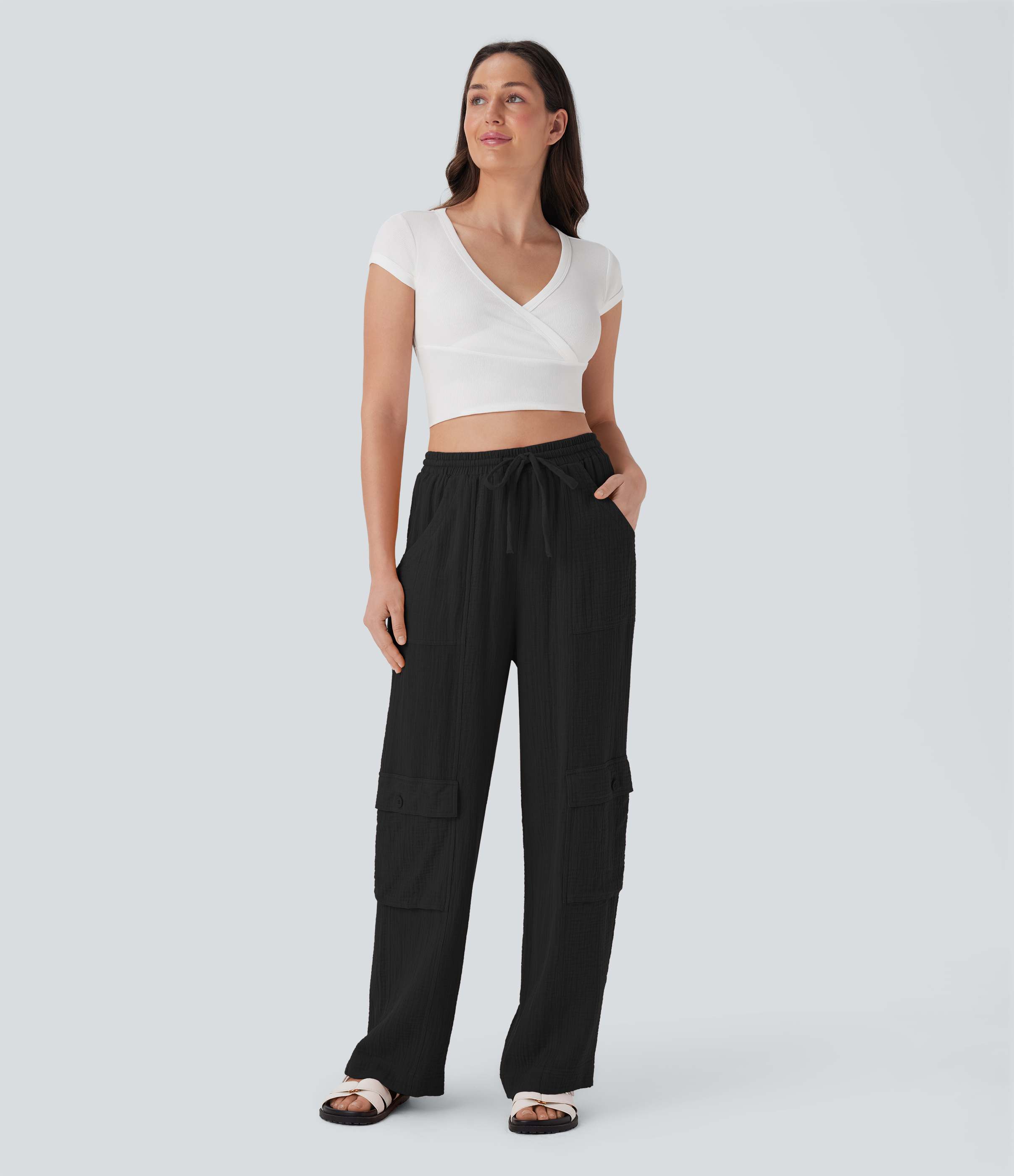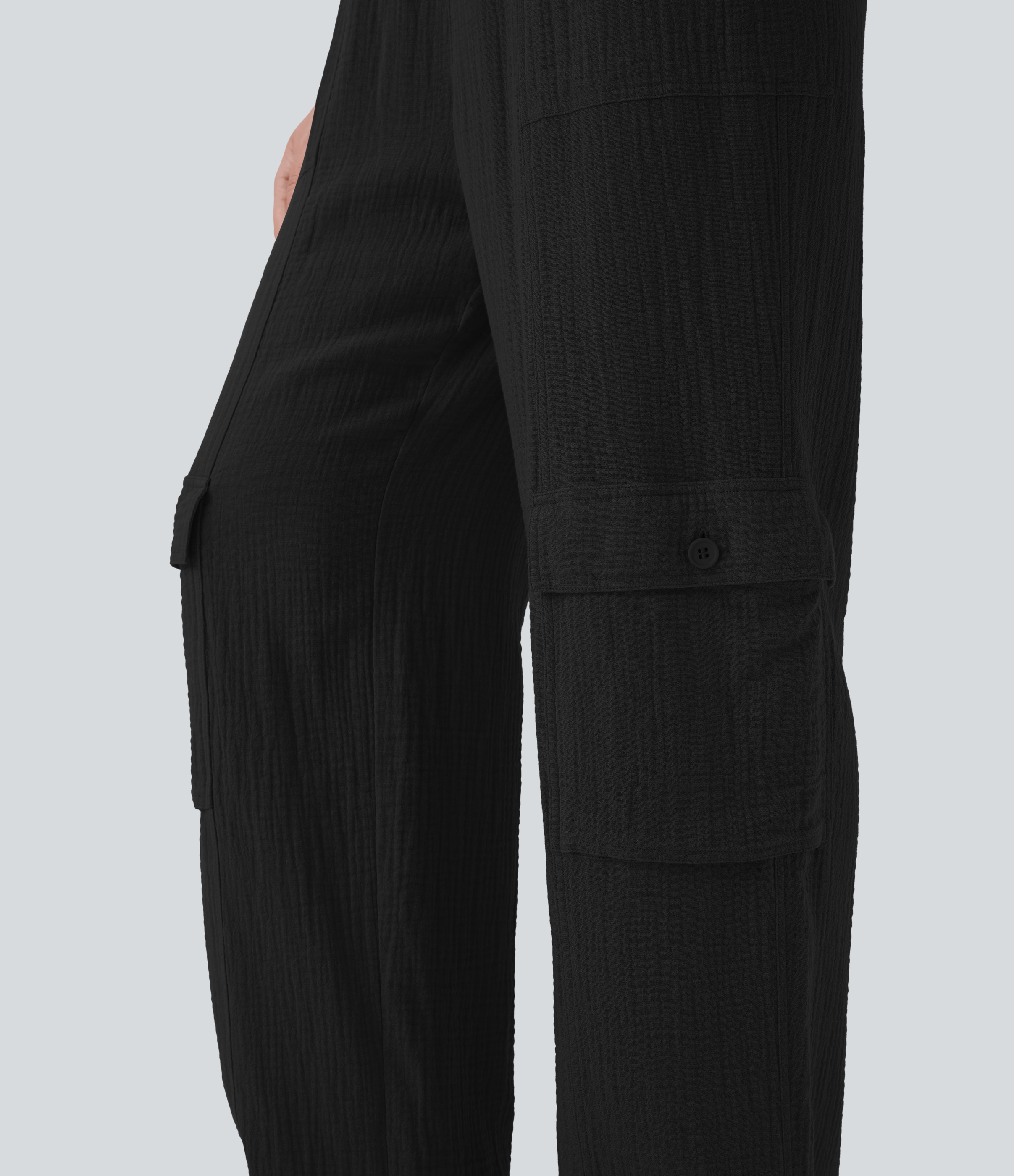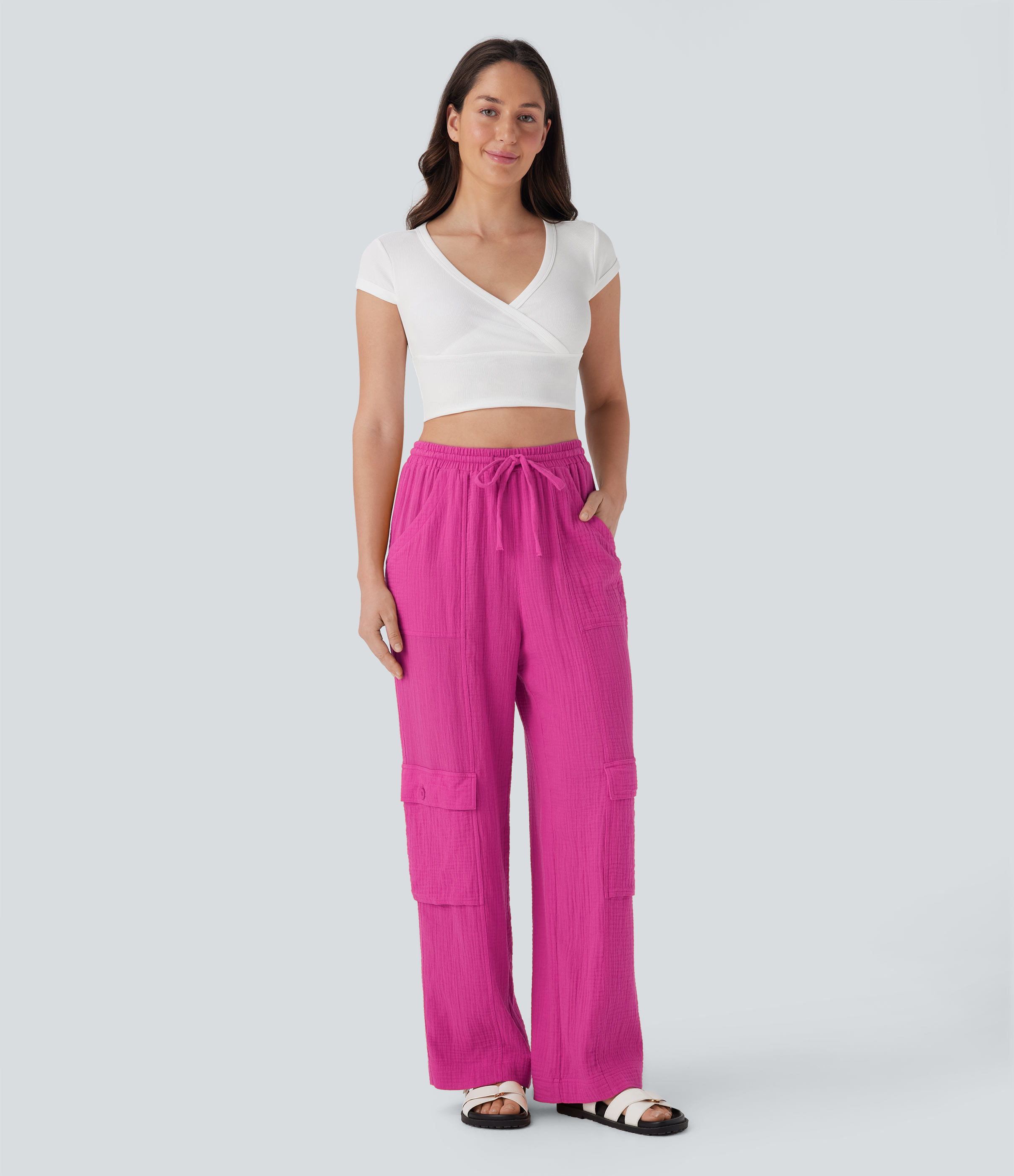 - Wide leg style gives a timeless look, while providing comfortable wear.