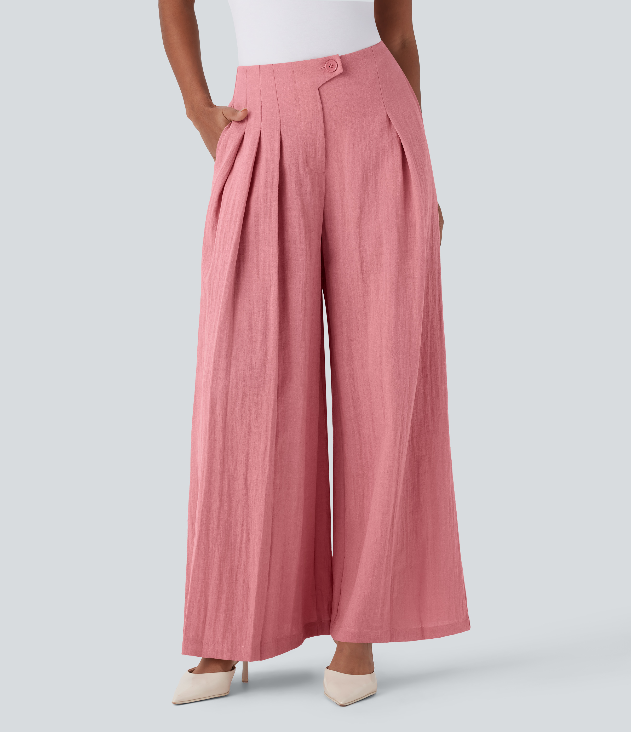- Wide leg style gives a timeless look, while providing comfortable wear.