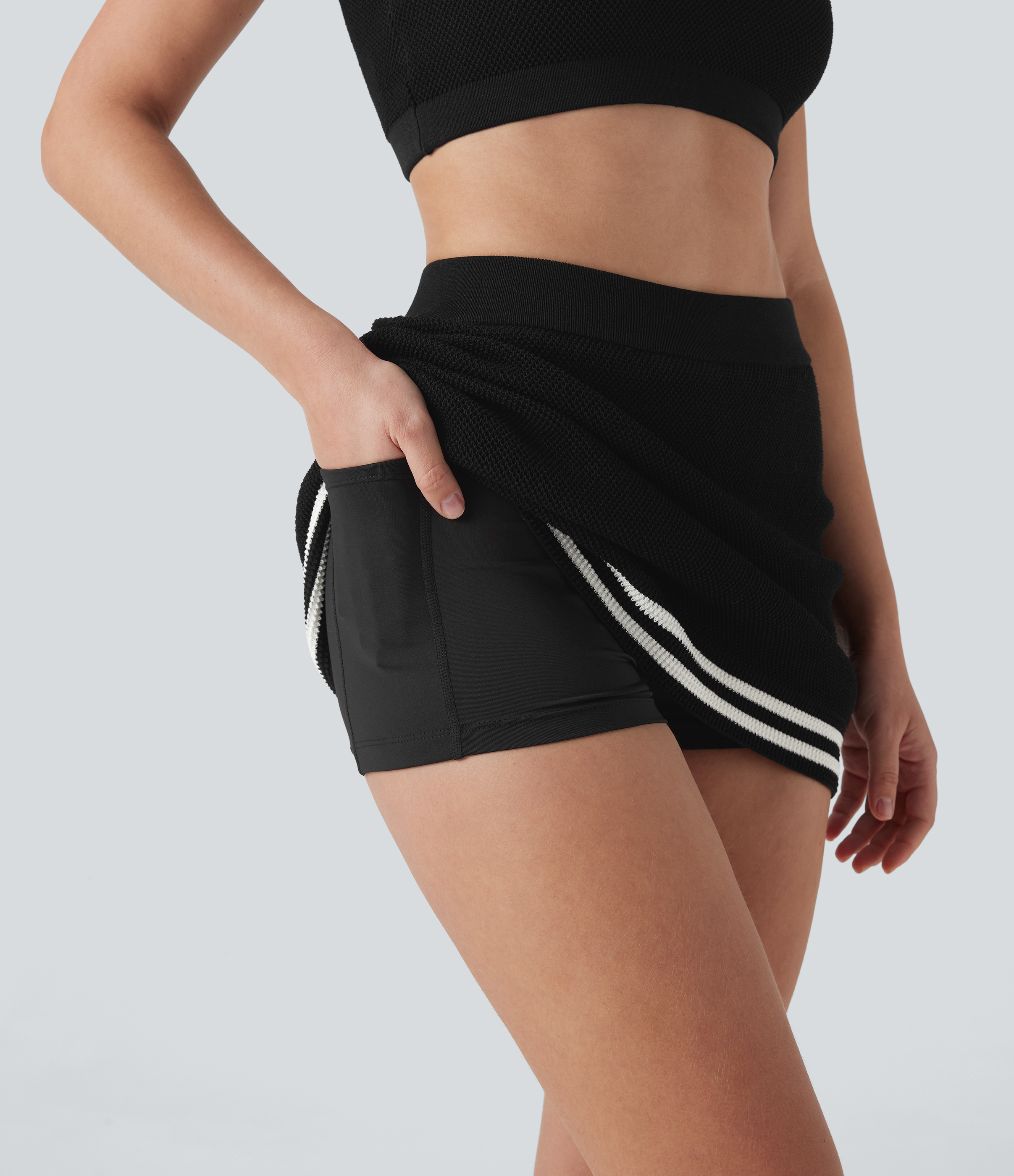 - Mini-length design that hits right at the thigh.