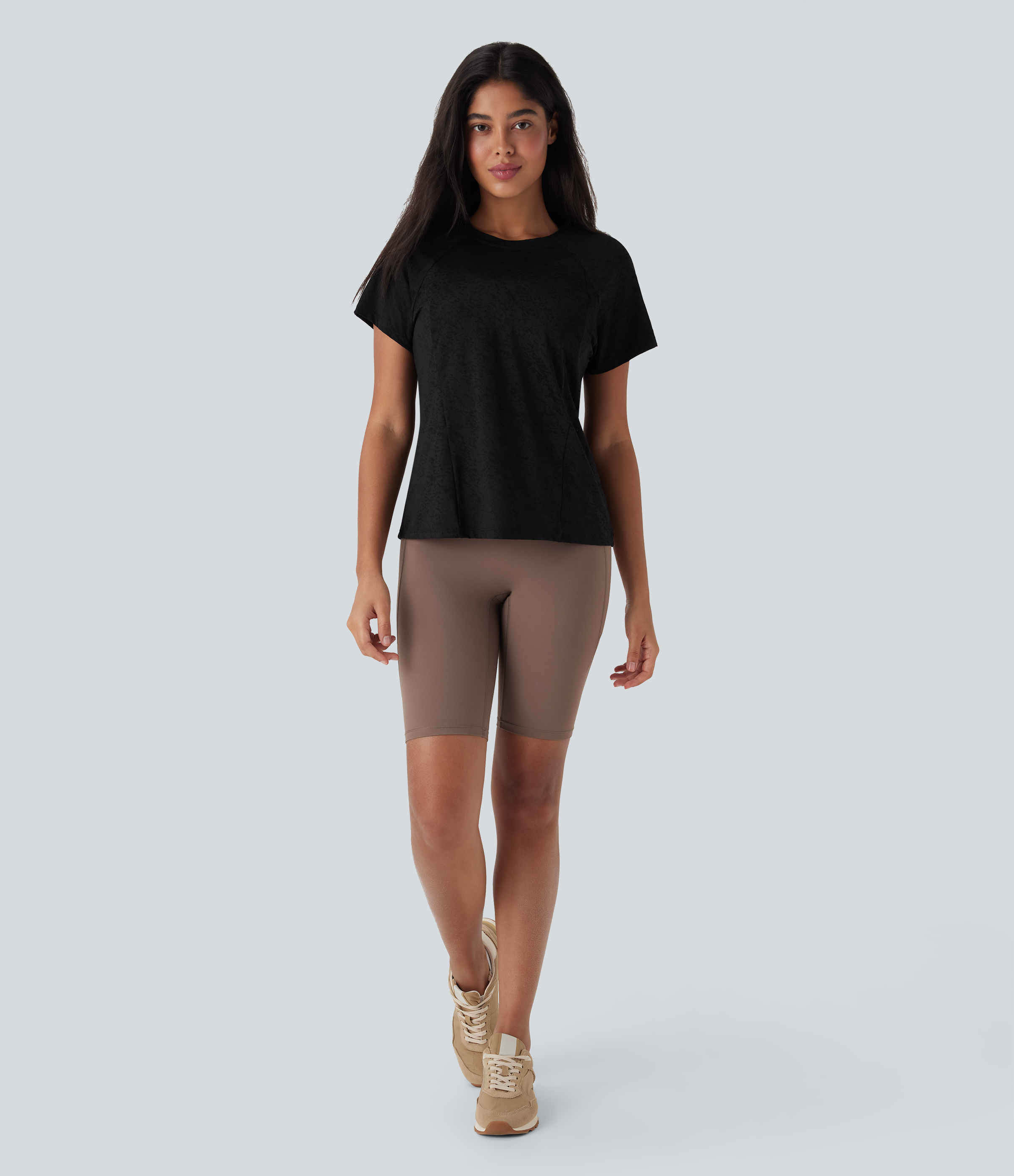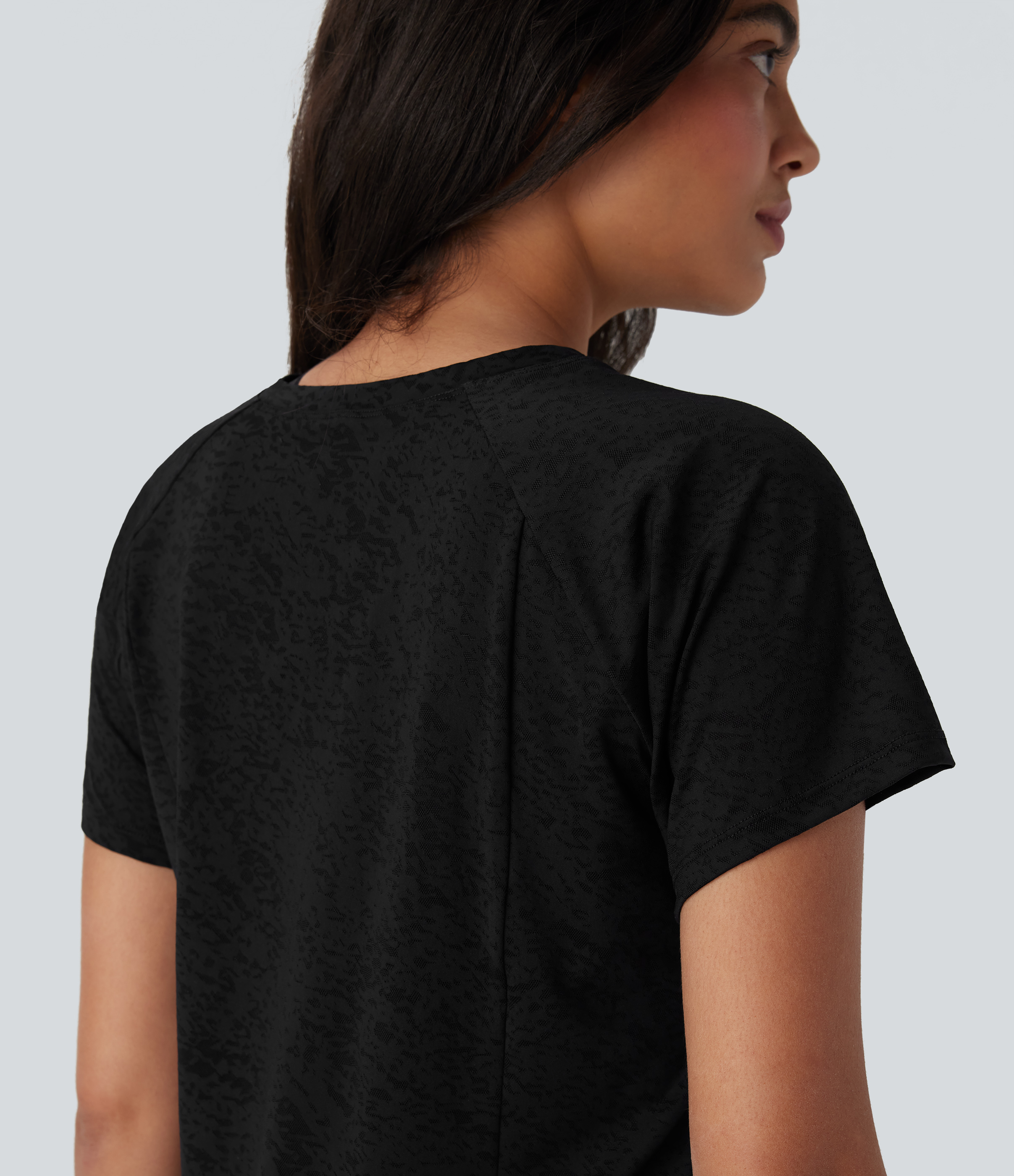Jacquard Round Neck Raglan Sleeve Yoga Sports Top