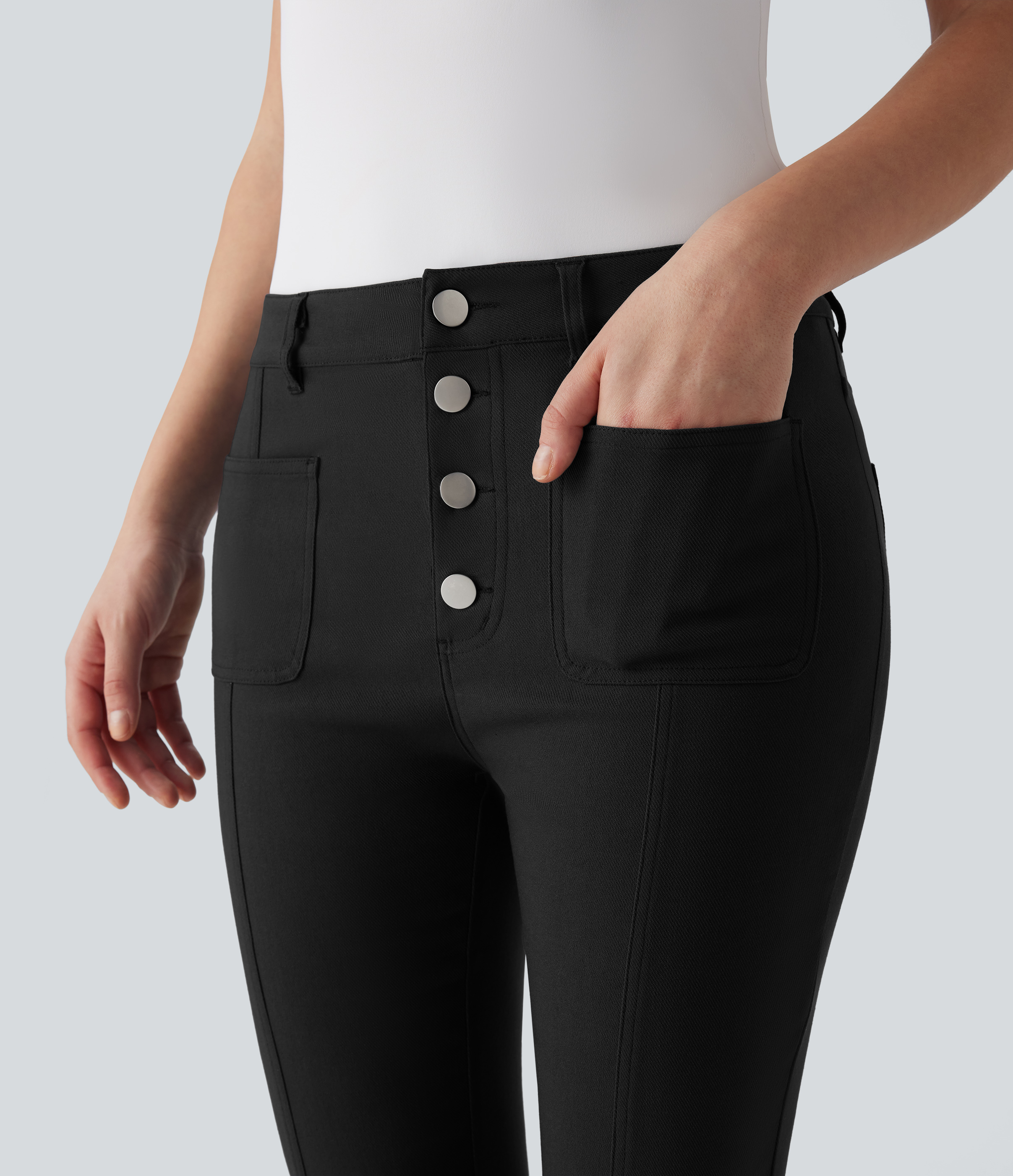 - Slight flare design to create a leg-extending silhouette, for a streamlined look.