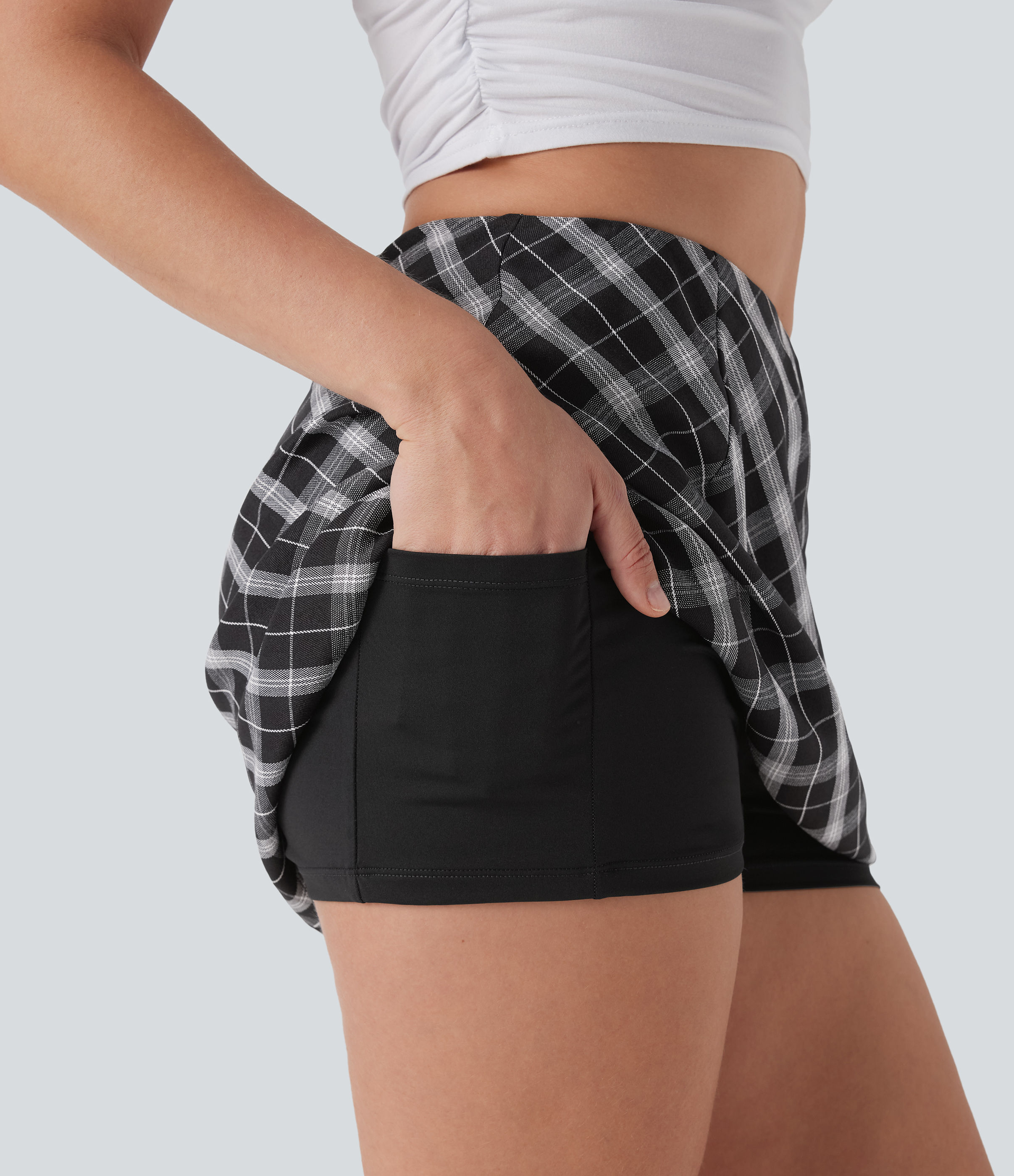 - Plaid patterning in multi-colored tartan design for a bold and versatile look.