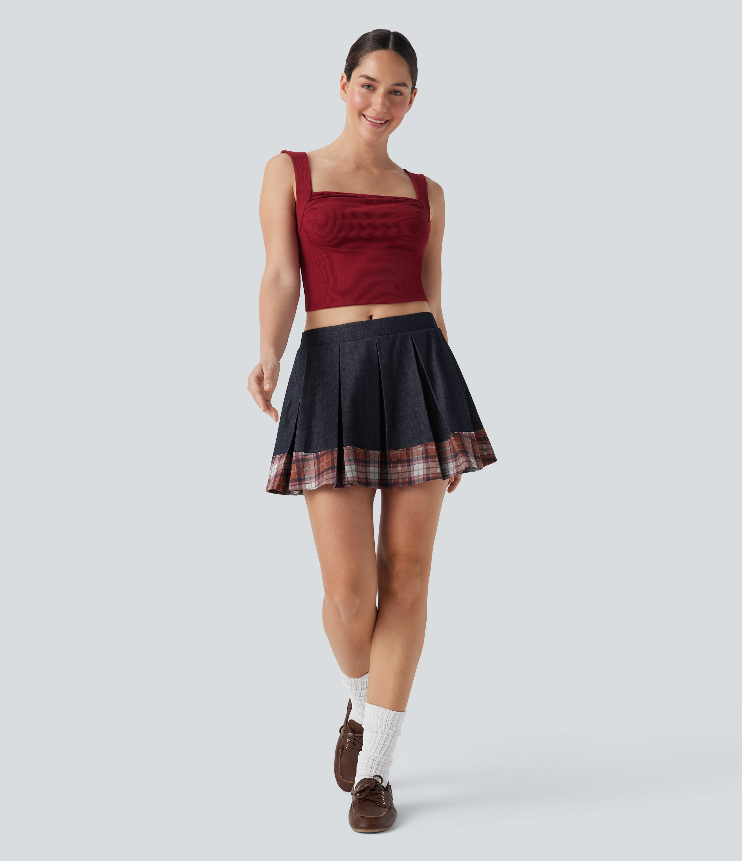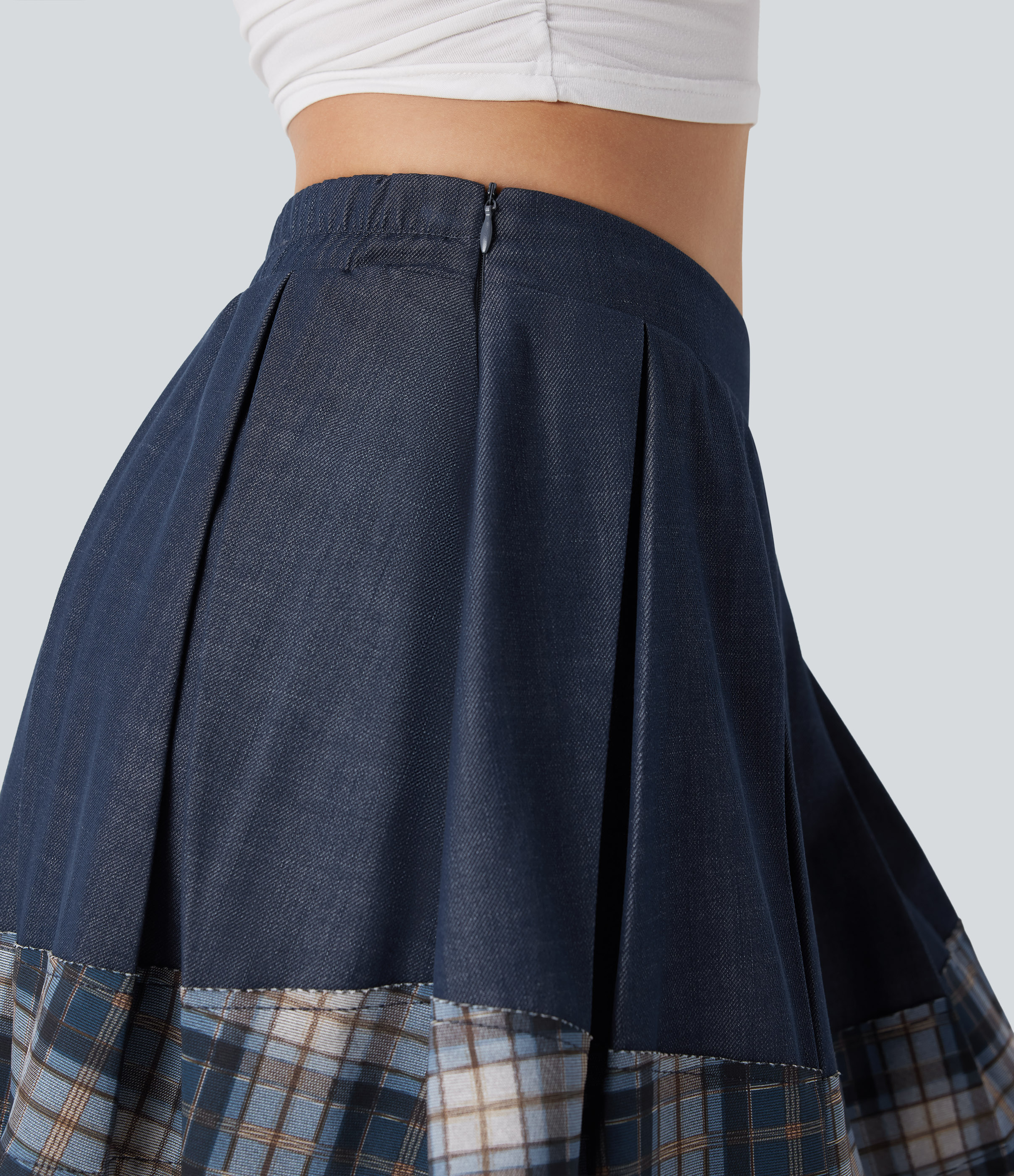 - Plaid patterning in multi-colored tartan design for a bold and versatile look.