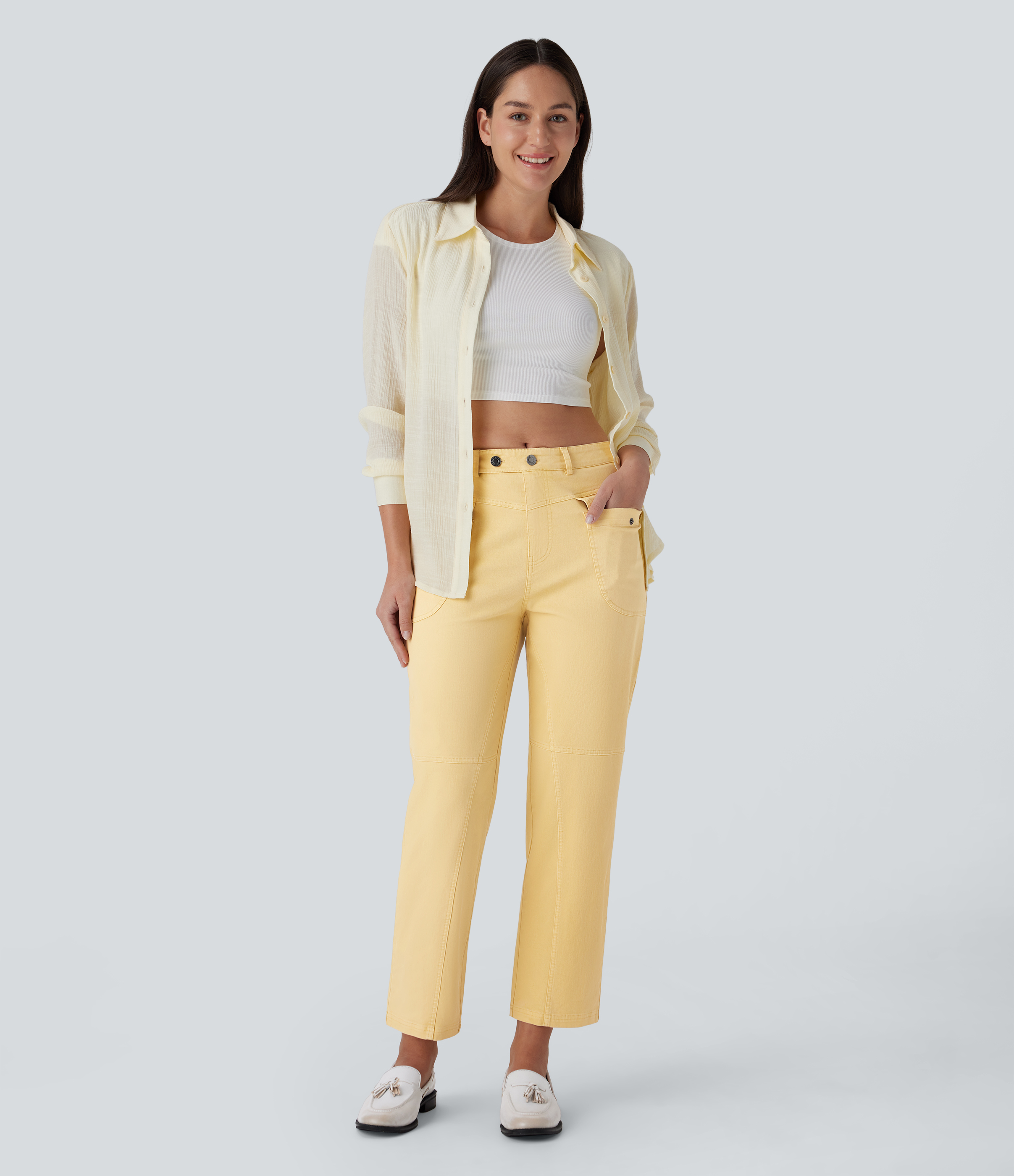 - Straight-leg designs for that slim-looking, elongated figure.