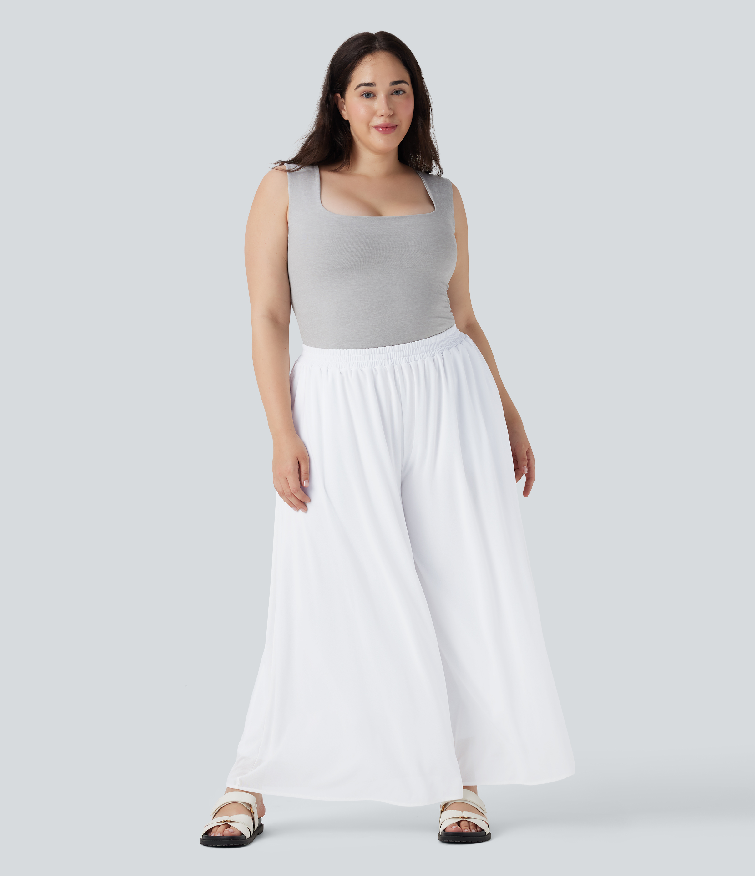 - Wide leg style gives a timeless look, while providing comfortable wear.