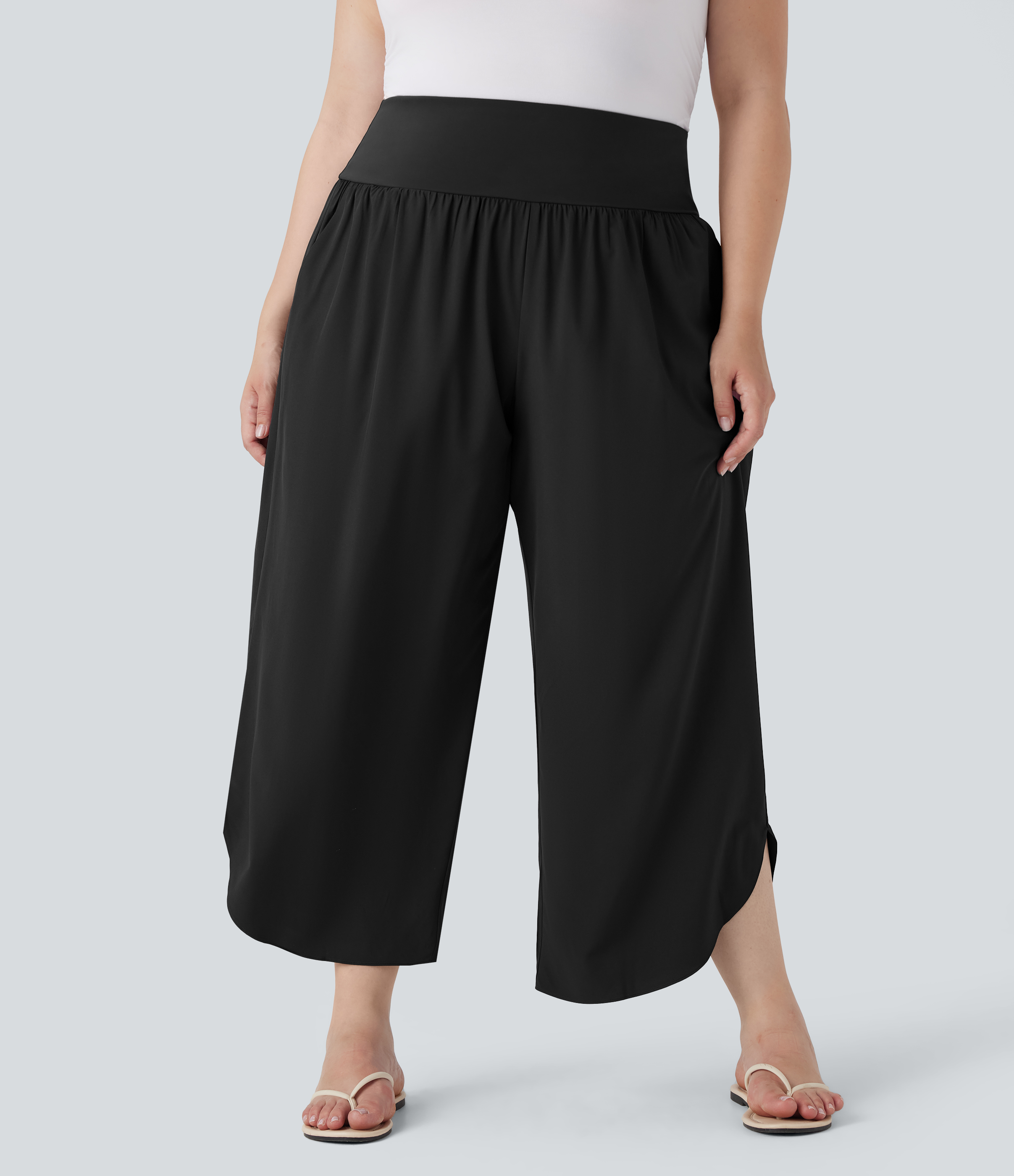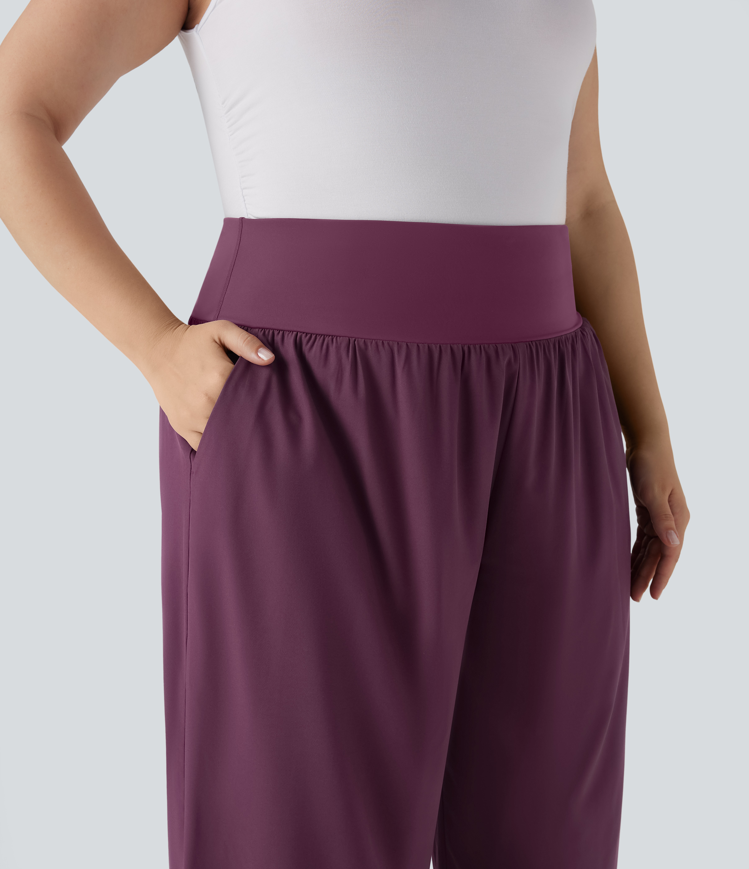 • Plus Size BreezefulTM SoCinched High Waisted Tummy Control Hem Quick Dry Pants with Pockets