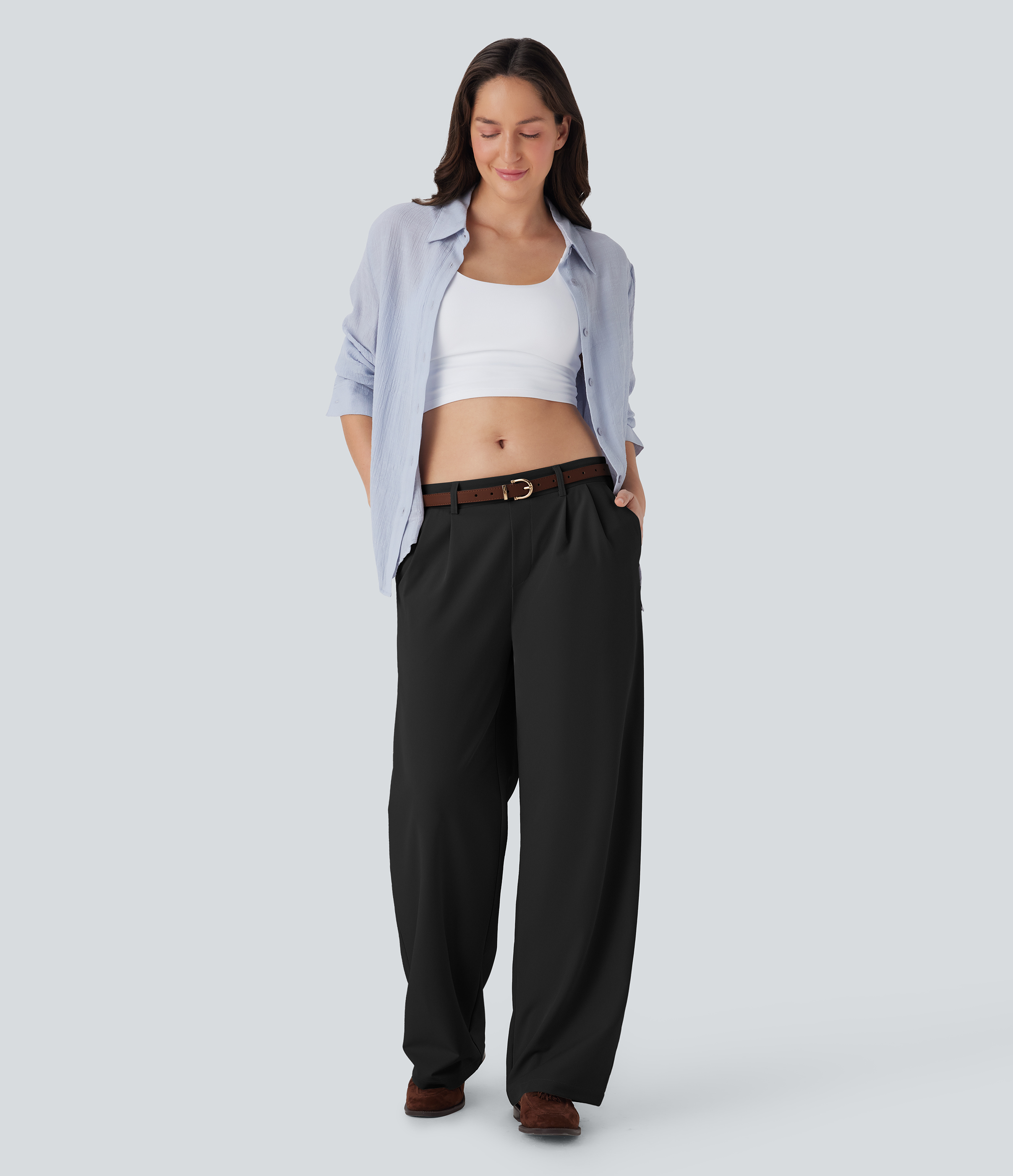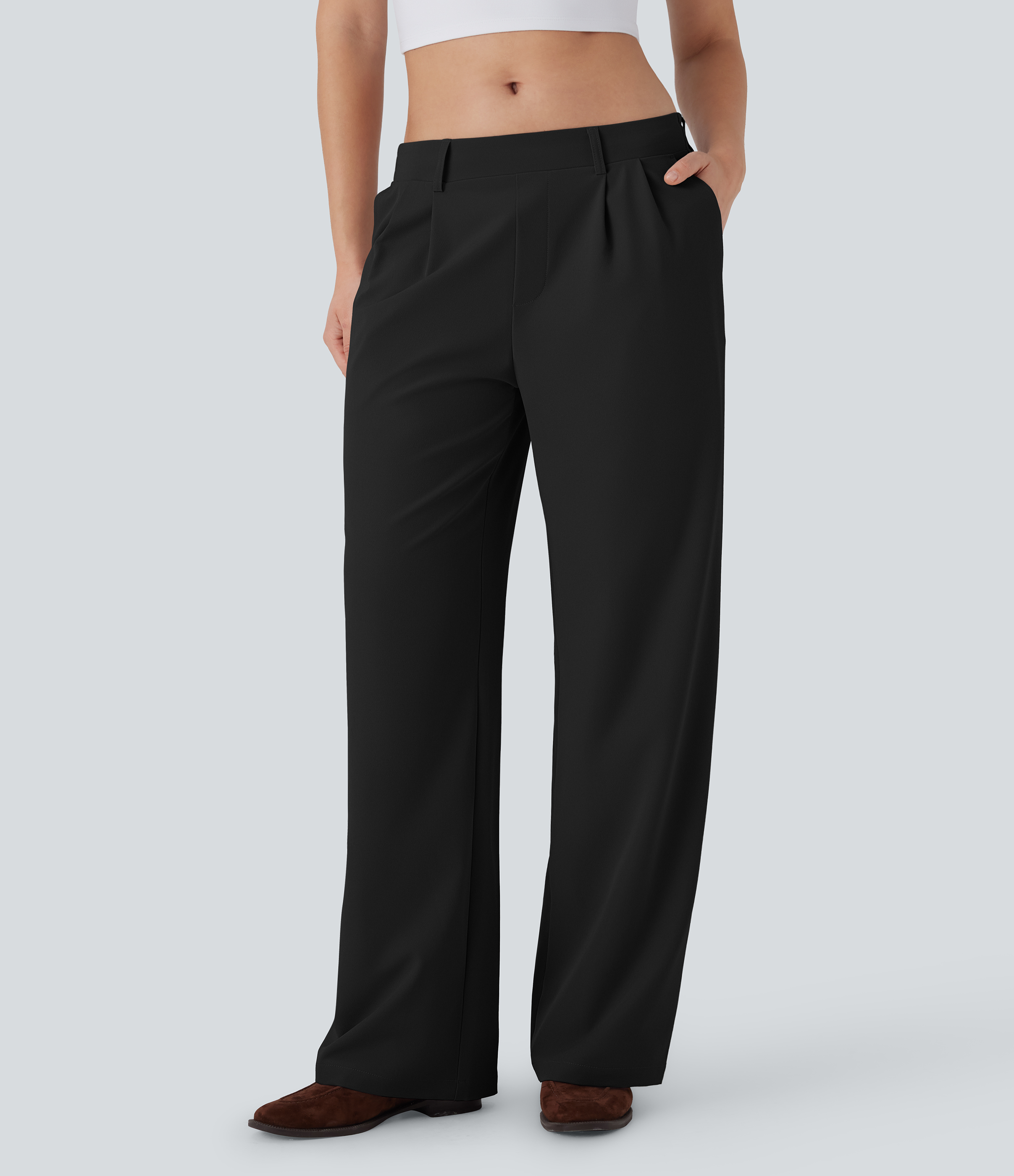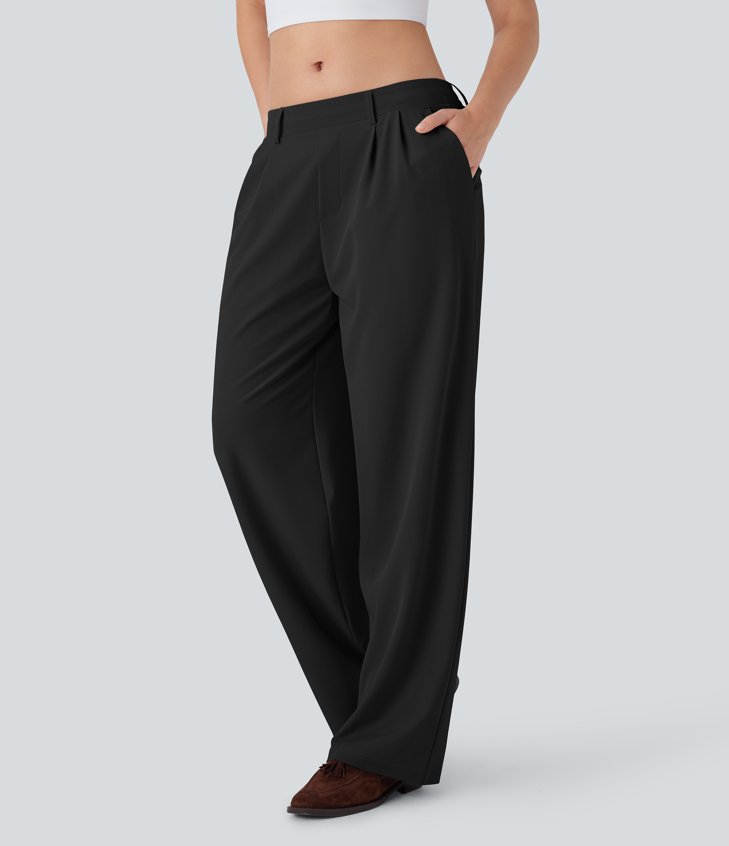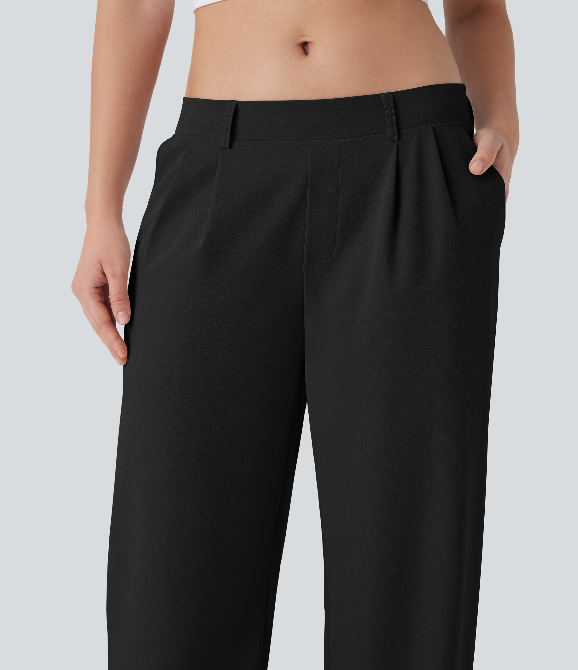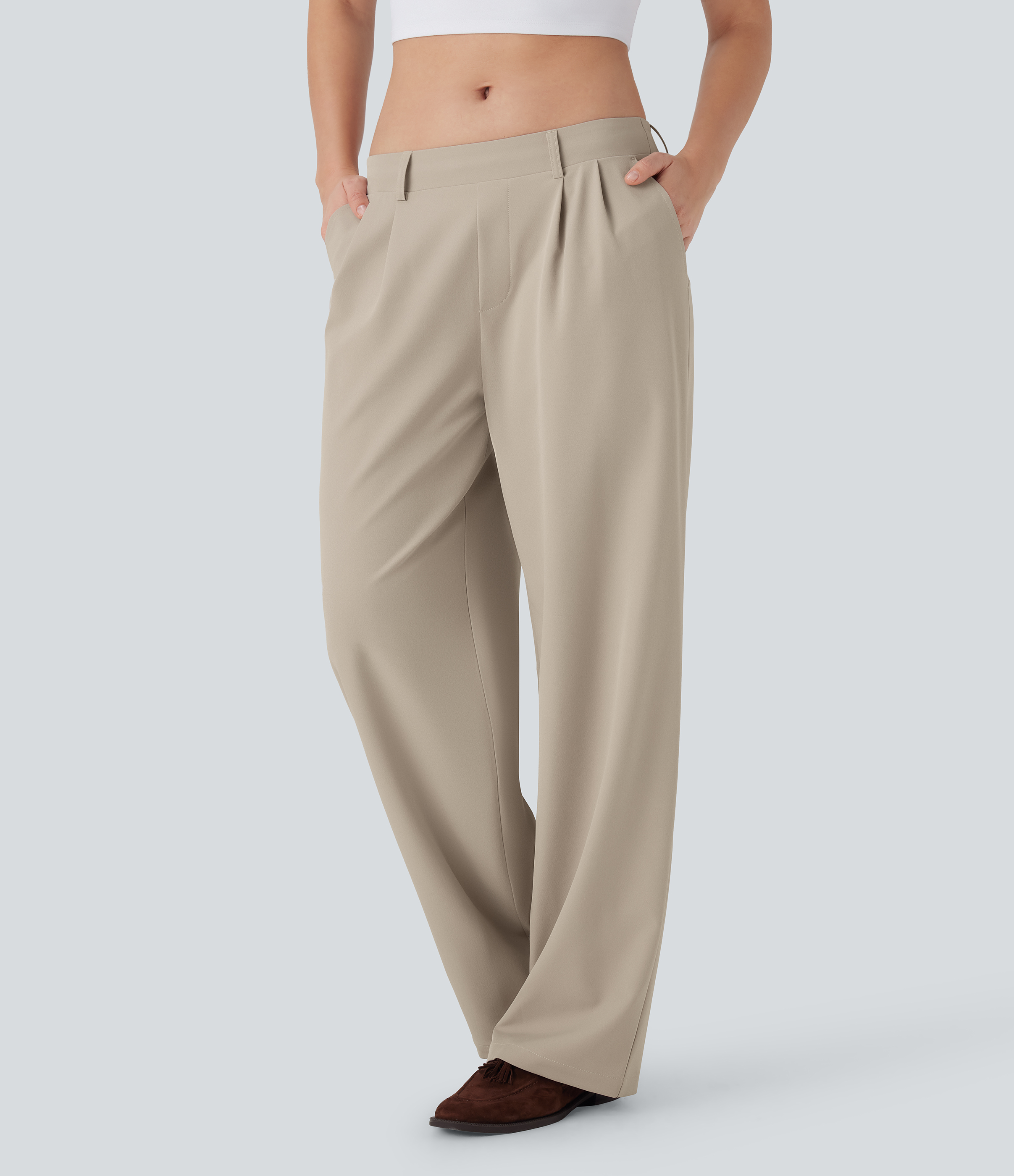 Quick Dry Low Rise Inside Drawstring Straight Leg Casual Pants with Pockets-UPF 40+