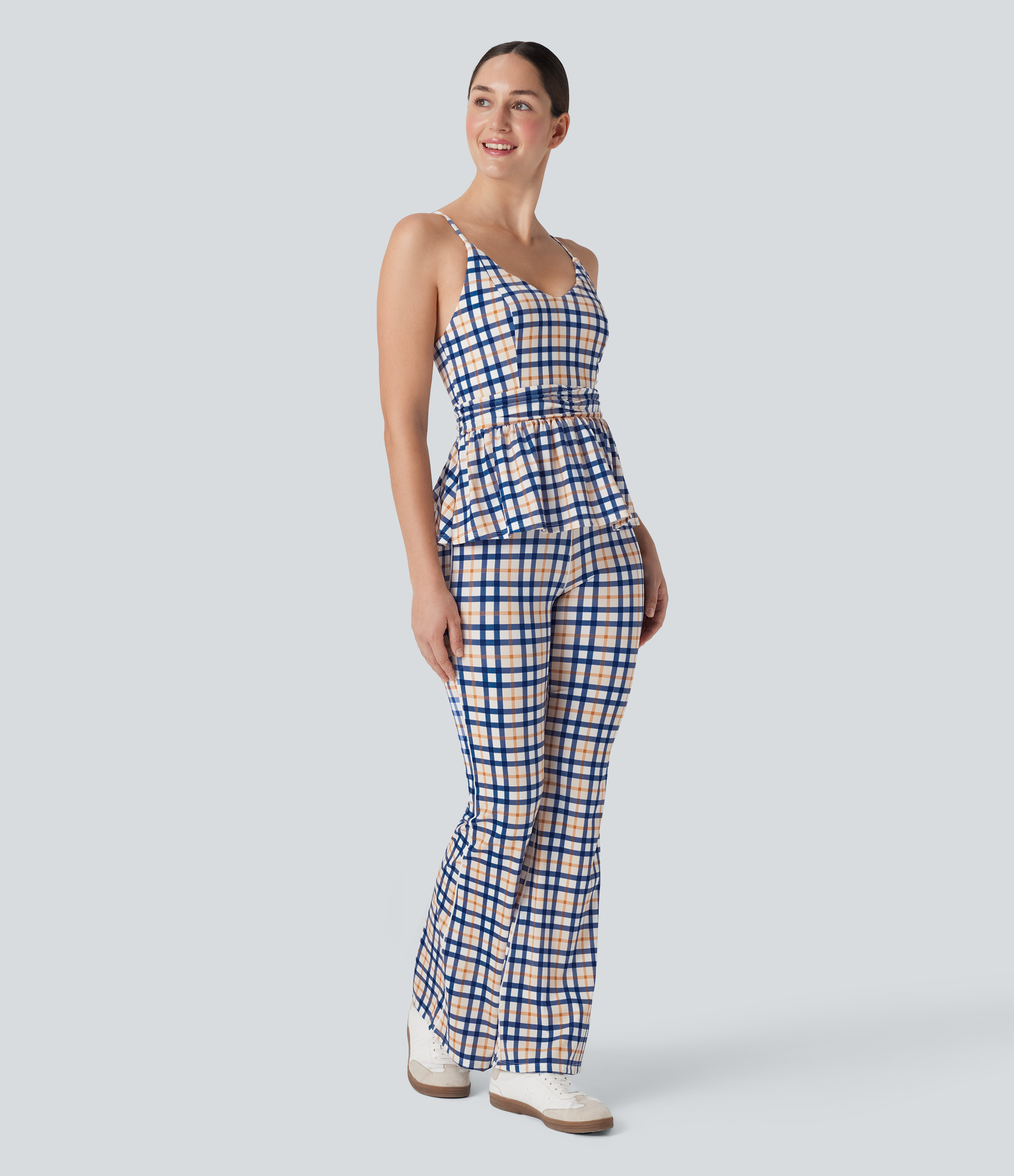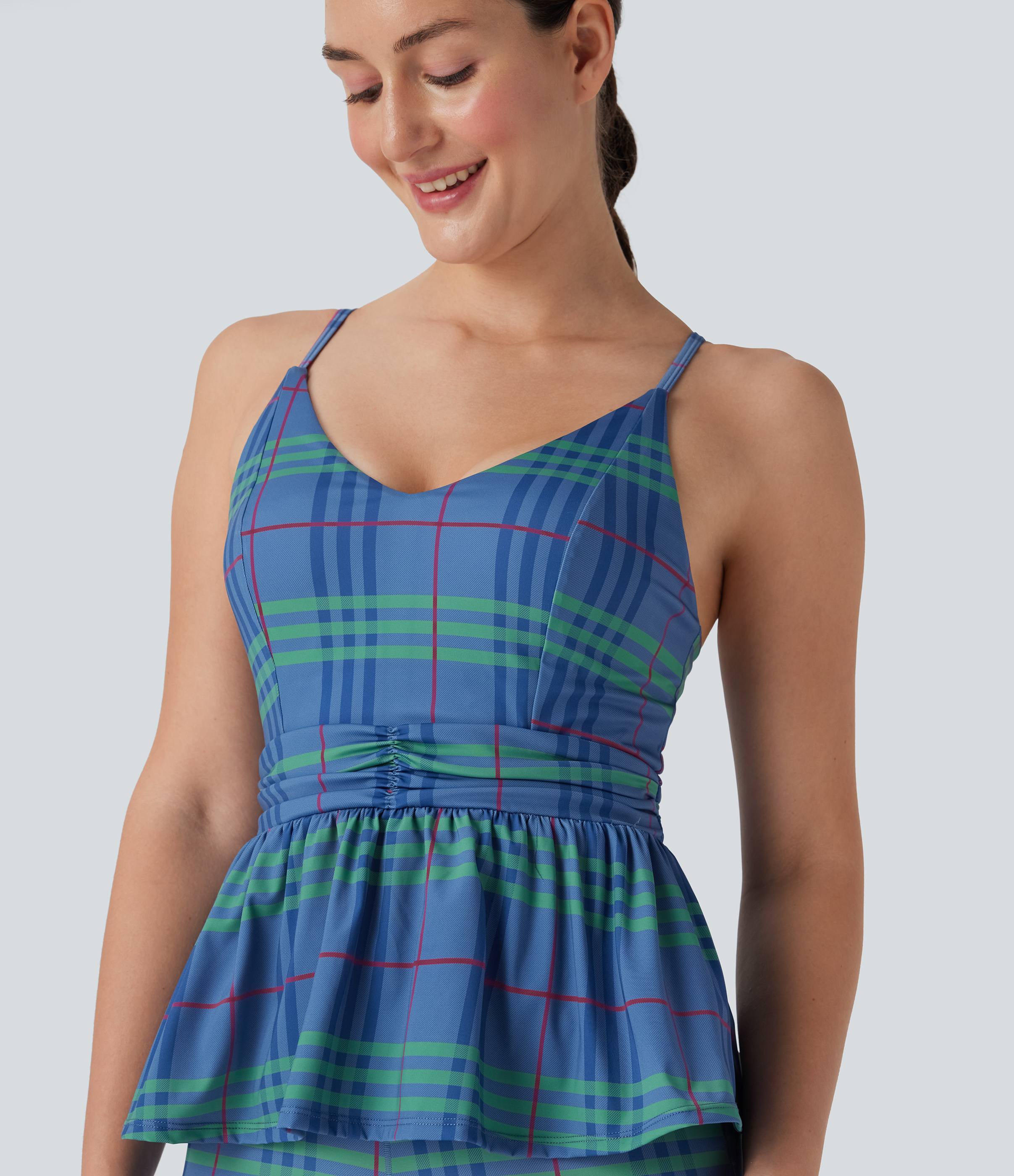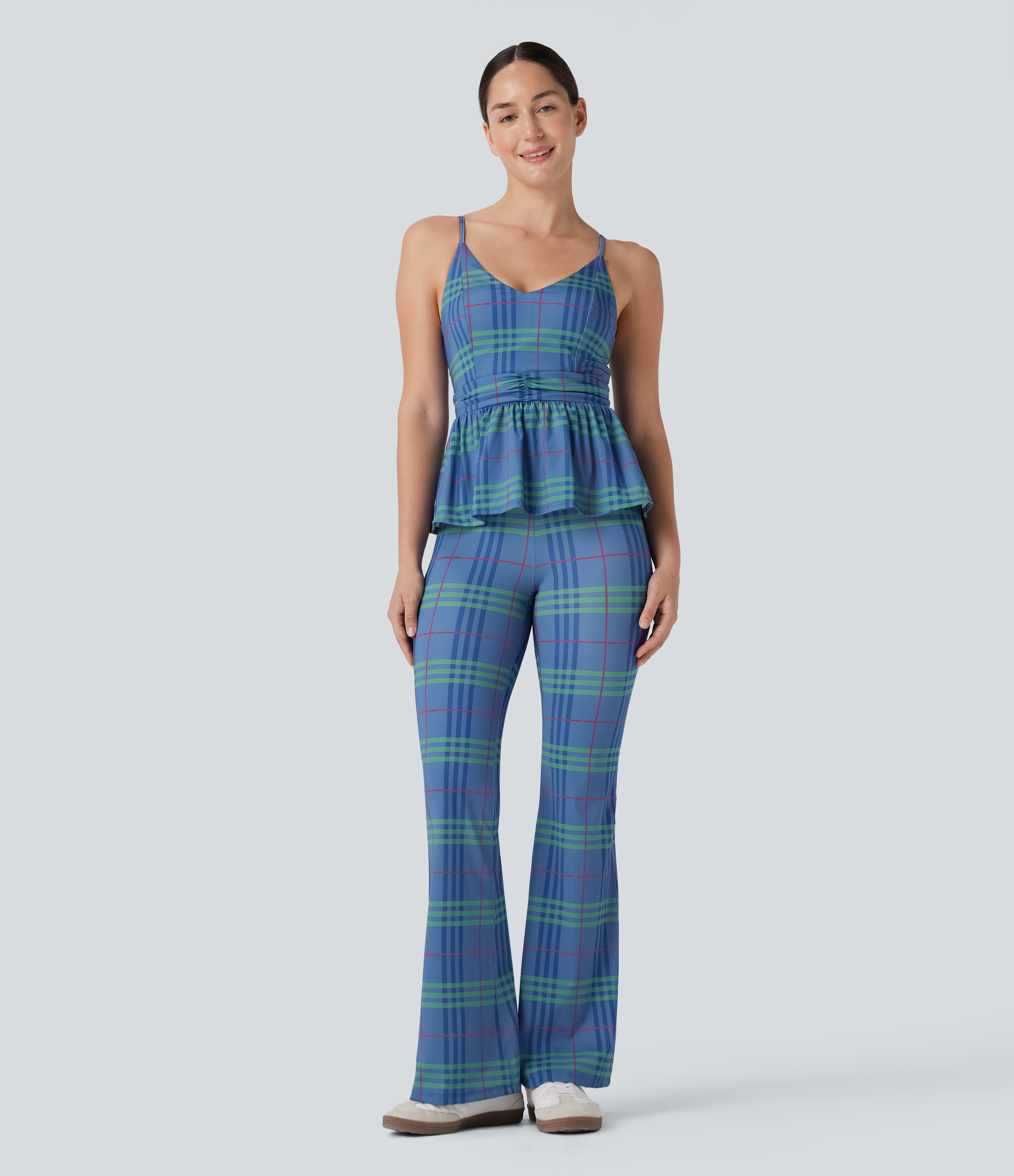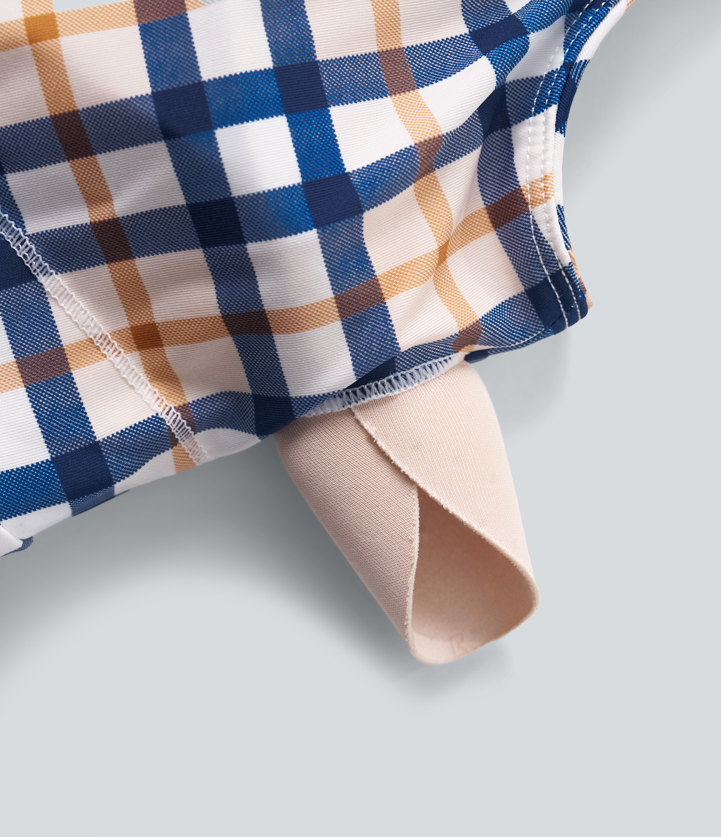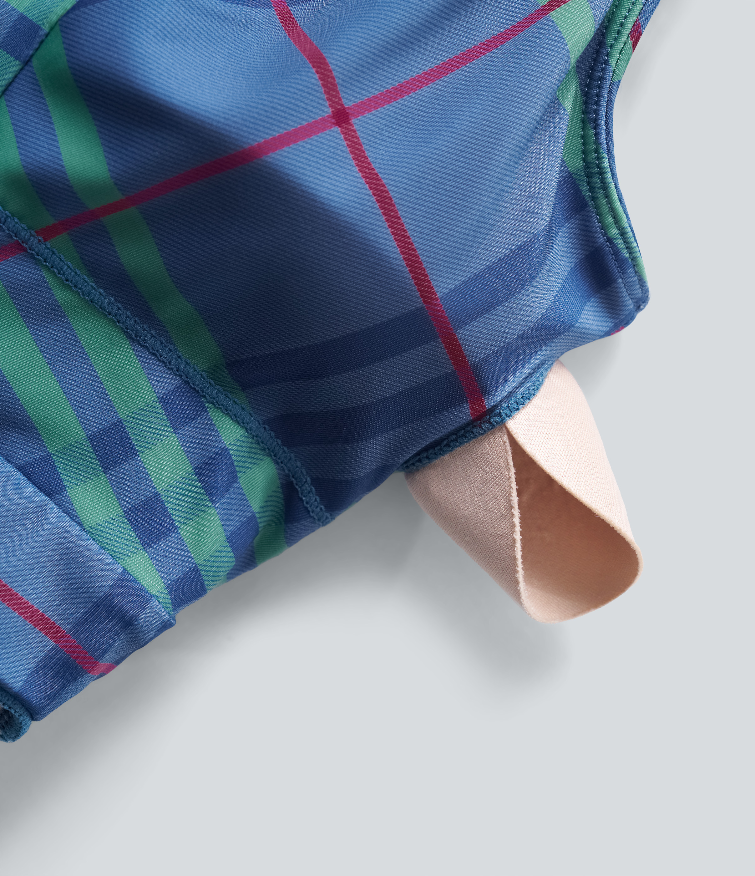 - Plaid patterning in multi-colored tartan design for a bold and versatile look.