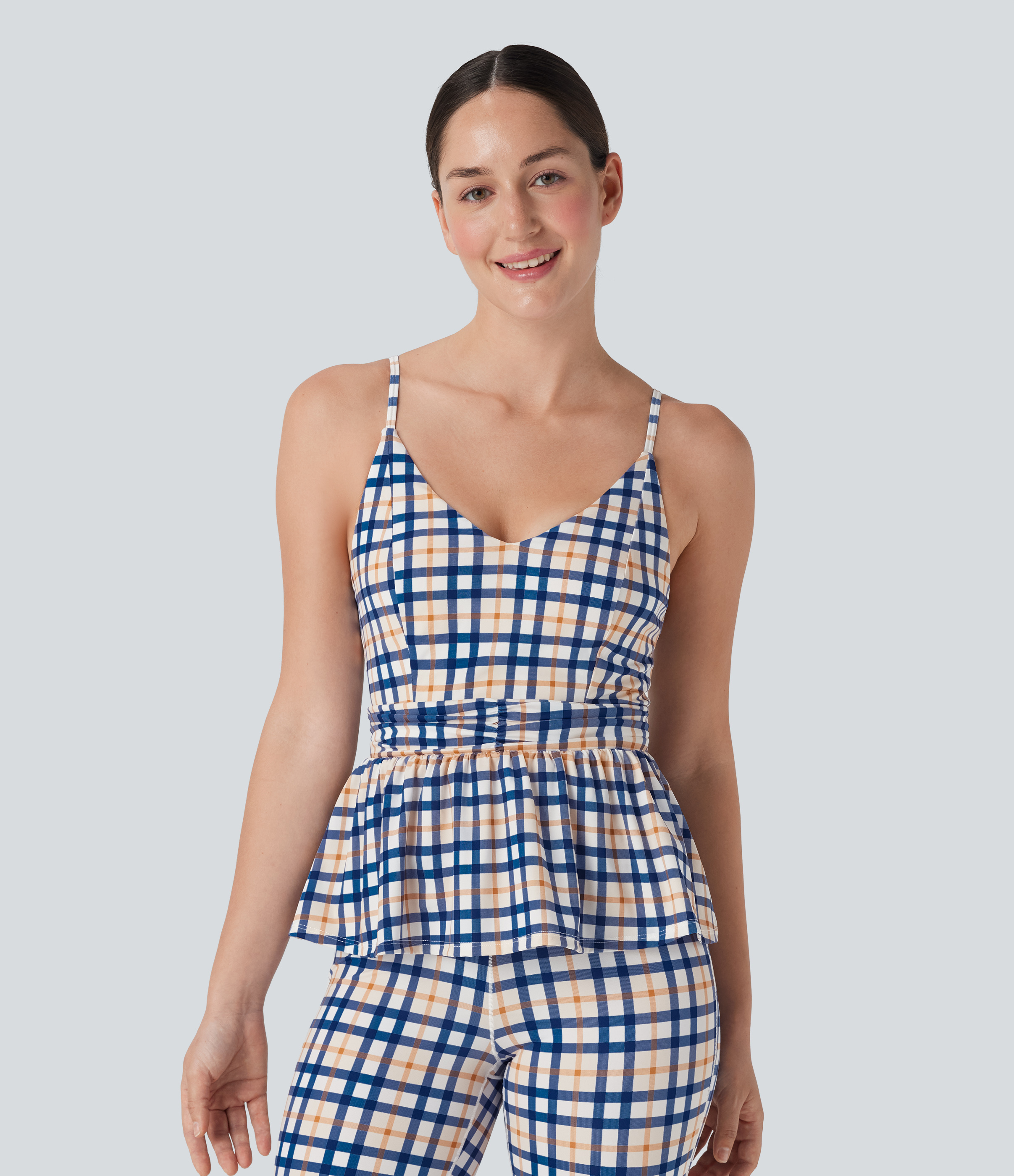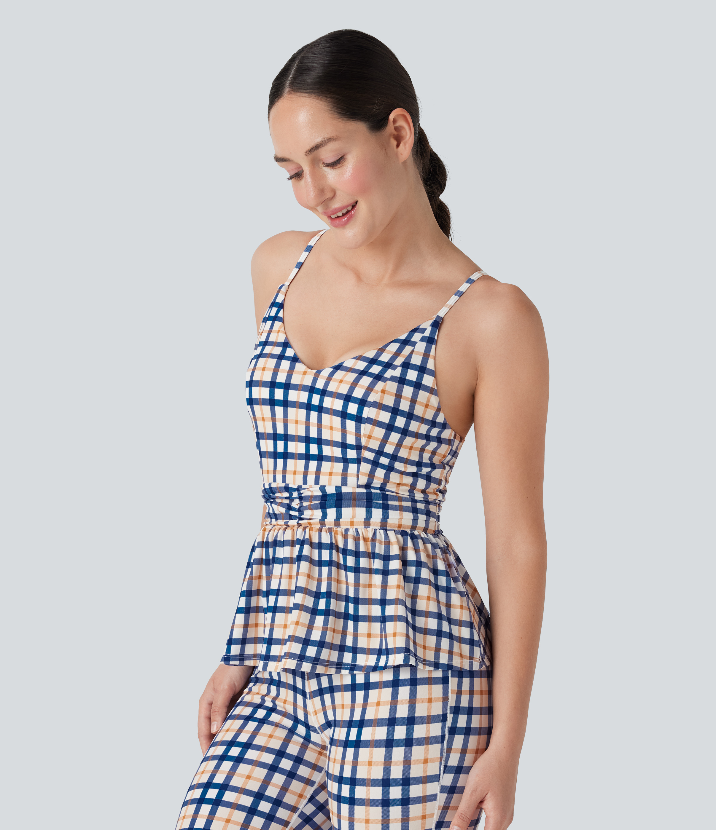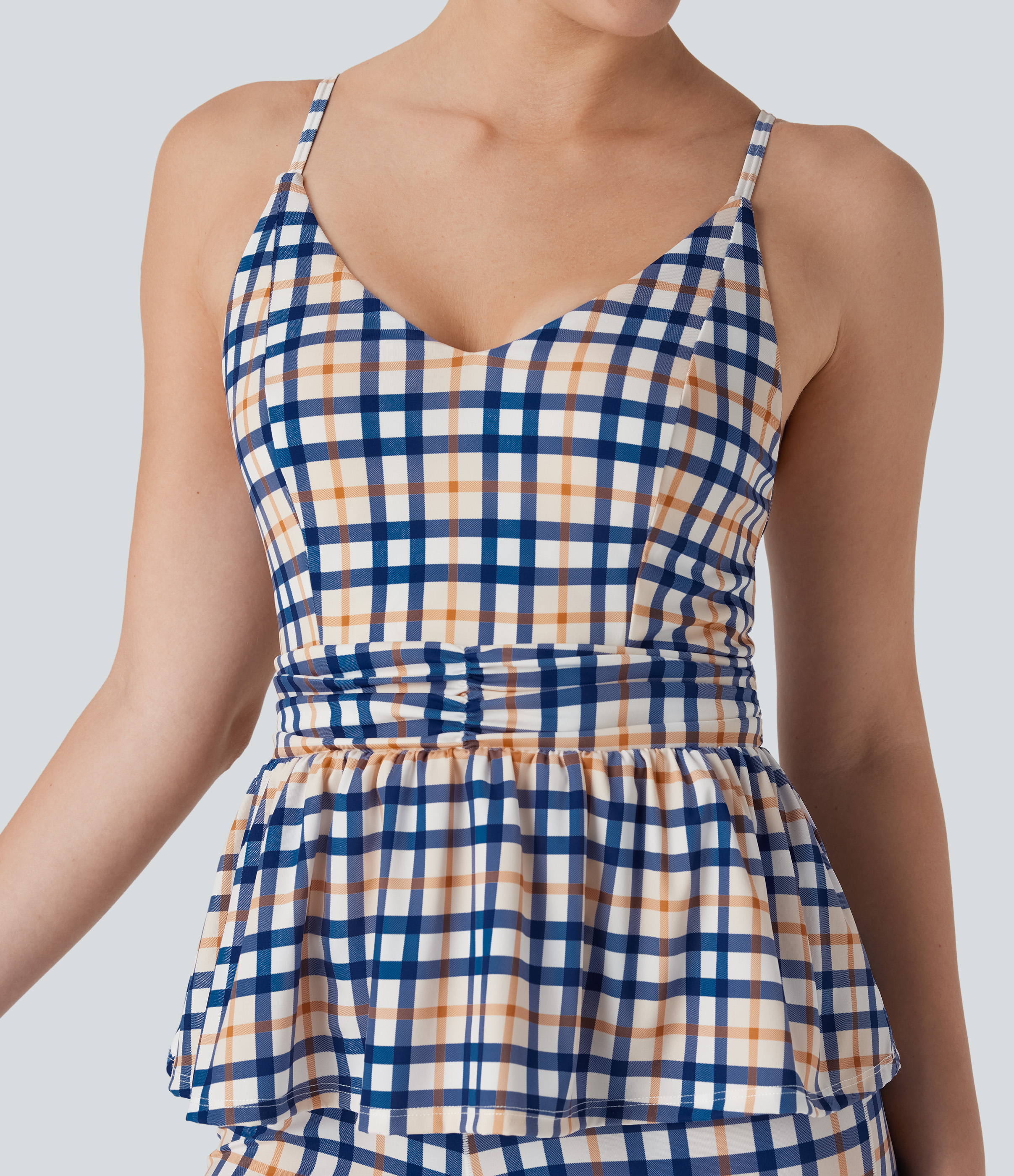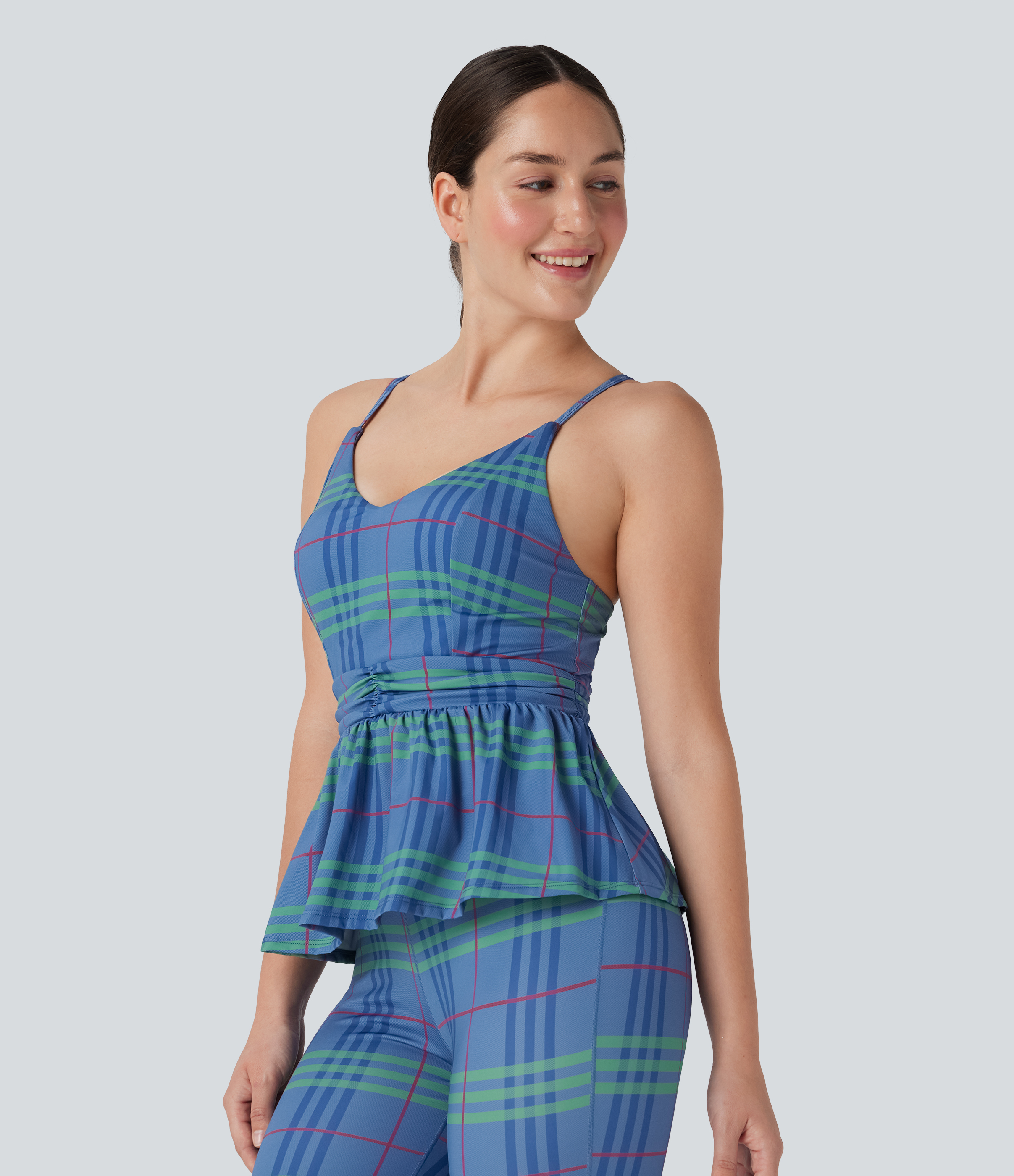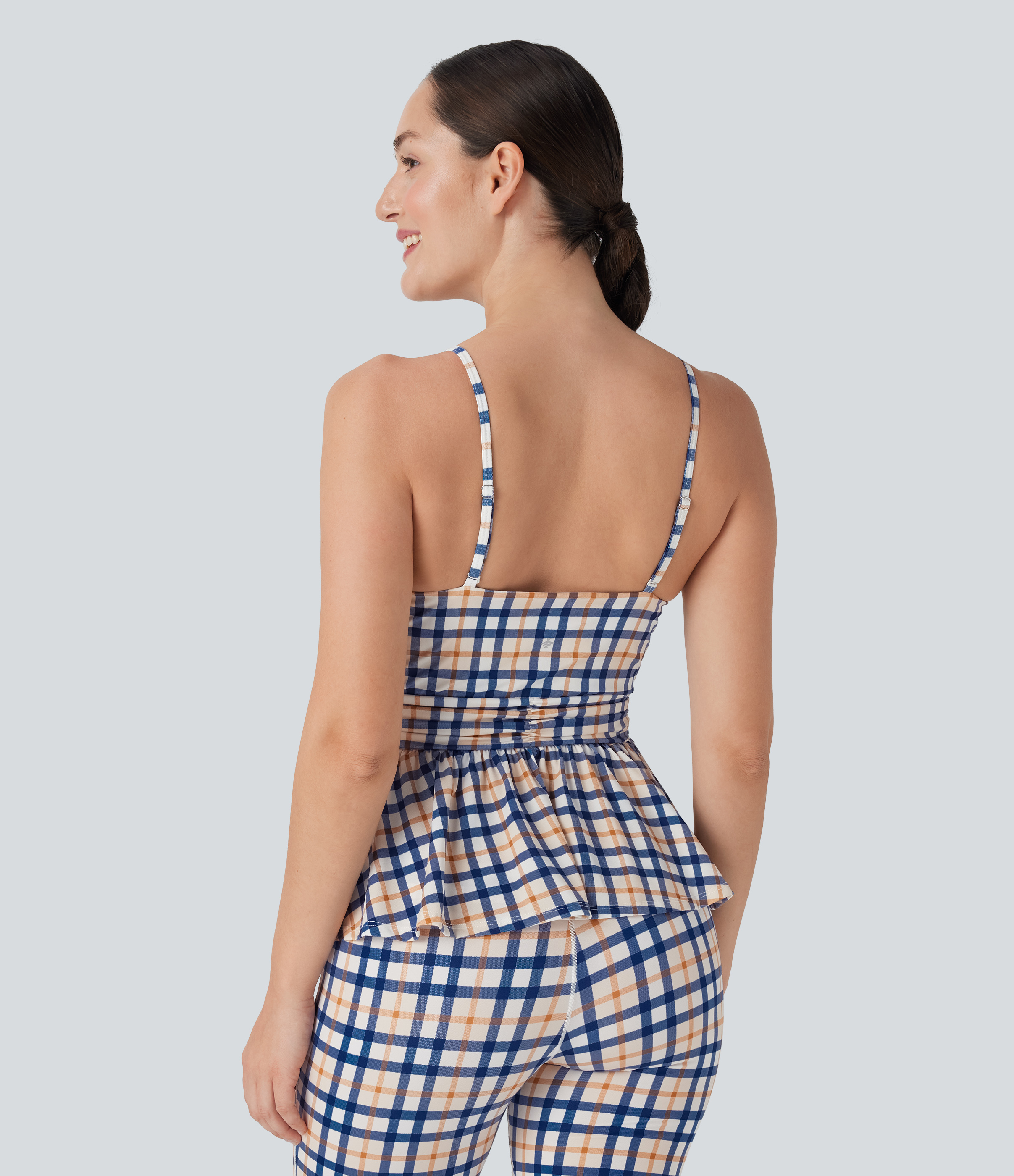 - Plaid patterning in multi-colored tartan design for a bold and versatile look.