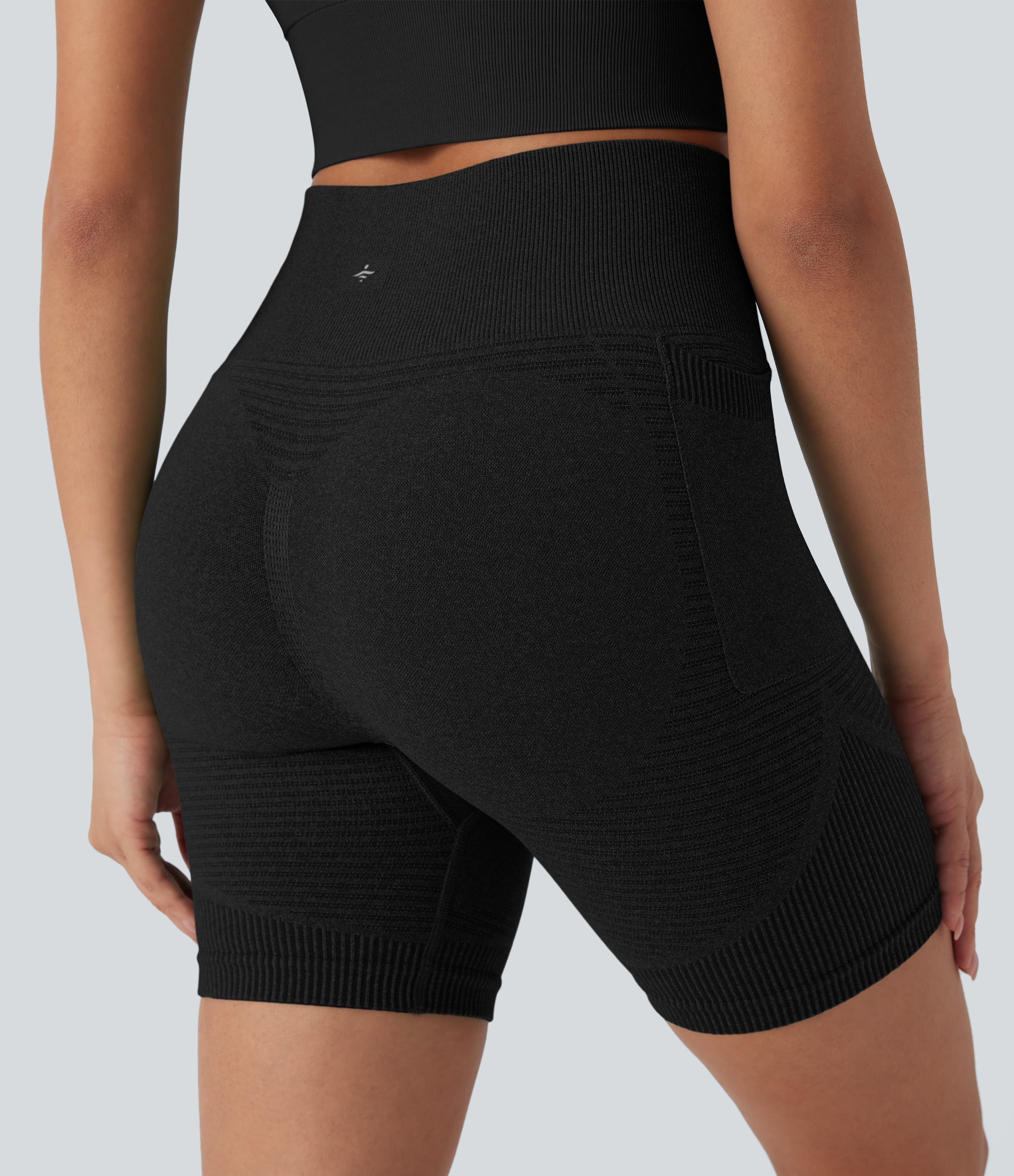 Seamless Flow High Waisted Yoga Biker Shorts 7'' with Pockets