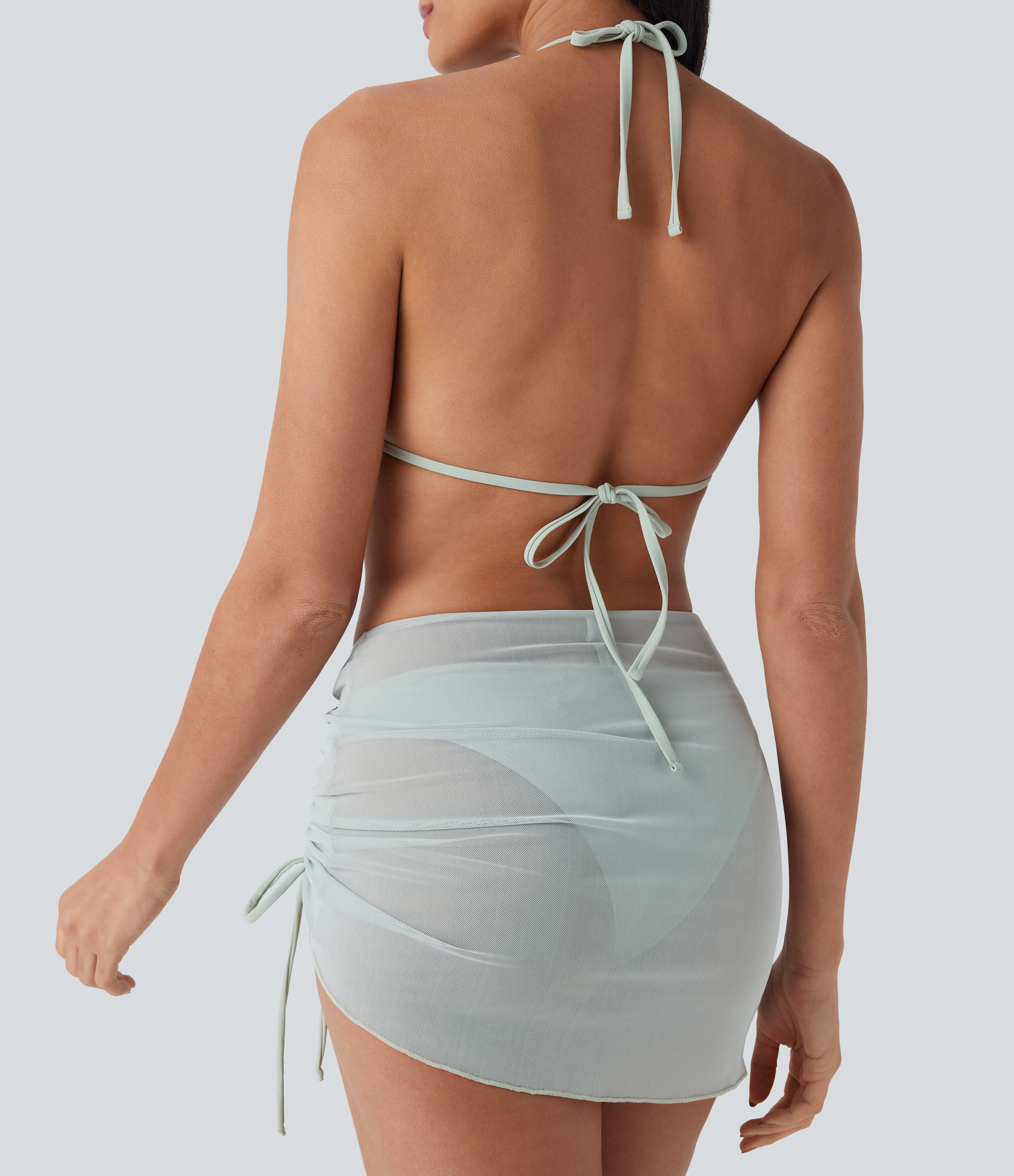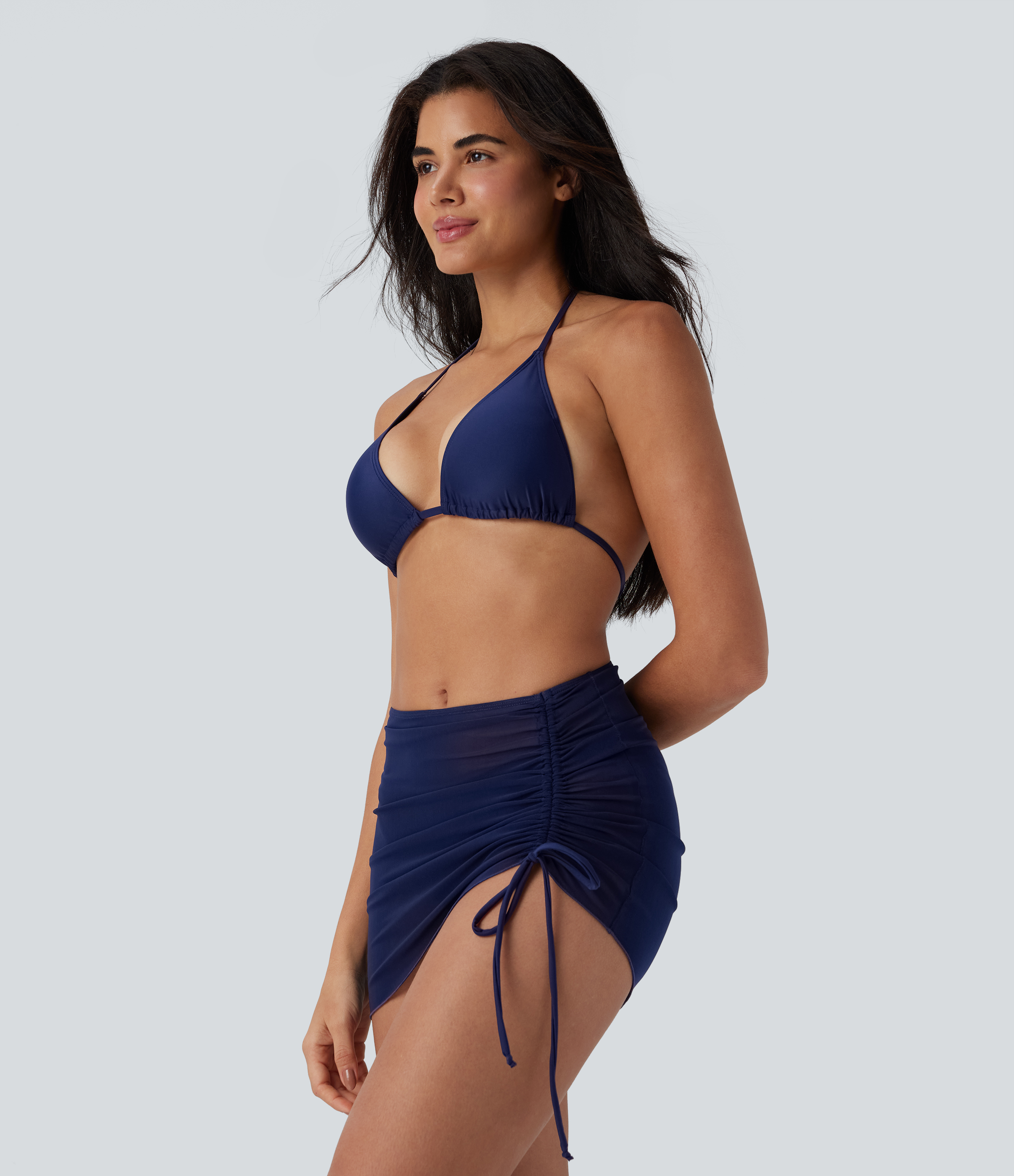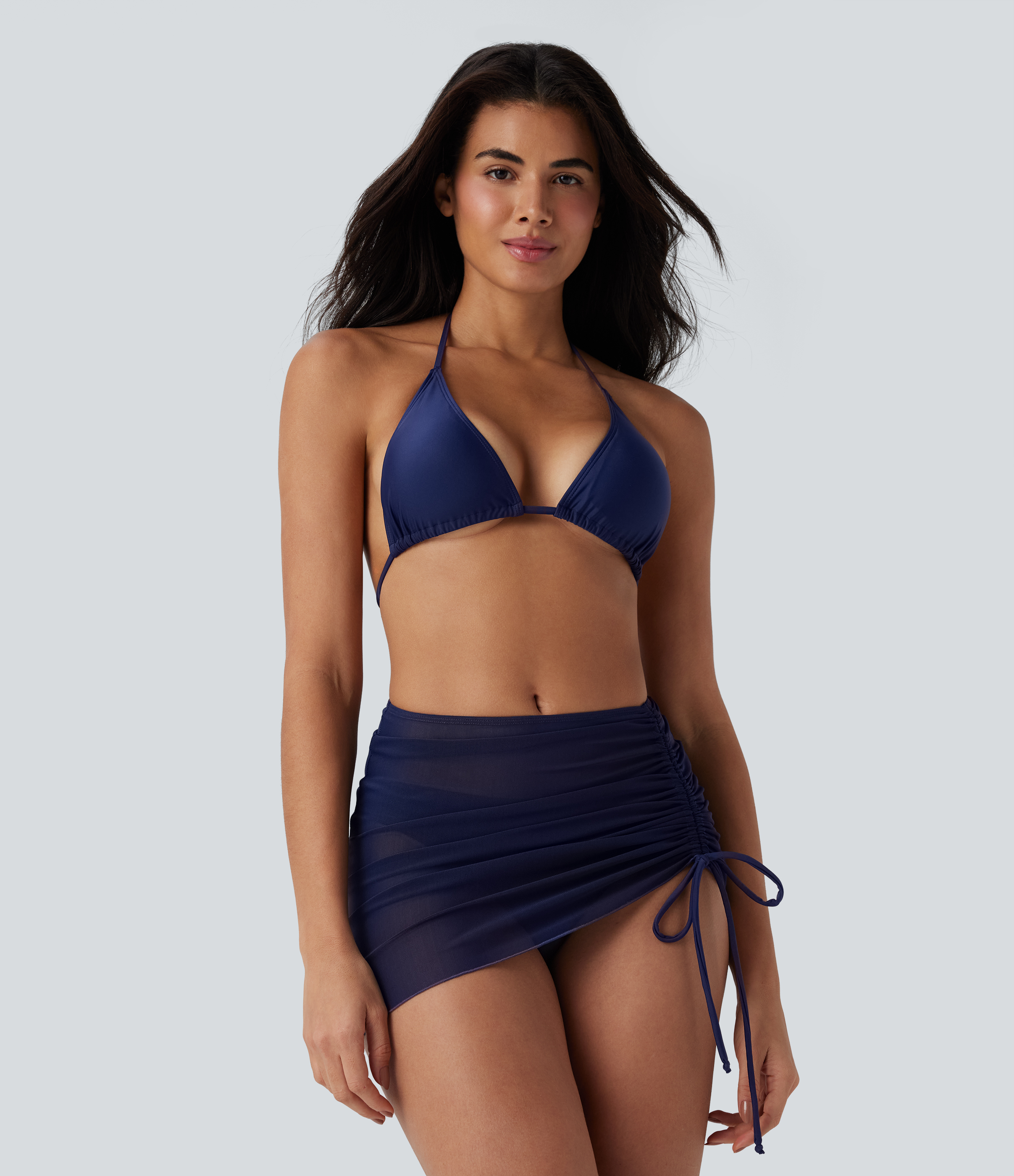 - 3-piece set, including halter triangle top, trendy bottom and a stylish beach skirt.