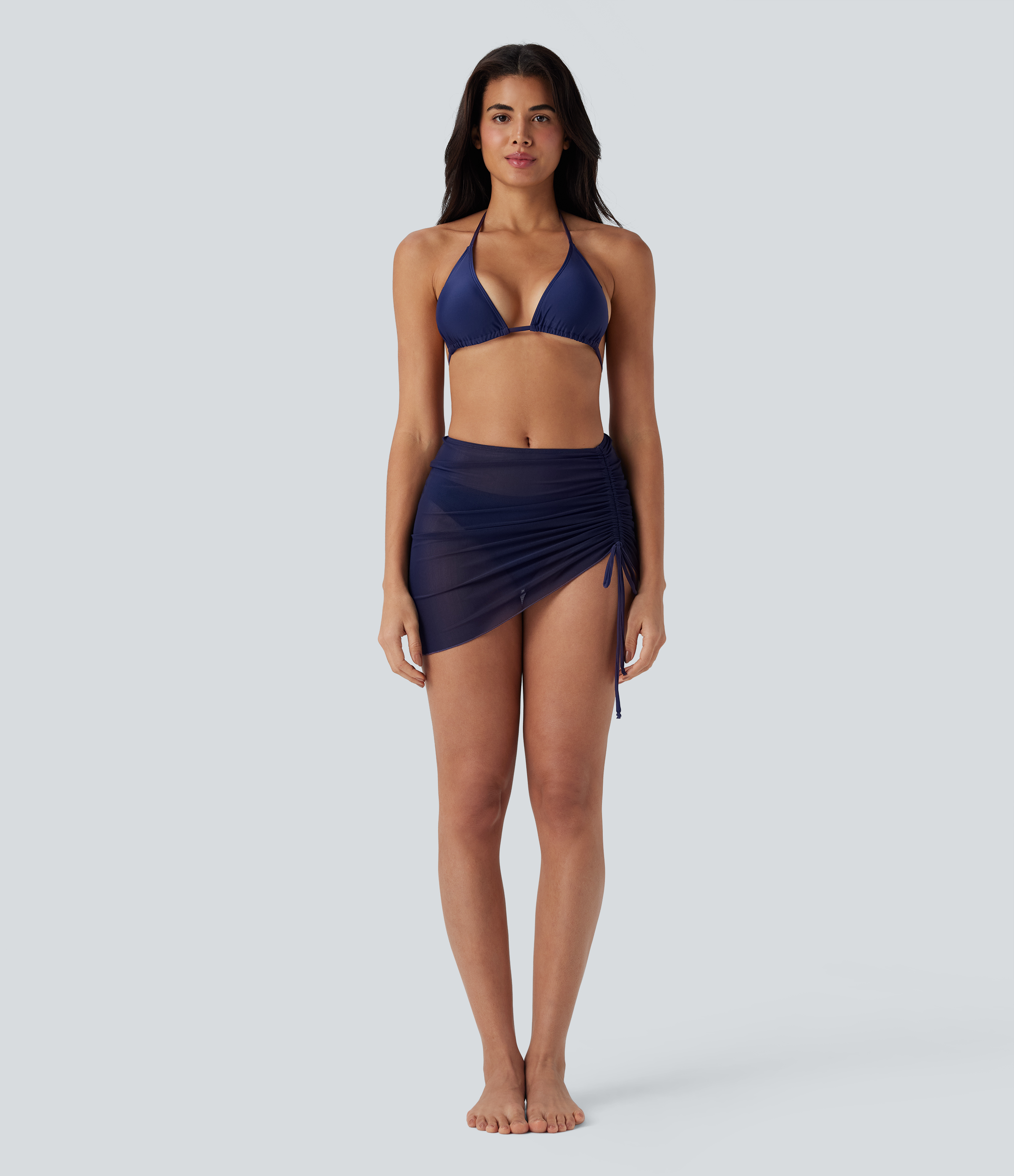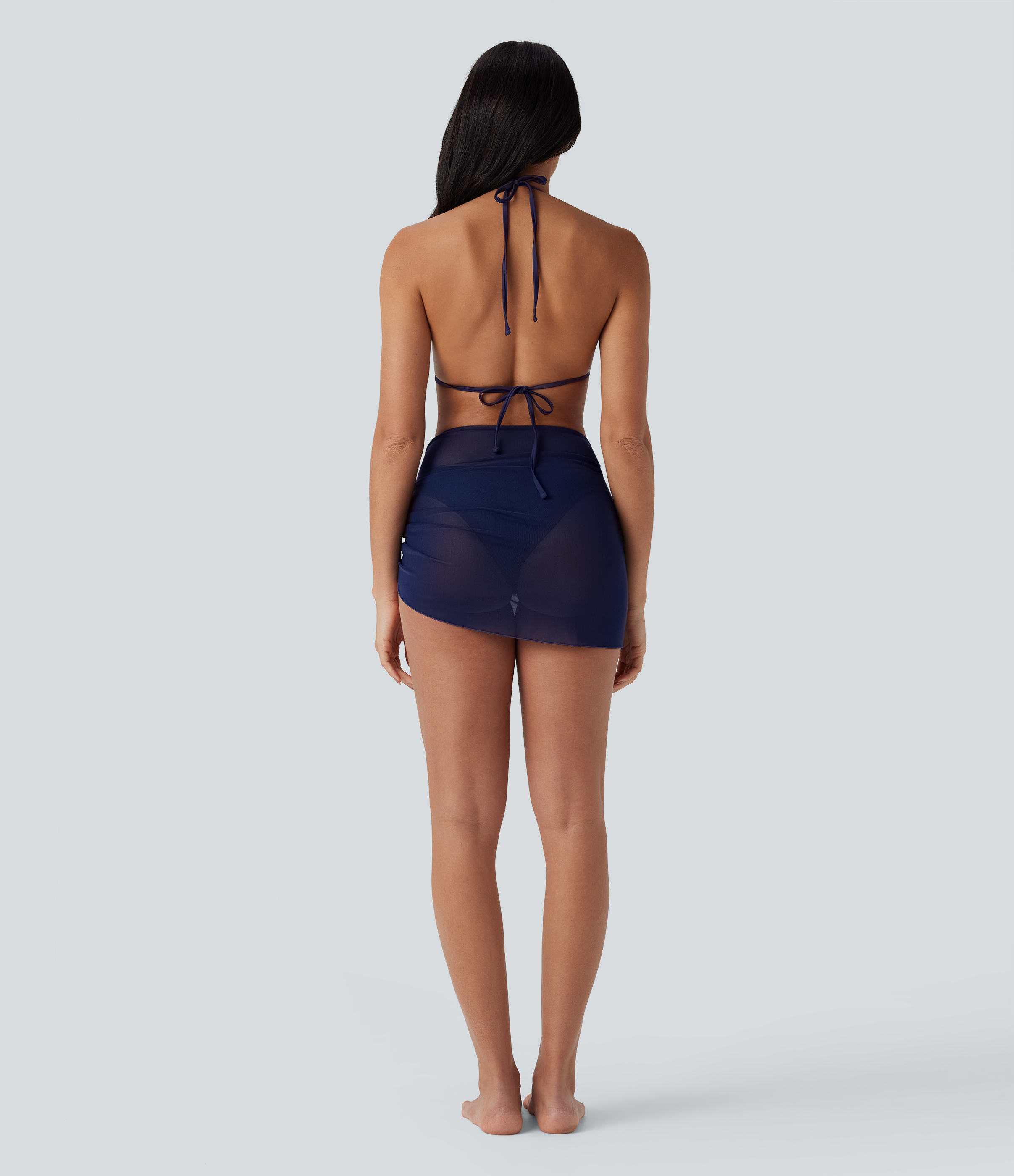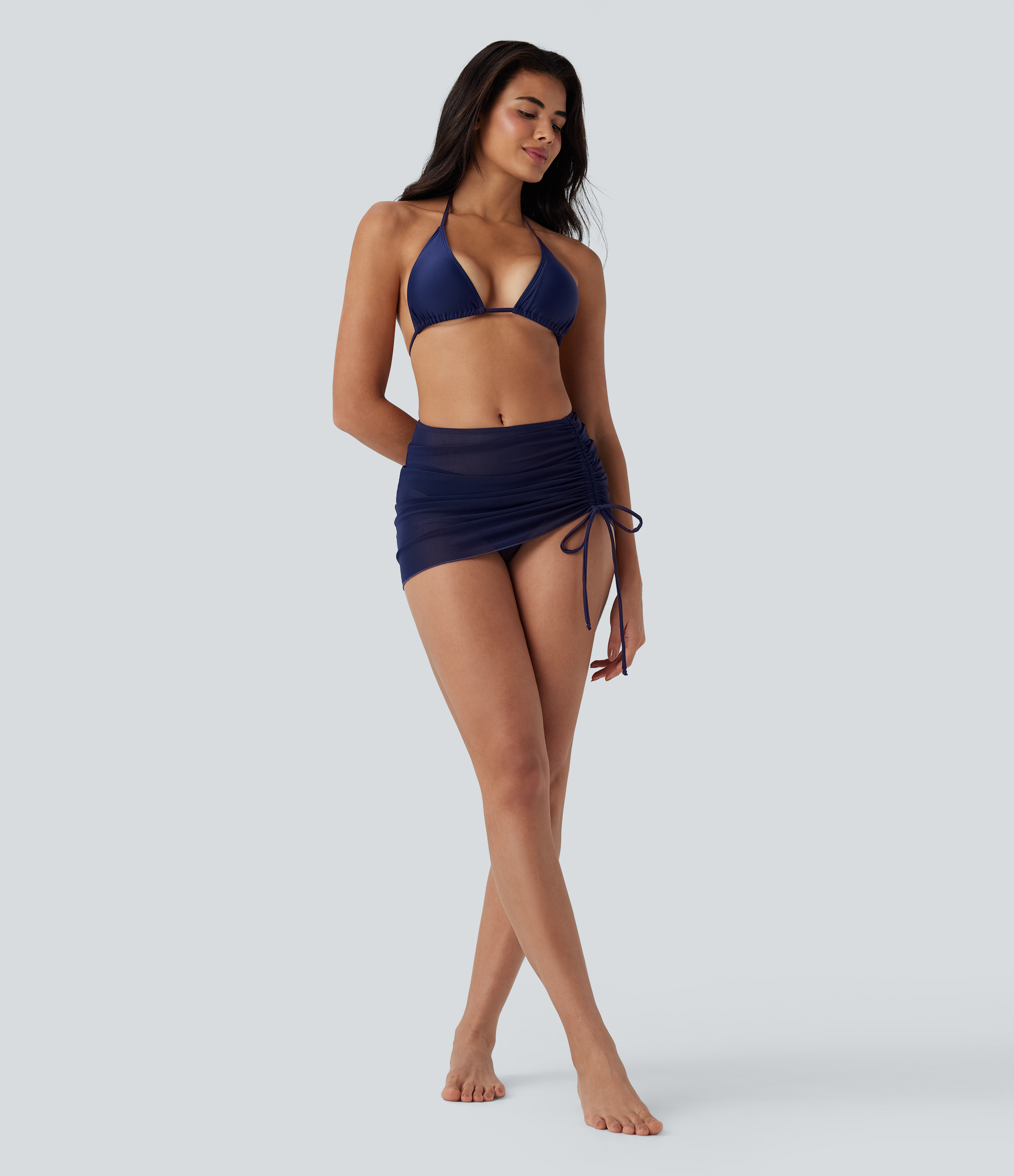 - 3-piece set, including halter triangle top, trendy bottom and a stylish beach skirt.