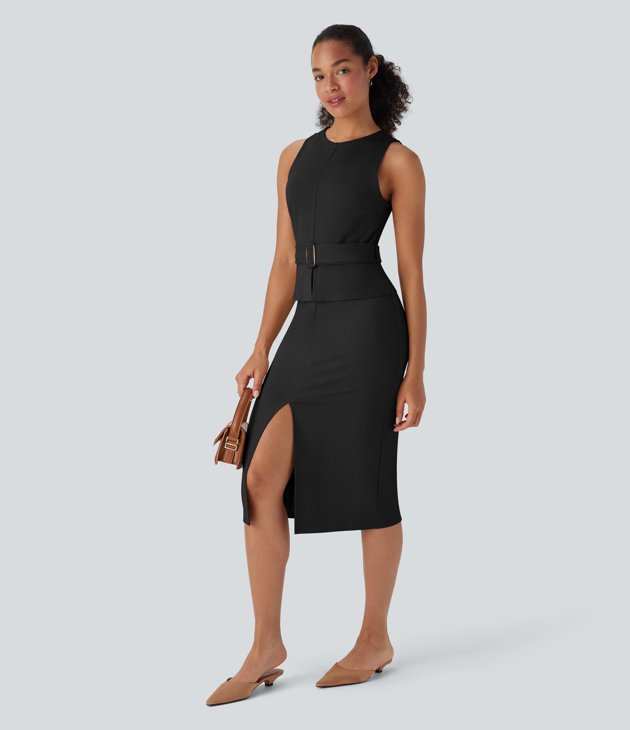 - The slit gives that perfect amount of leg show and an elongated silhouette.