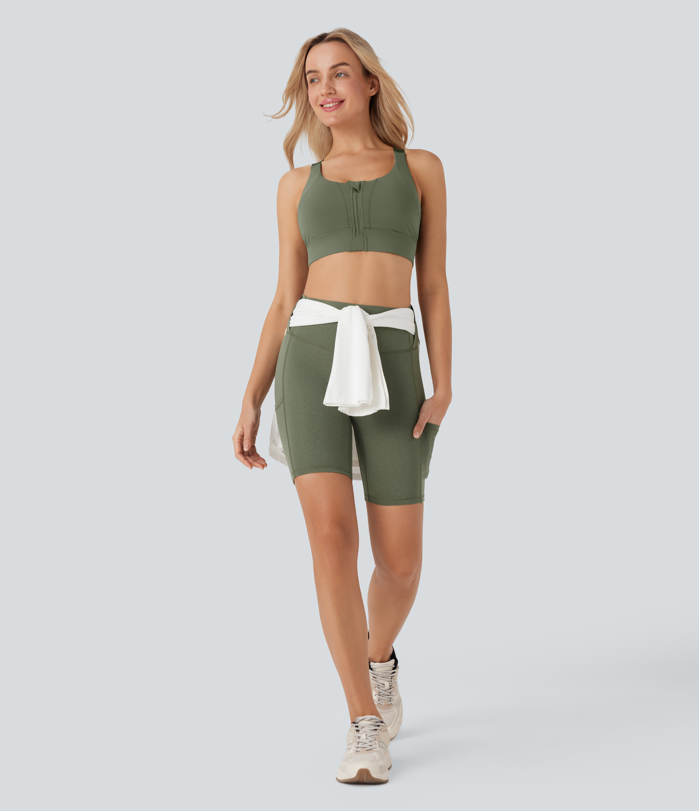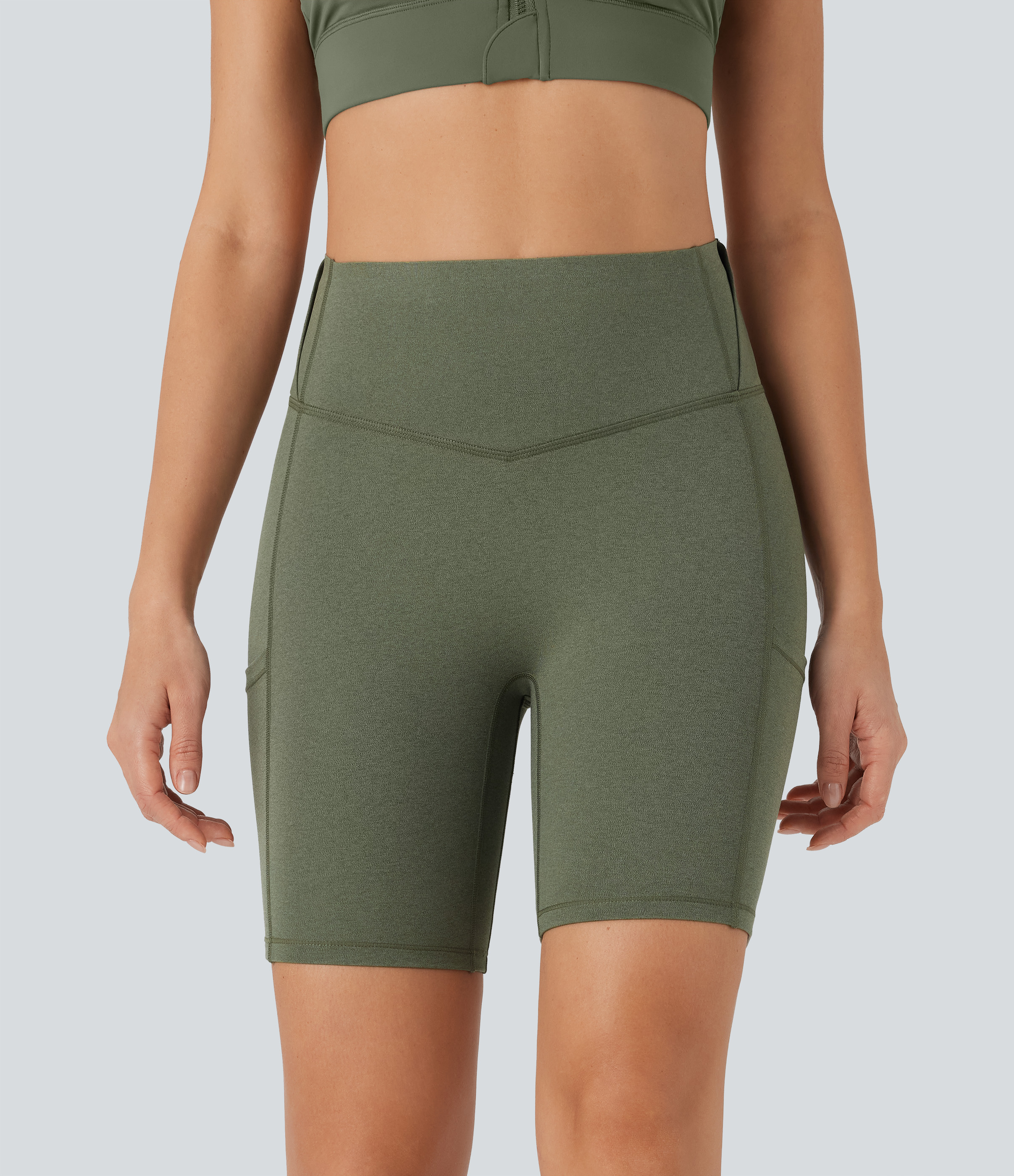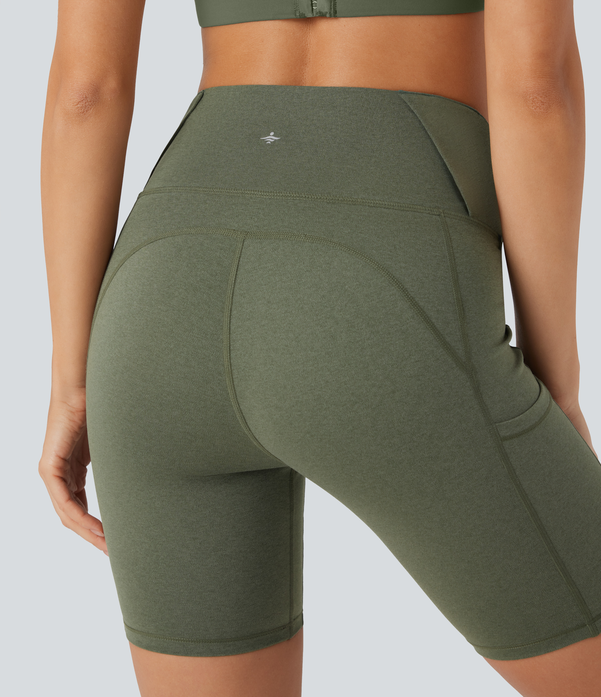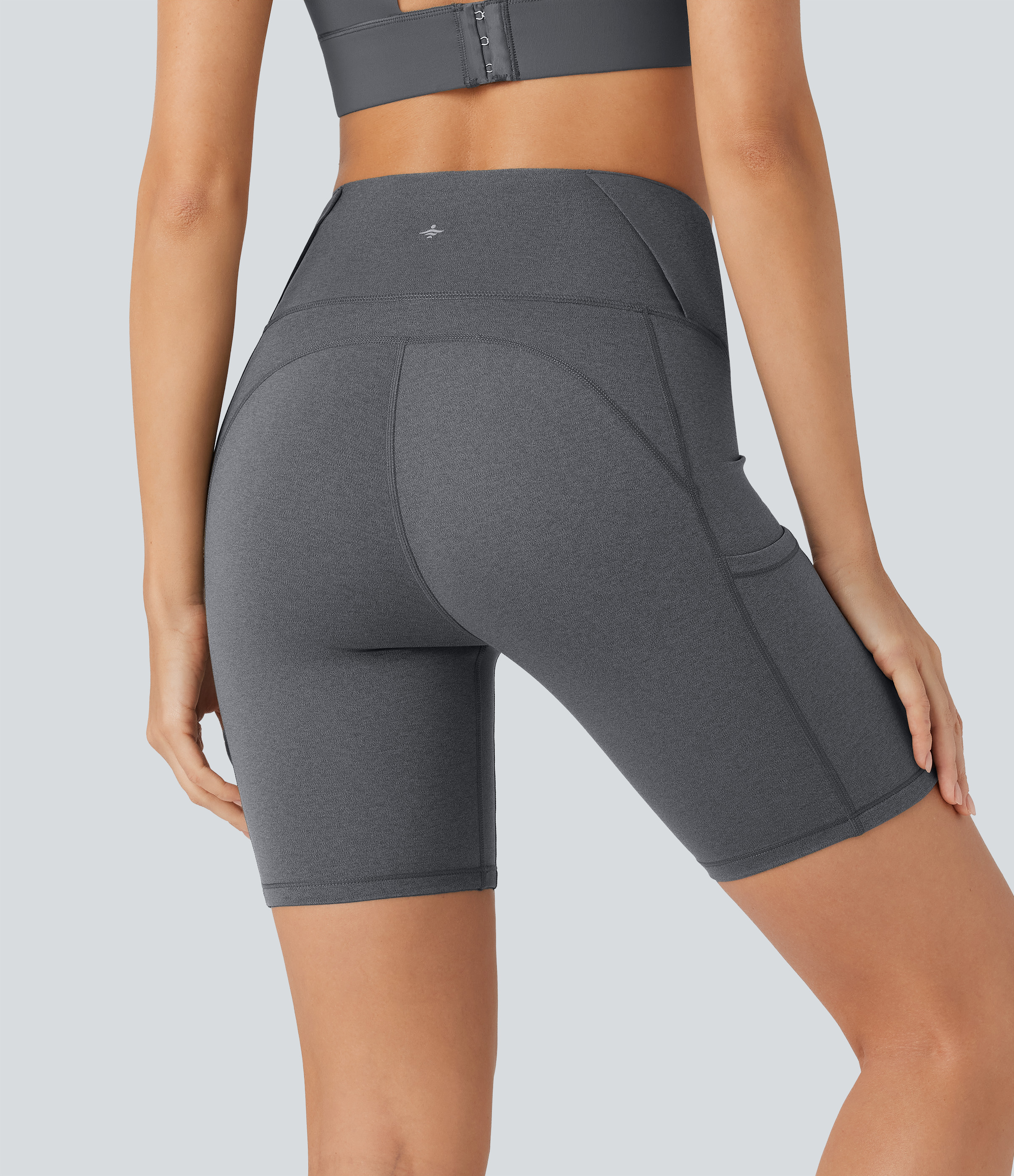 • SoCinched High Waisted Tummy Control Loop Quick Dry Yoga Biker Shorts 7'' with Pockets